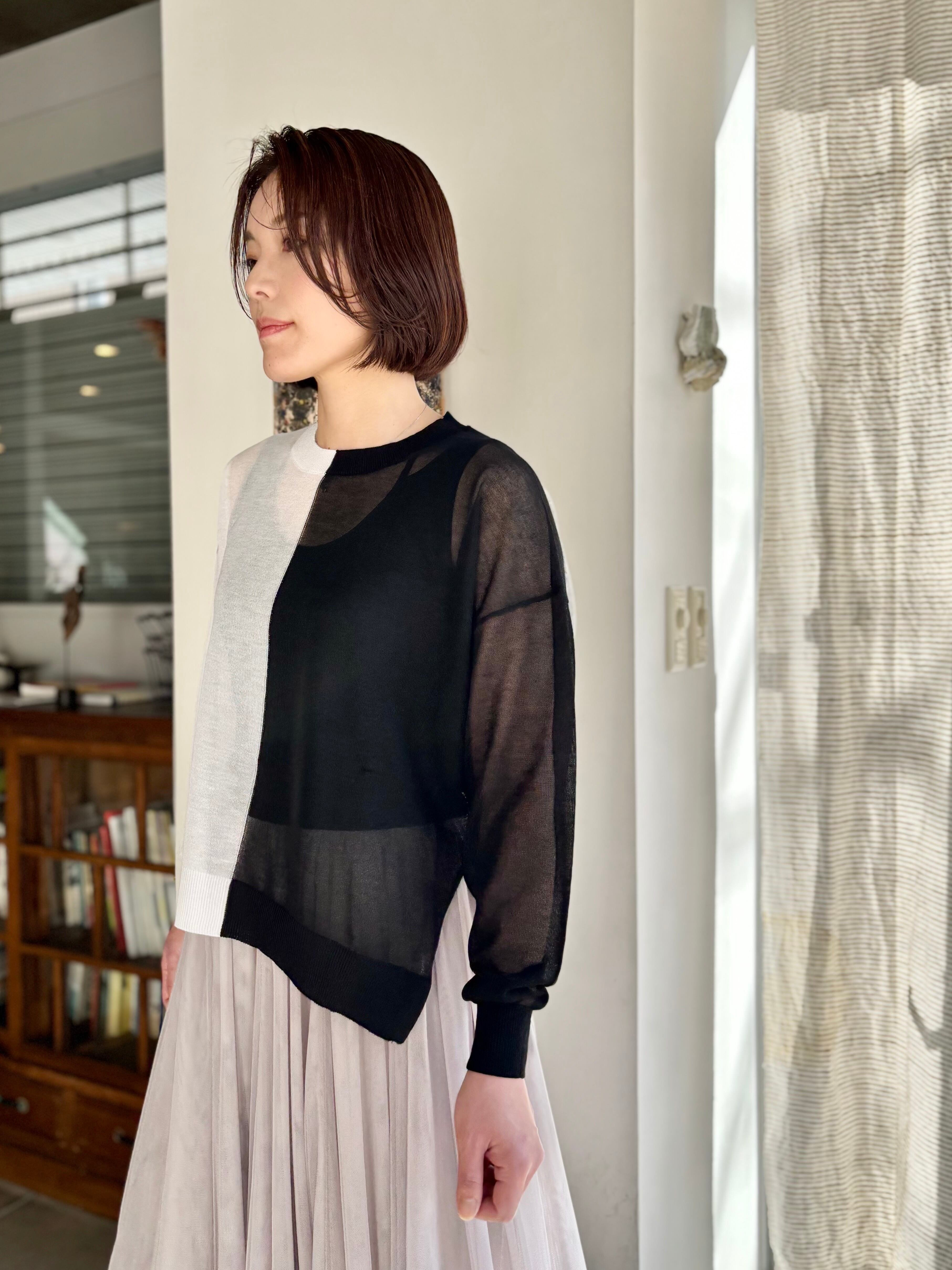 さらりとした着心地とシアーな質感、ゆったりとしたシルエットが、涼しげな雰囲気を演出。