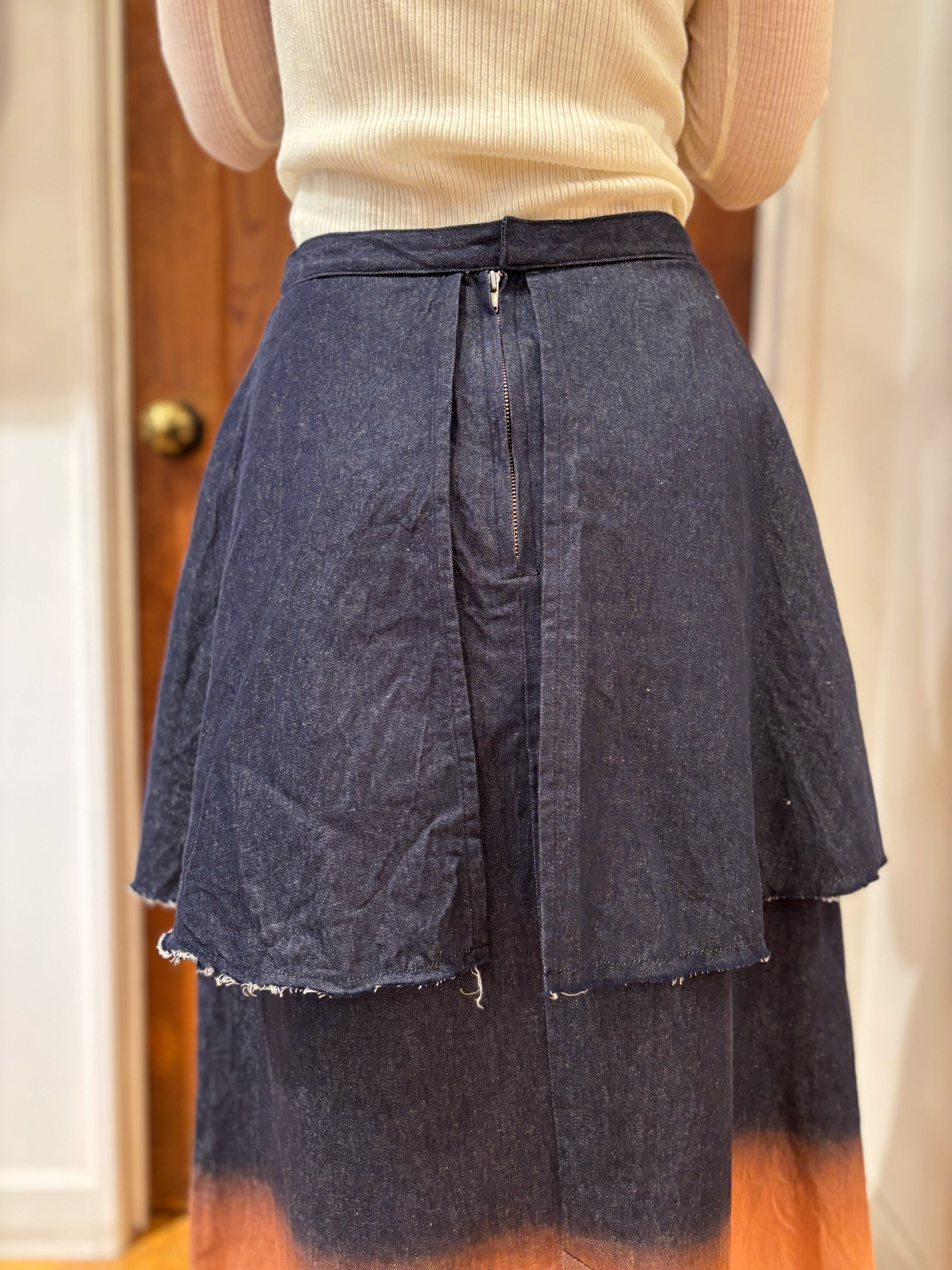 Crafted from premium denim woven in Okayama, this fabric offers both fluidity and structure. A back slit ensures ease of movement, making it as practical as it is stylish.