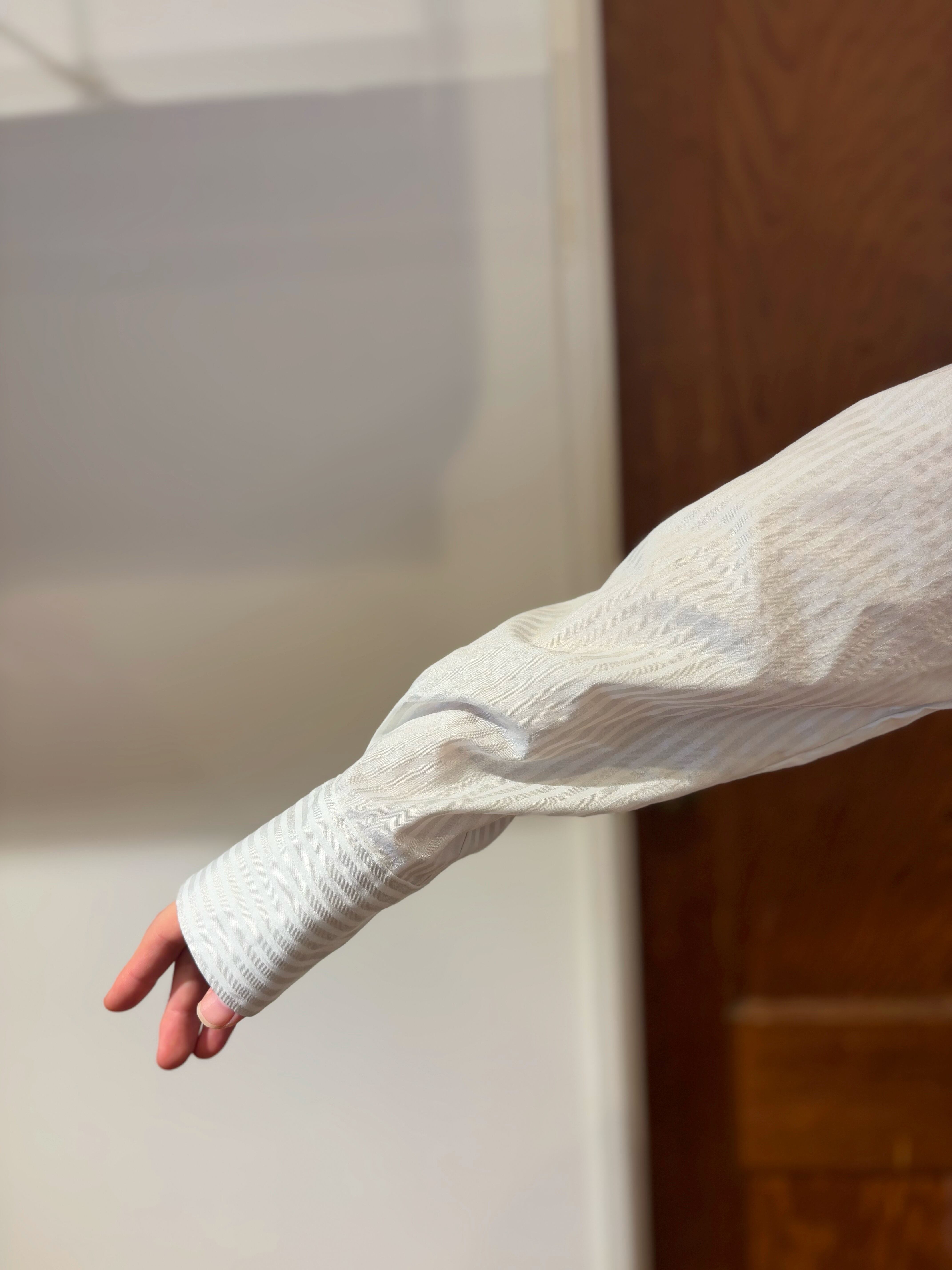 洗濯ネットに入れて裏返し、手洗いモードで洗えば、アイロンなしでそのまま着られるイージーケア仕様なのも嬉しいポイントです。