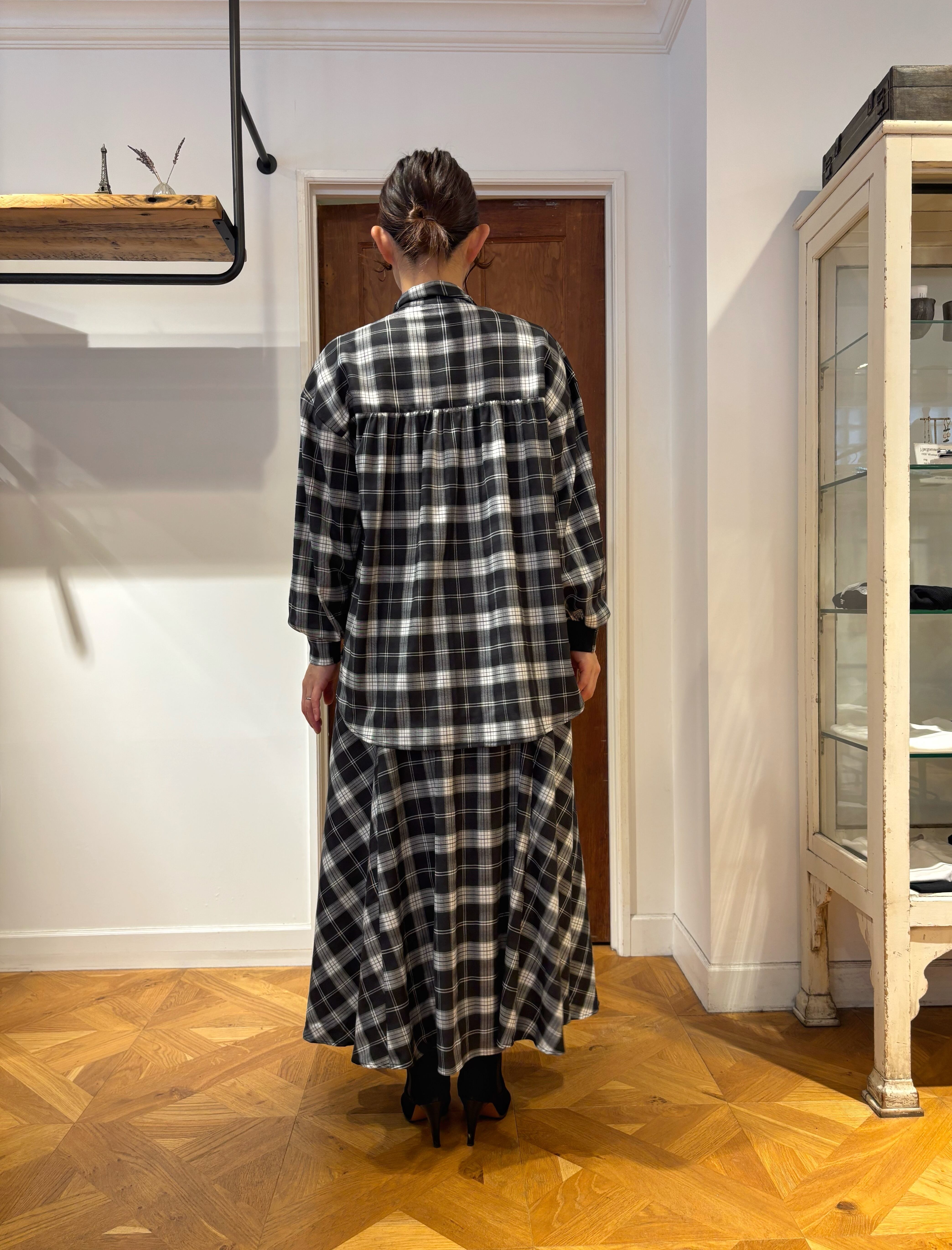 同素材のフレアスカートと合わせれば、カジュアルな外出にも上品さをプラス。