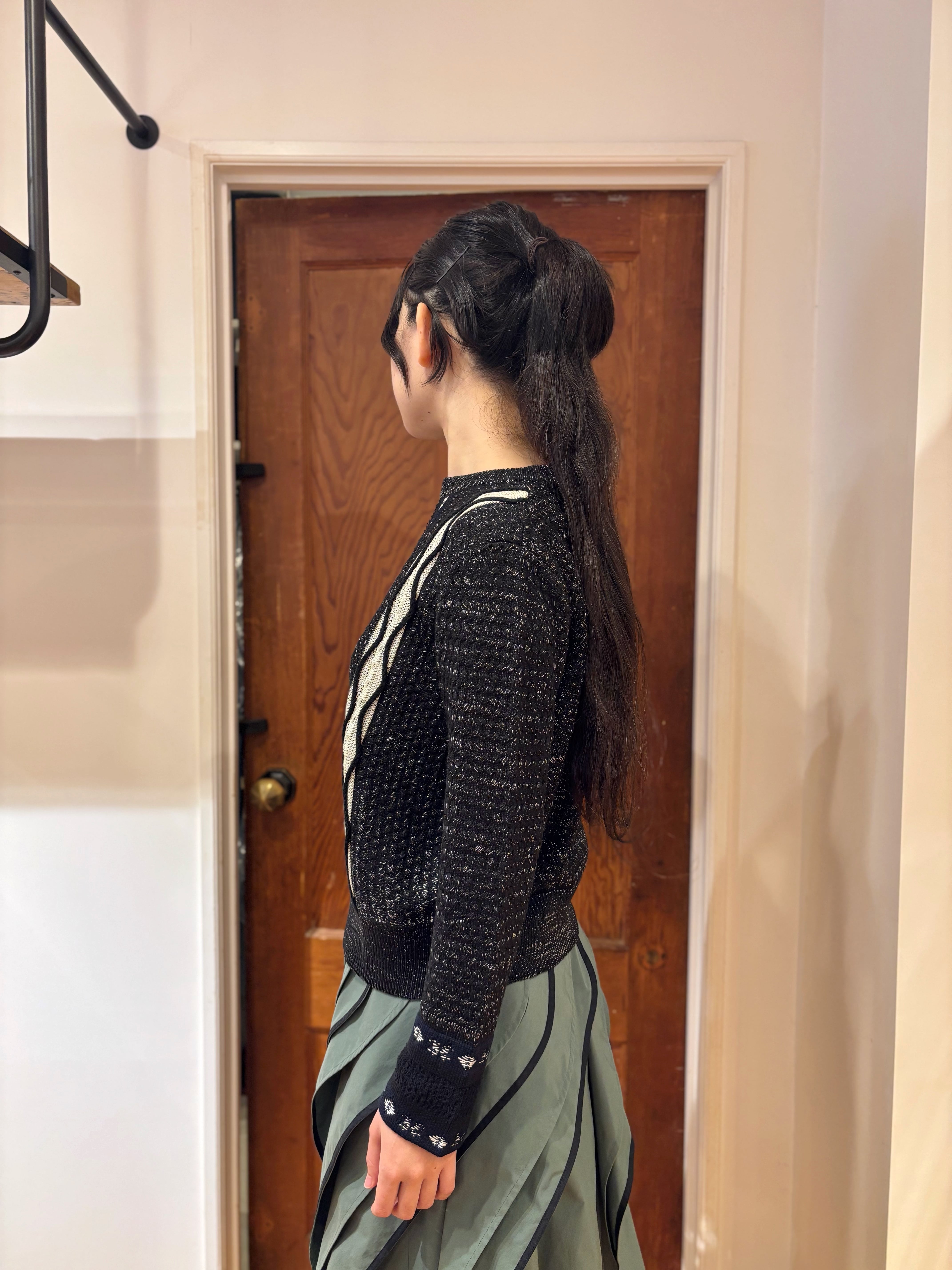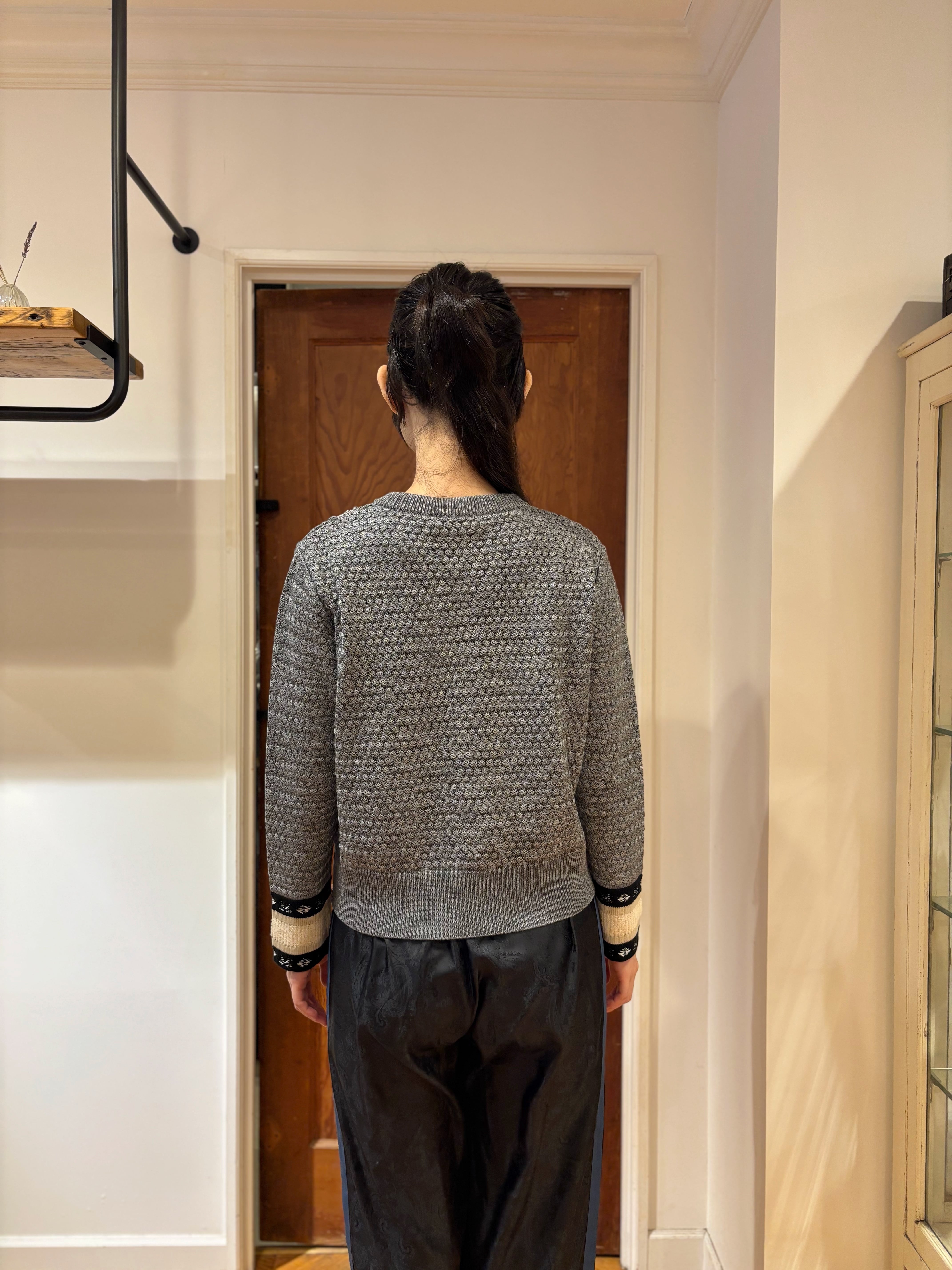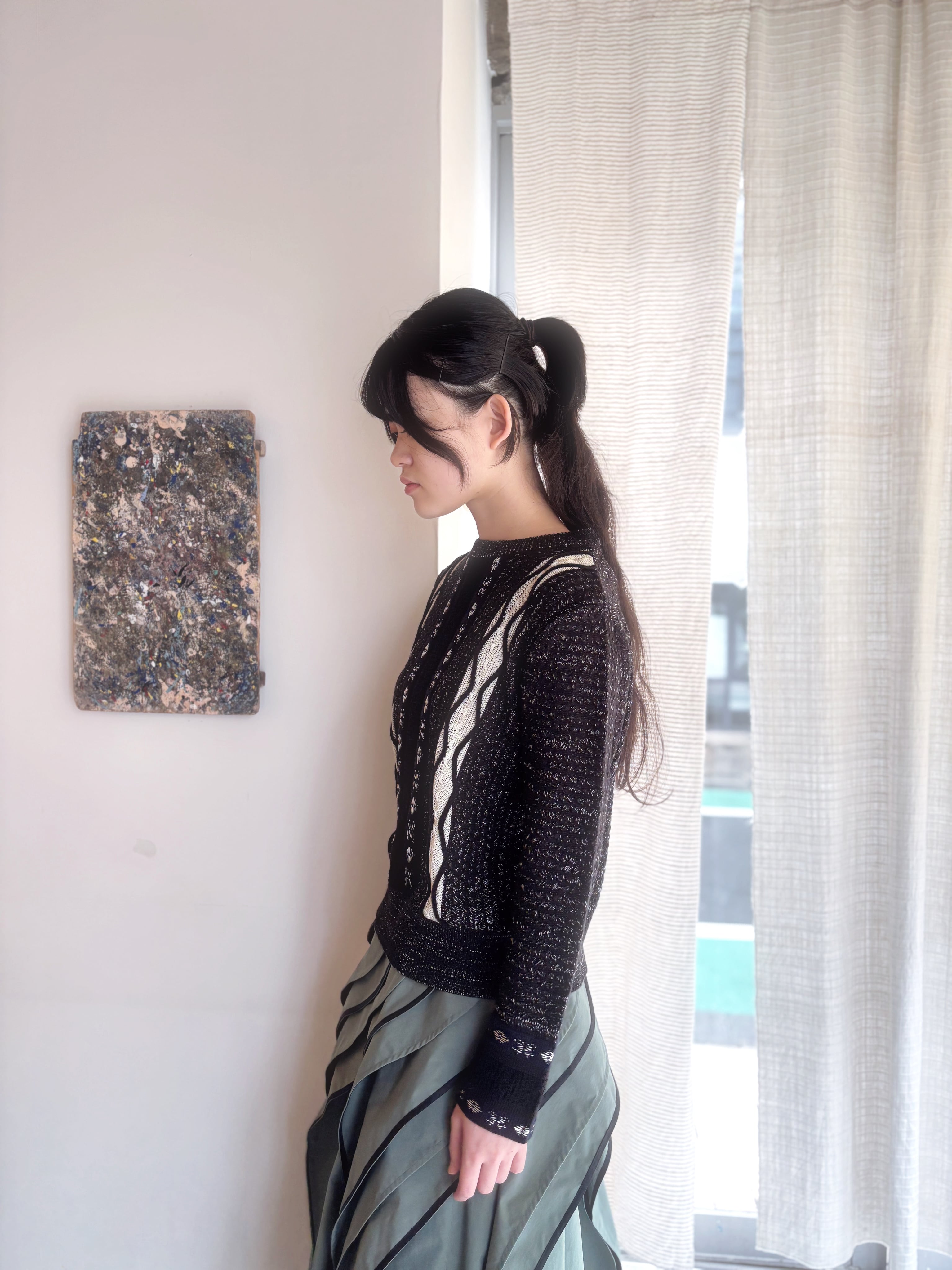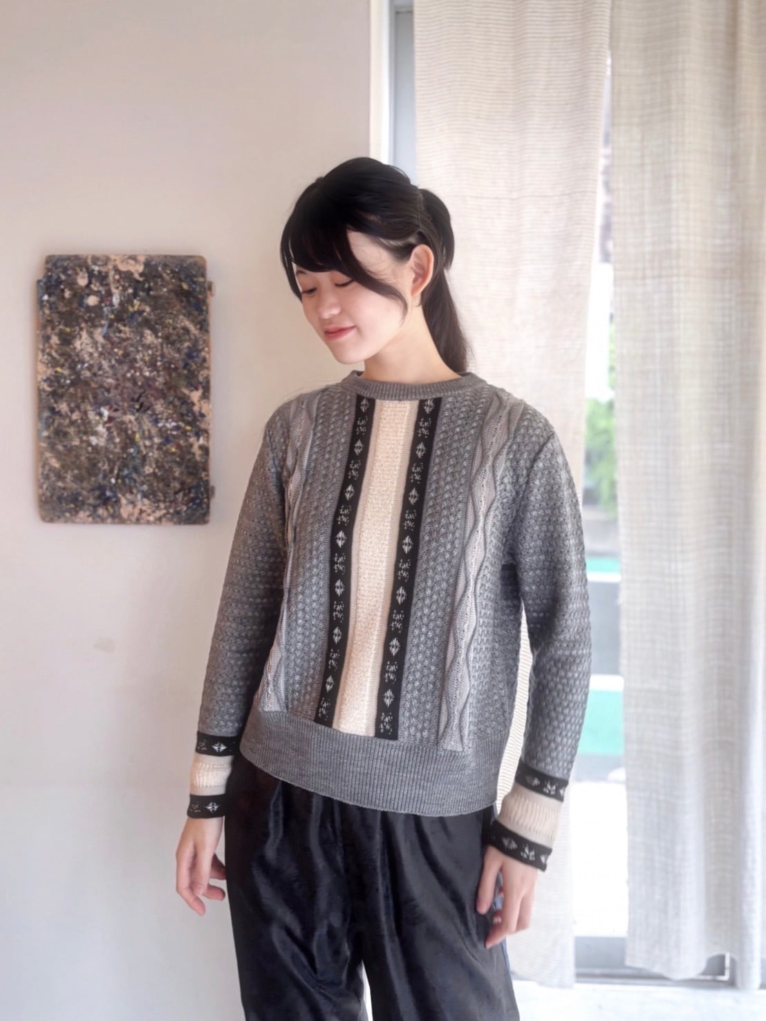 オーバーサイズが席巻している昨今、フレアスカート好きの店主は(自分では履かないけれど…)、「このバランスで着てほしい!」と思える、王道シルエットのエレガントなニットに久々に出会いました。