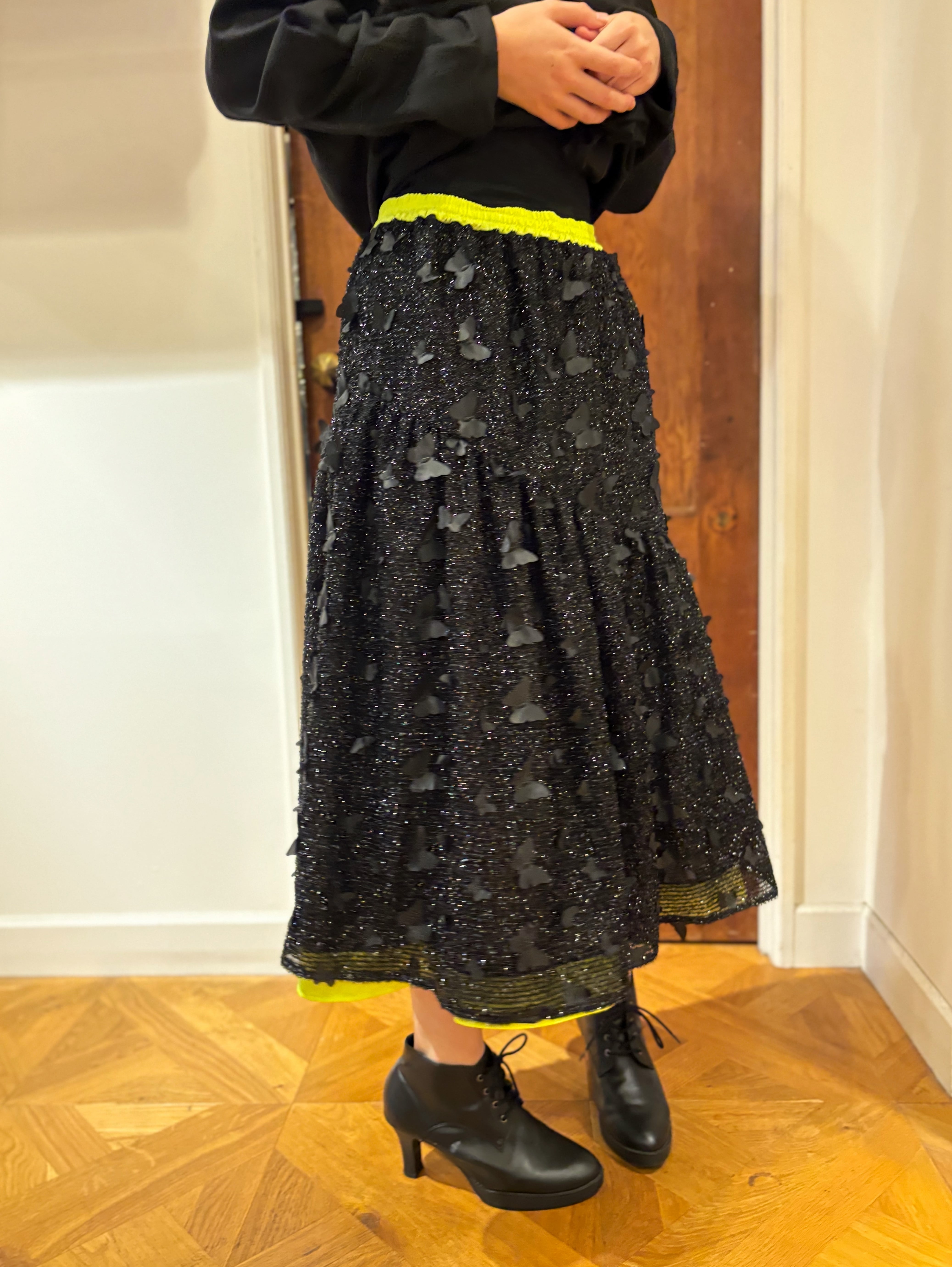 頑張らなくても華やかに映える、オールシーズンの“キラキラスカート”。