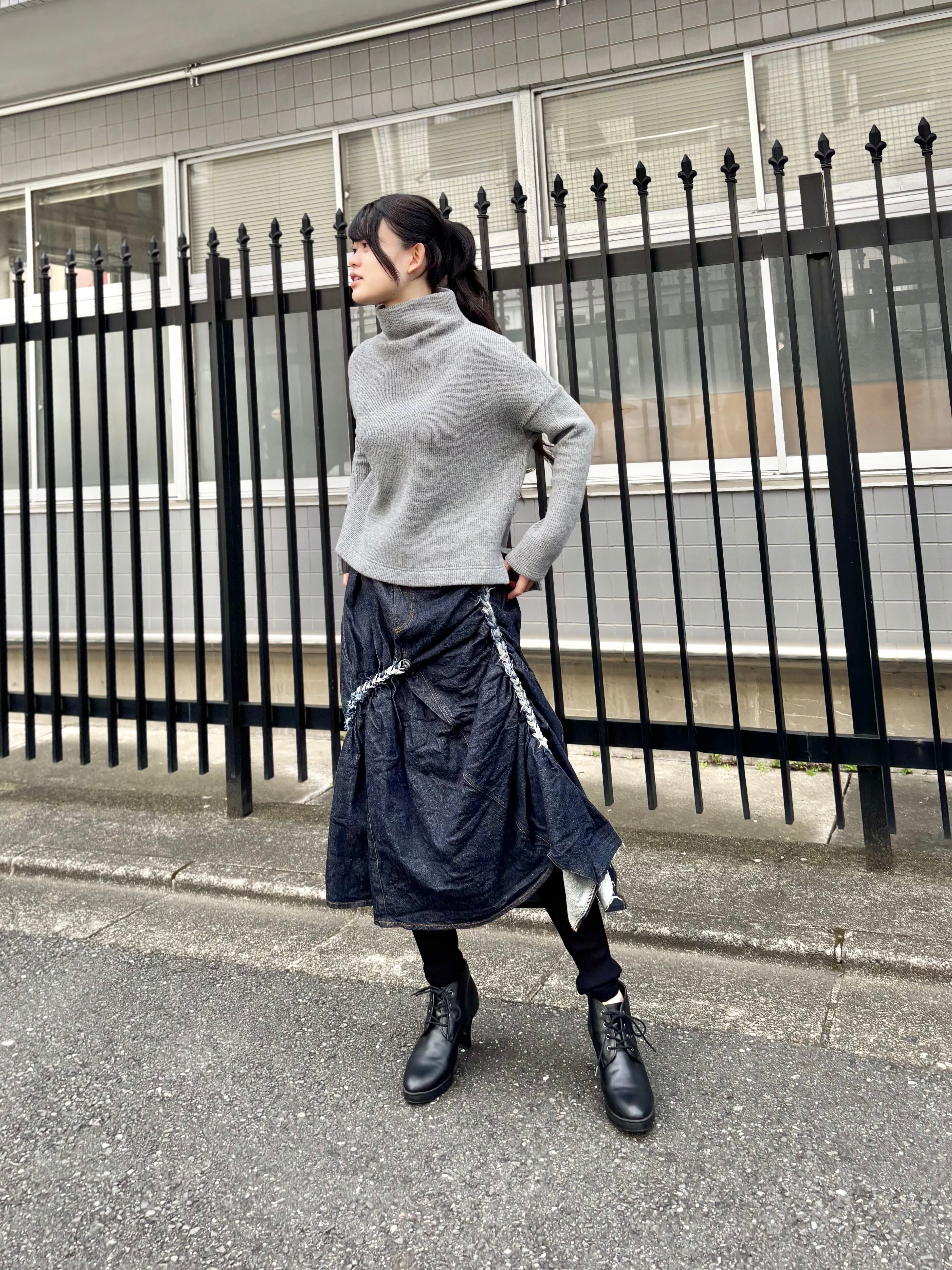 *モデルの身長168cm 7㎝ヒールのブーティを履いています。