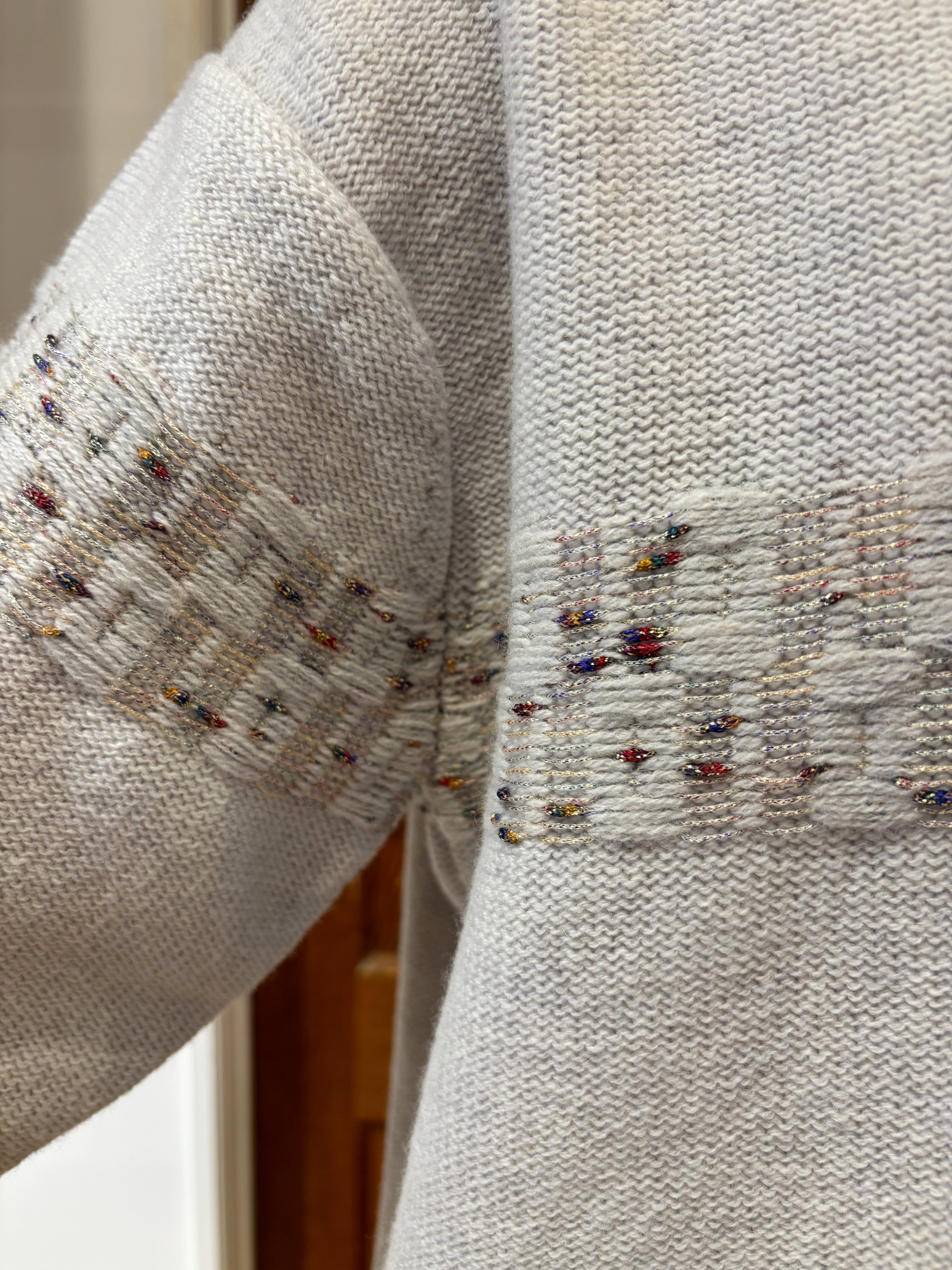 The gray version features delicate multi-colored metallic threads that catch the light,