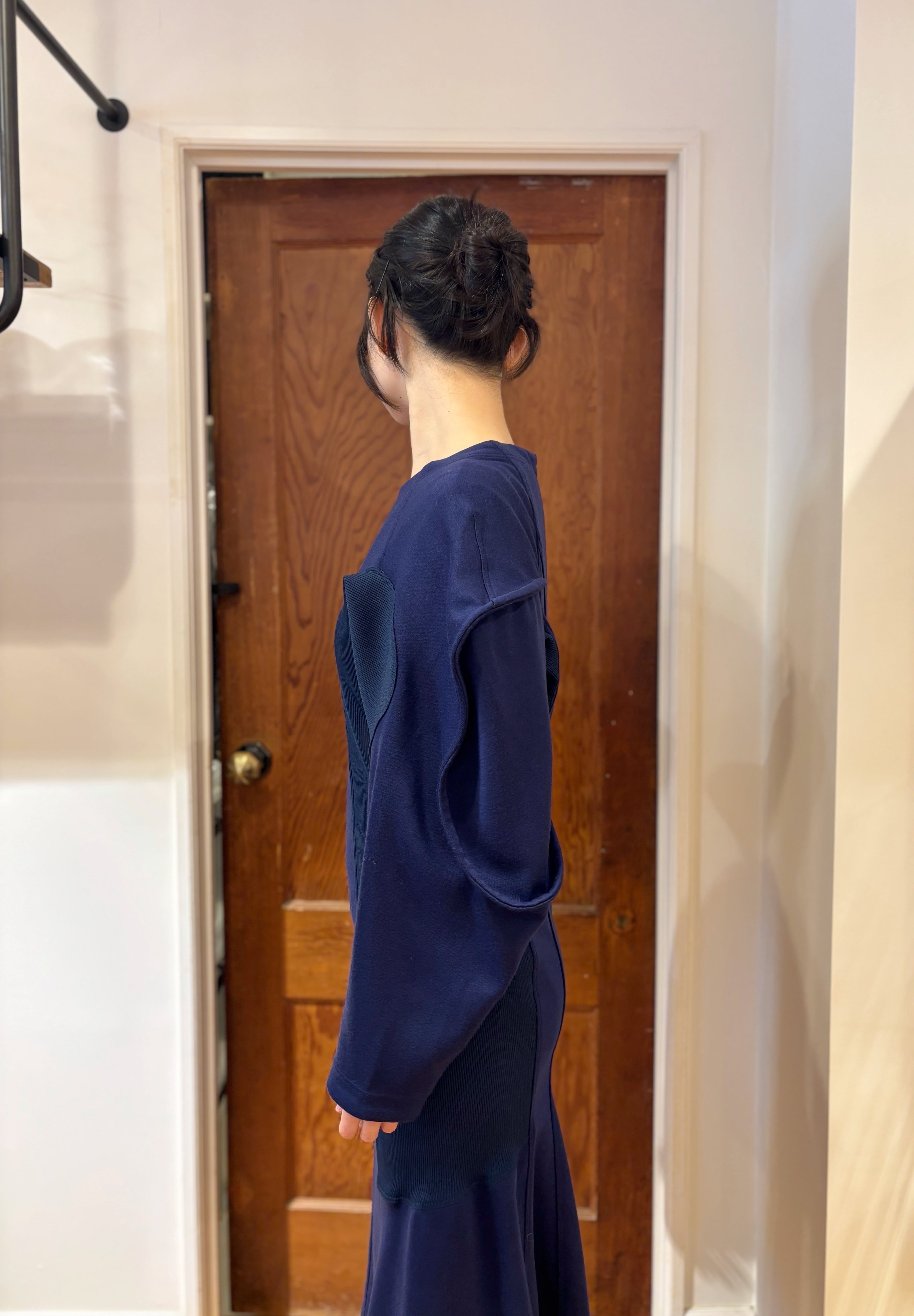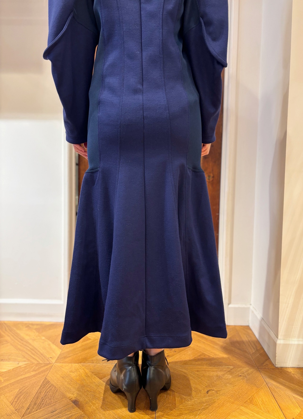 ジャージー素材とは思えない、ピンと張ったような緊張感とエレガンスを兼ね備えたドレス。