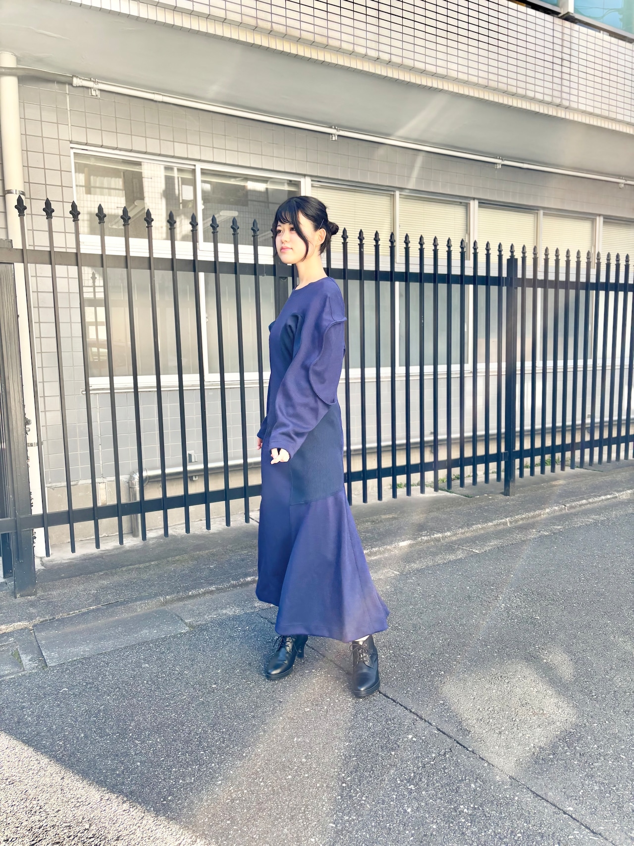 タイトすぎないフィット感と、裾に向かって広がるフレア分量が、