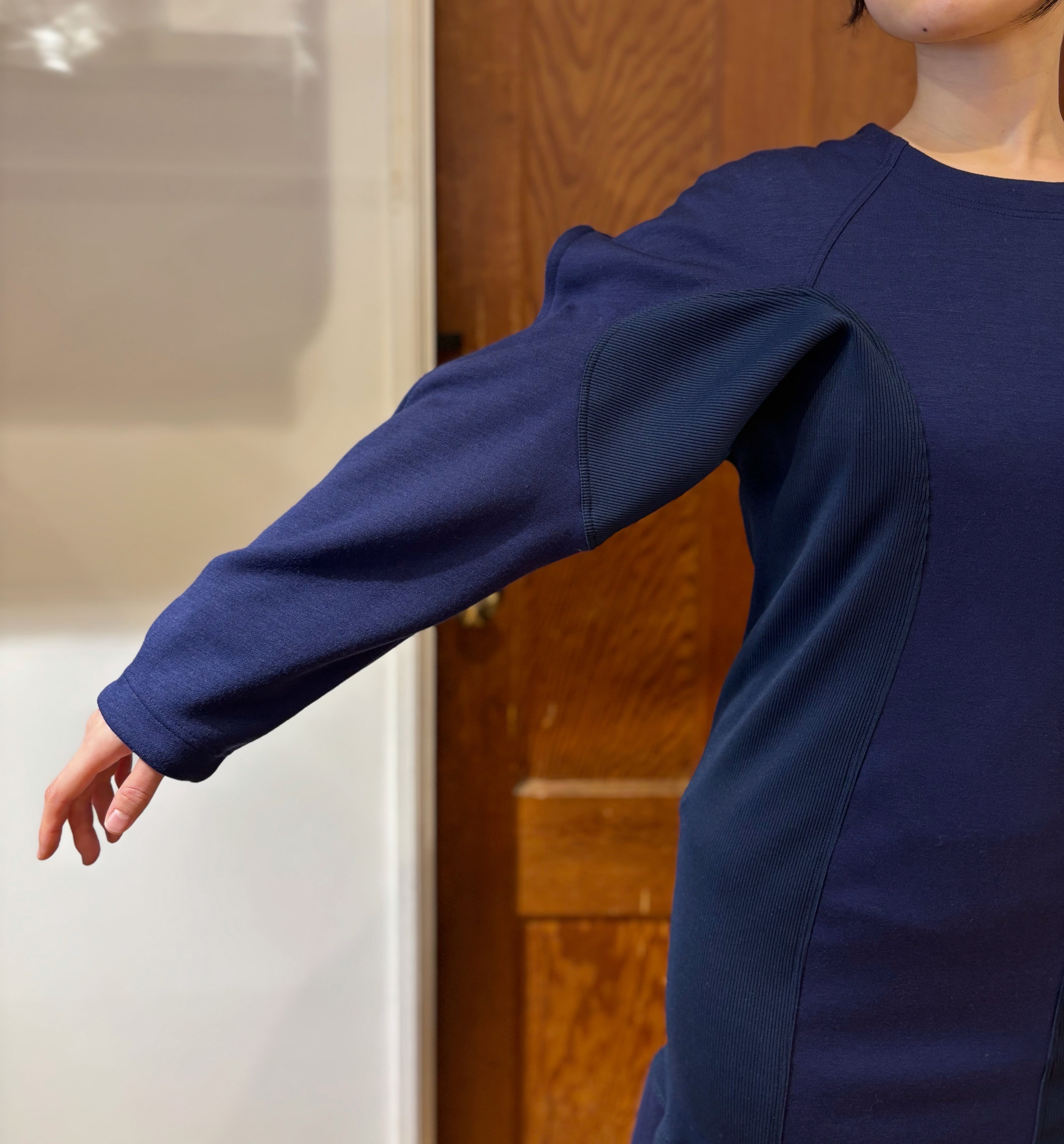 ほどよく身体に沿うシルエットを、ふっくらと厚みのあるストレッチジャージーと