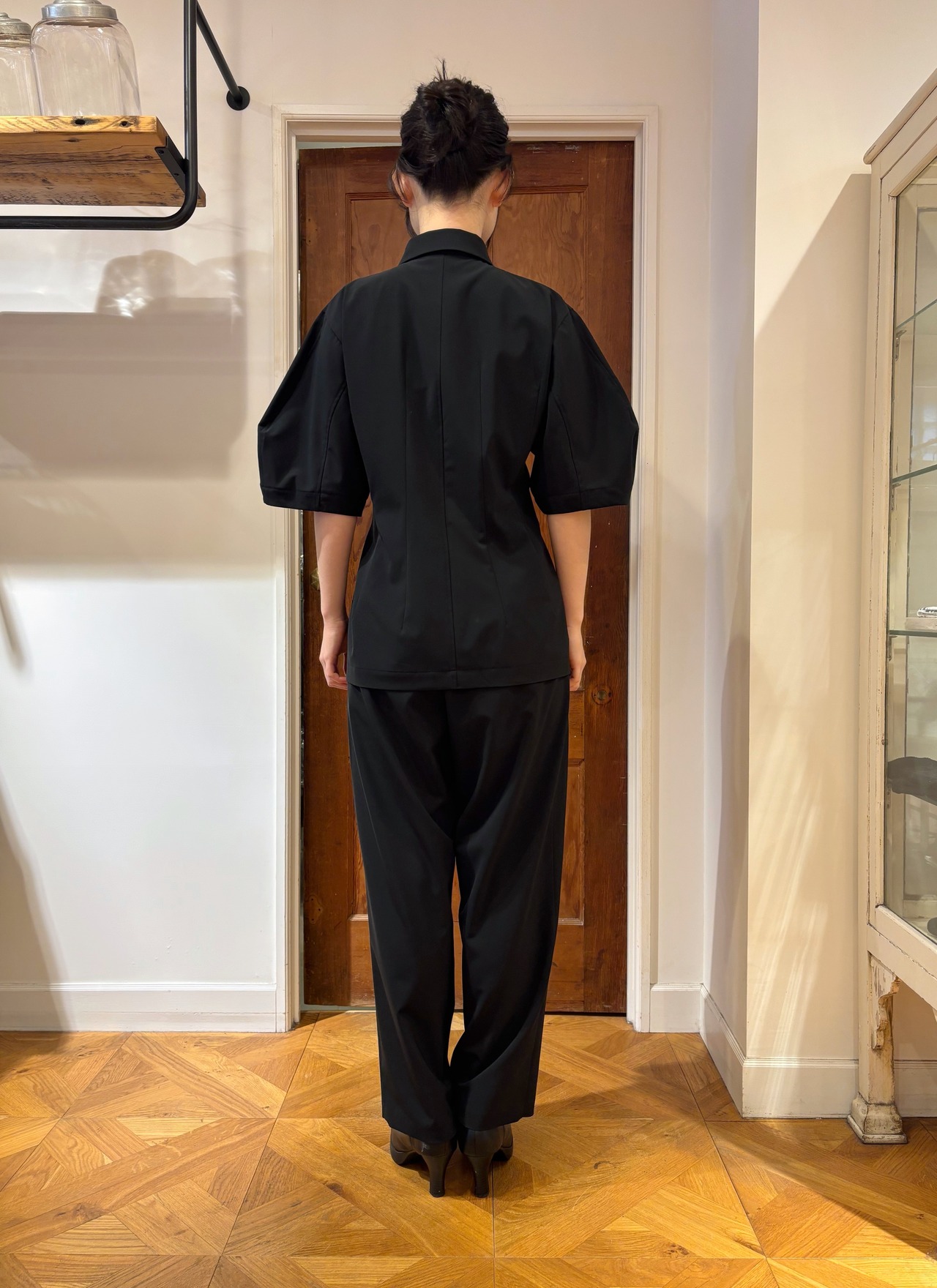 ややテーパードのストレートが、甘さのないハンサムさを作りながら、全身をバランスよく見せてくれます。