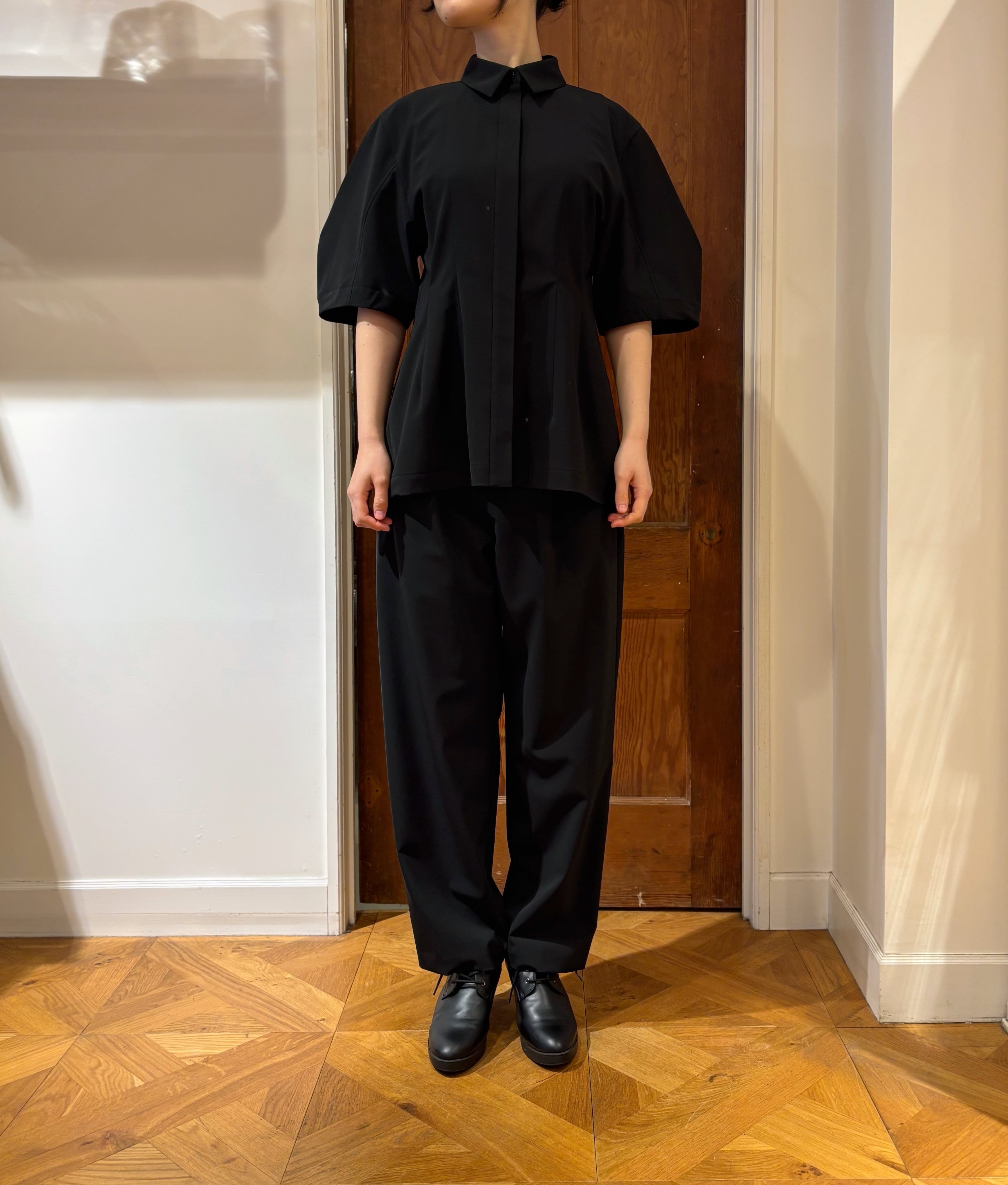 同素材のブラウスと合わせれば、洗練されたセットアップに。