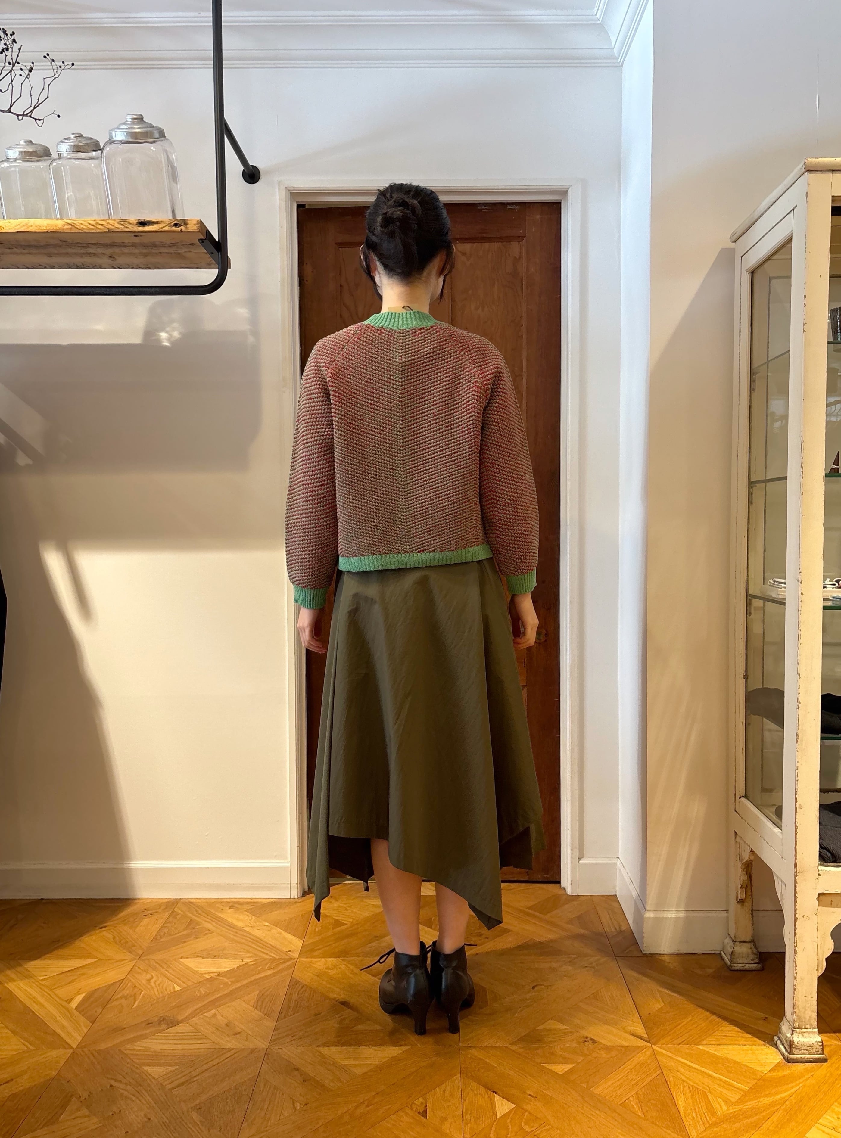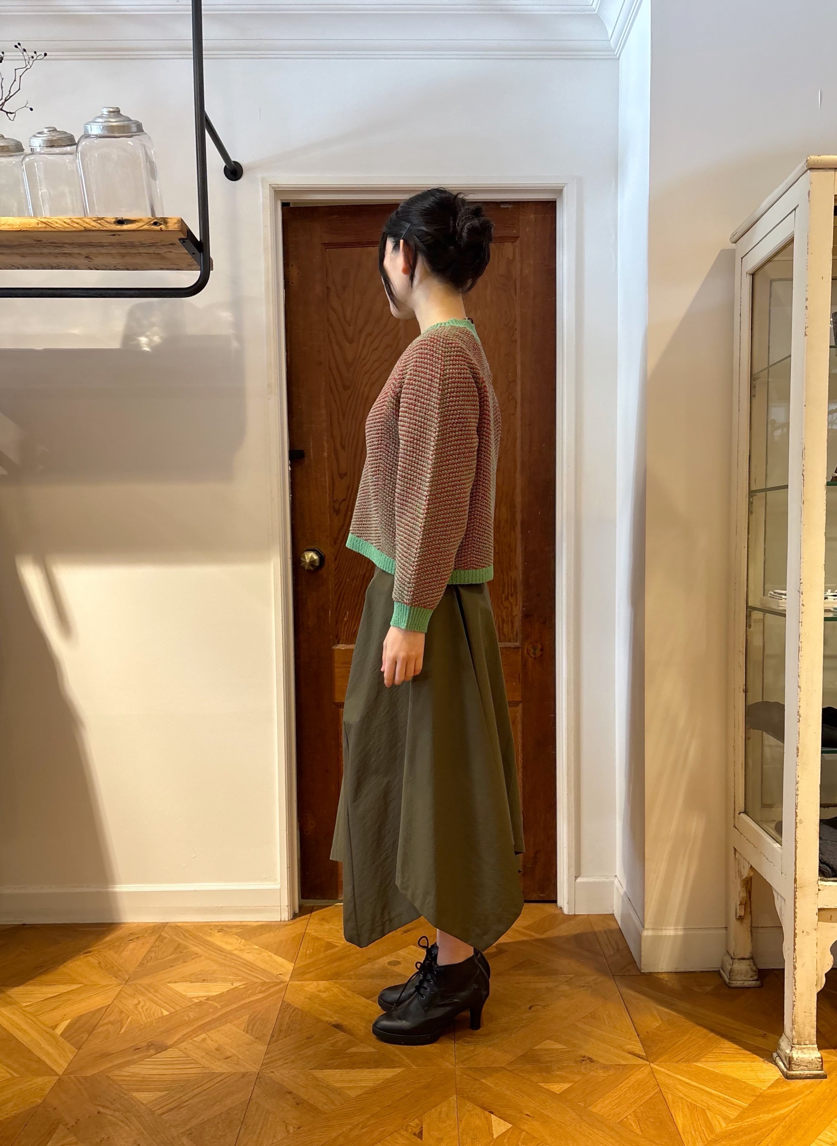 With its cropped, compact length, it balances beautifully with skirts and wide-leg pants.