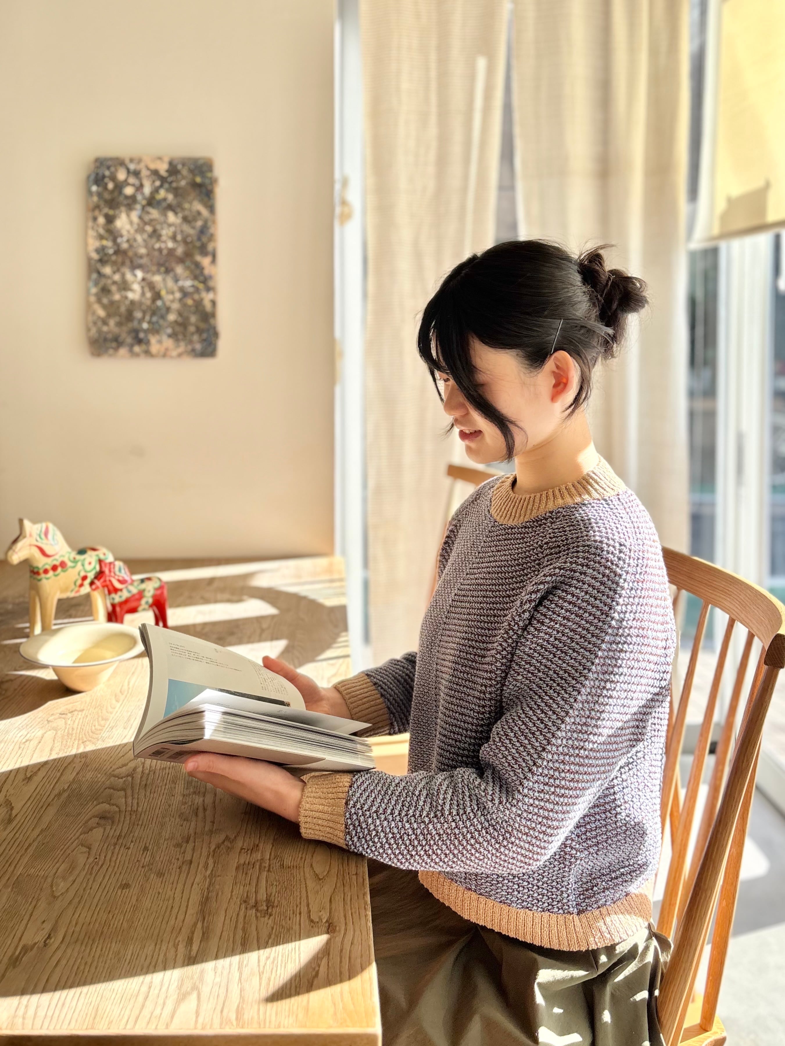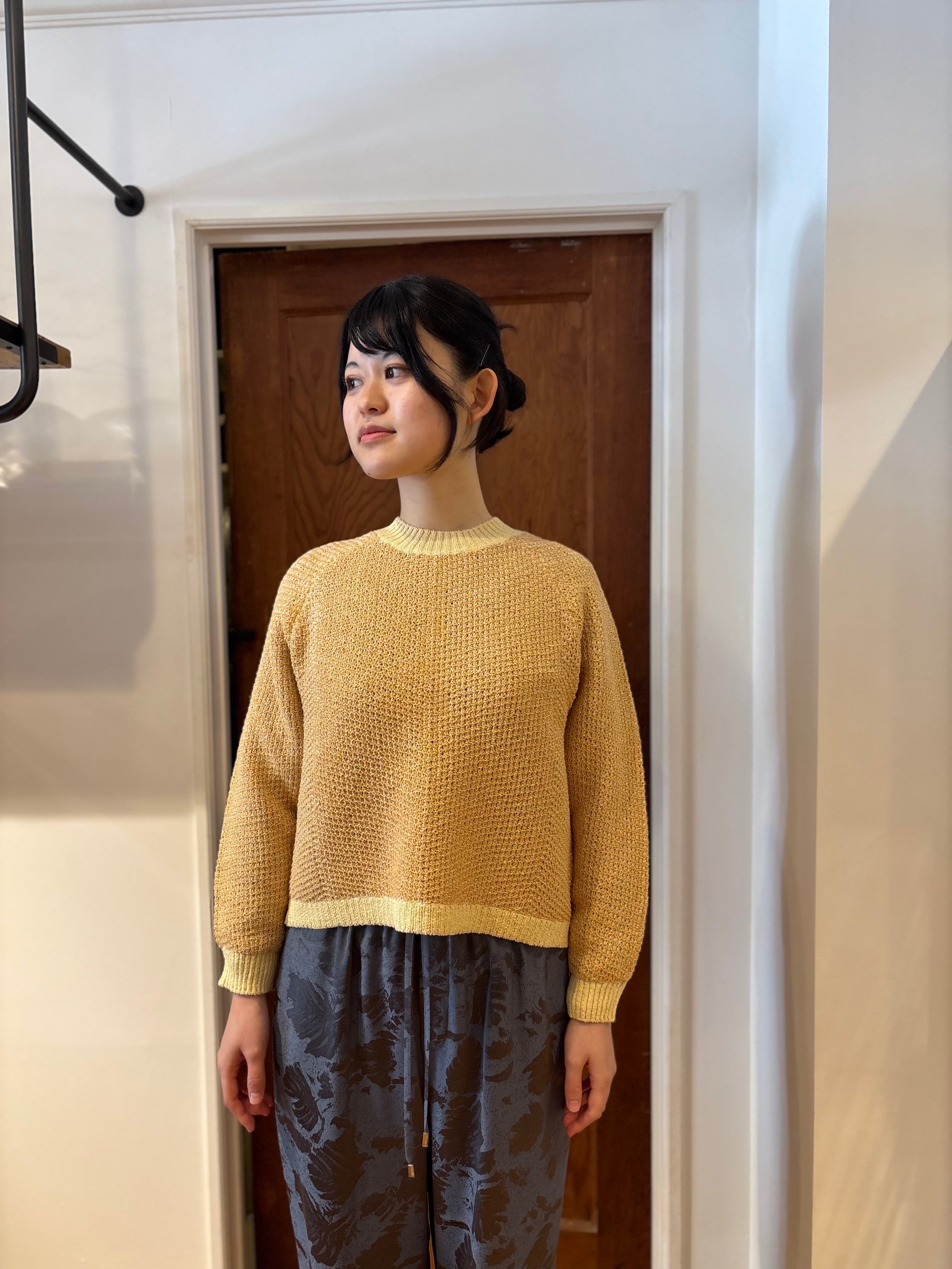 一枚で気分が上がるのに、シルエットはすっきり。凹凸のある編み地が表情を作り、ベーシックなボトムに合わせるだけで“ちゃんとお洒落”が完成します。