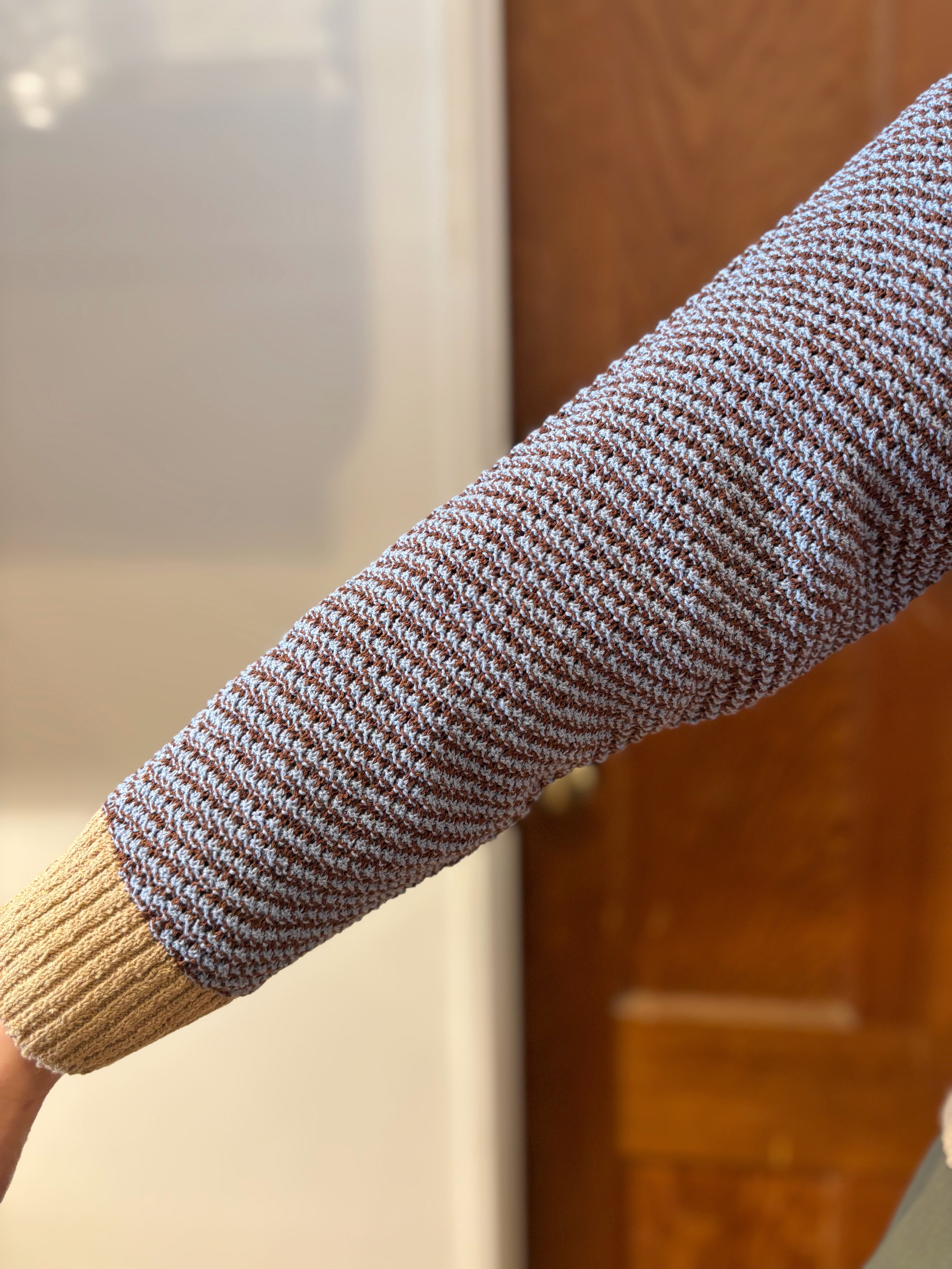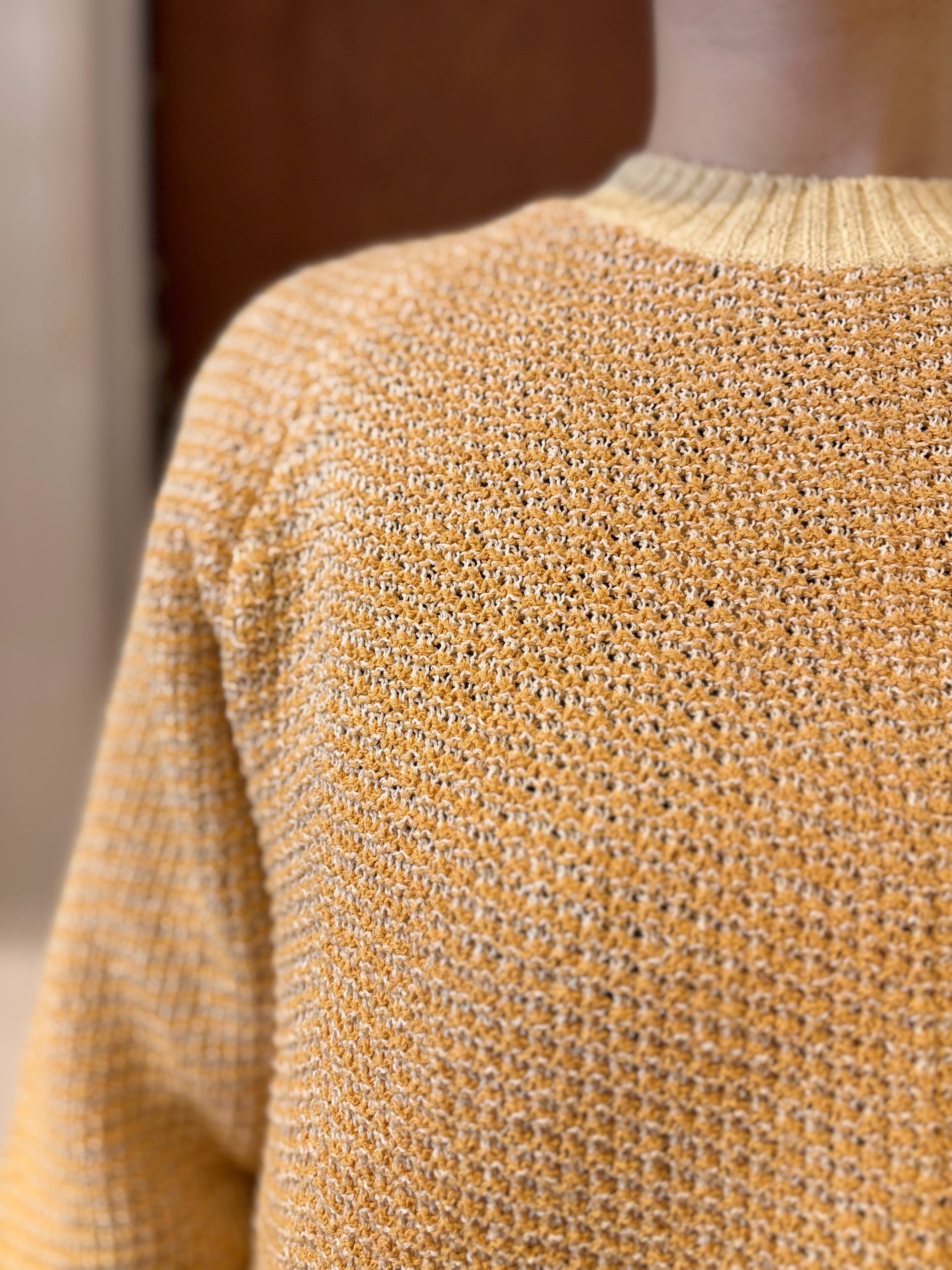 Playful colors, a clean silhouette—this is the kind of knit you can throw on and instantly look “put together.” The textured stitch adds depth, so even simple bottoms feel styled.