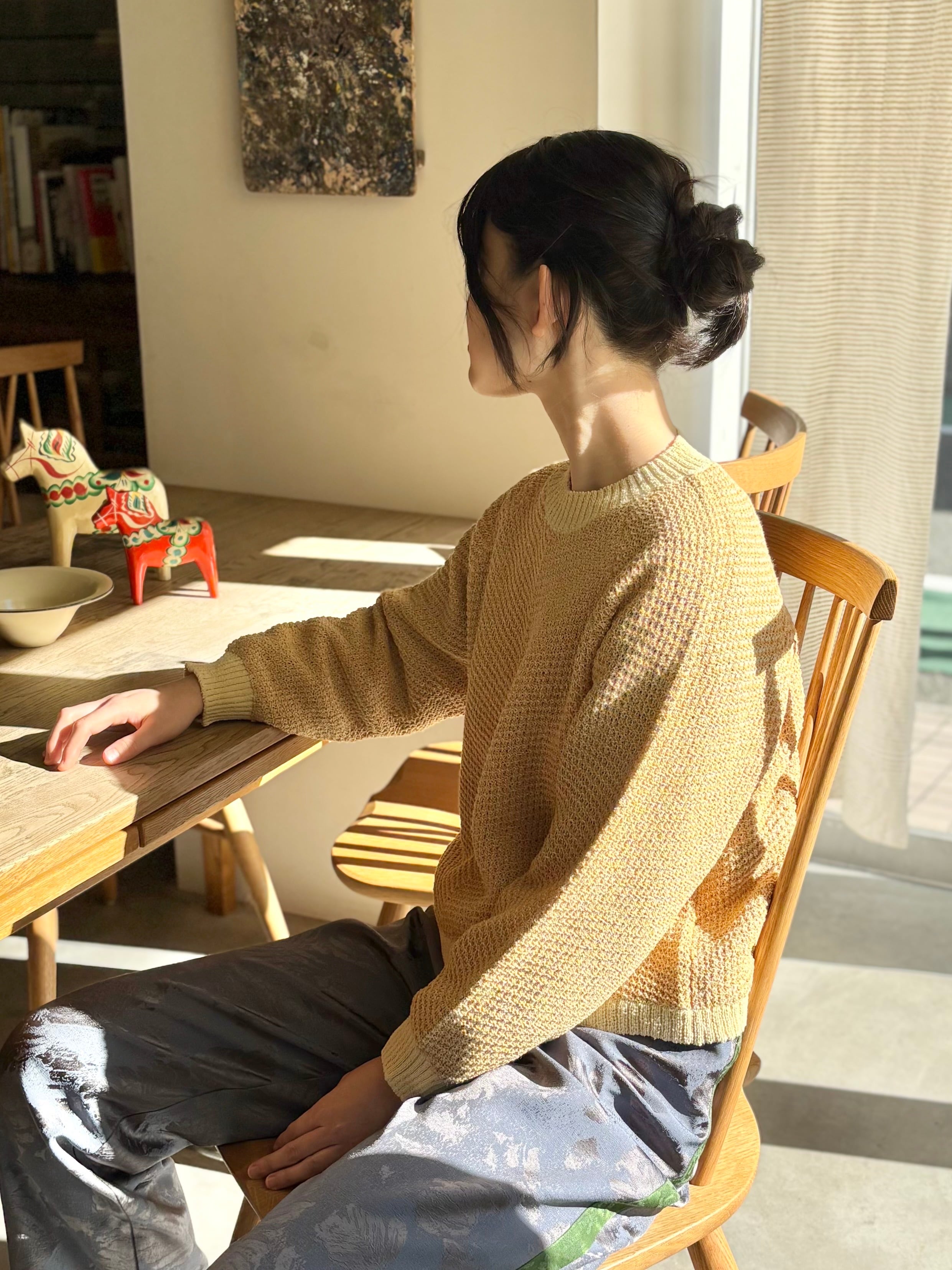 • 梅春(まだ肌寒い時期):コットンニット、ローゲージのモヘアニットで抜け感を。