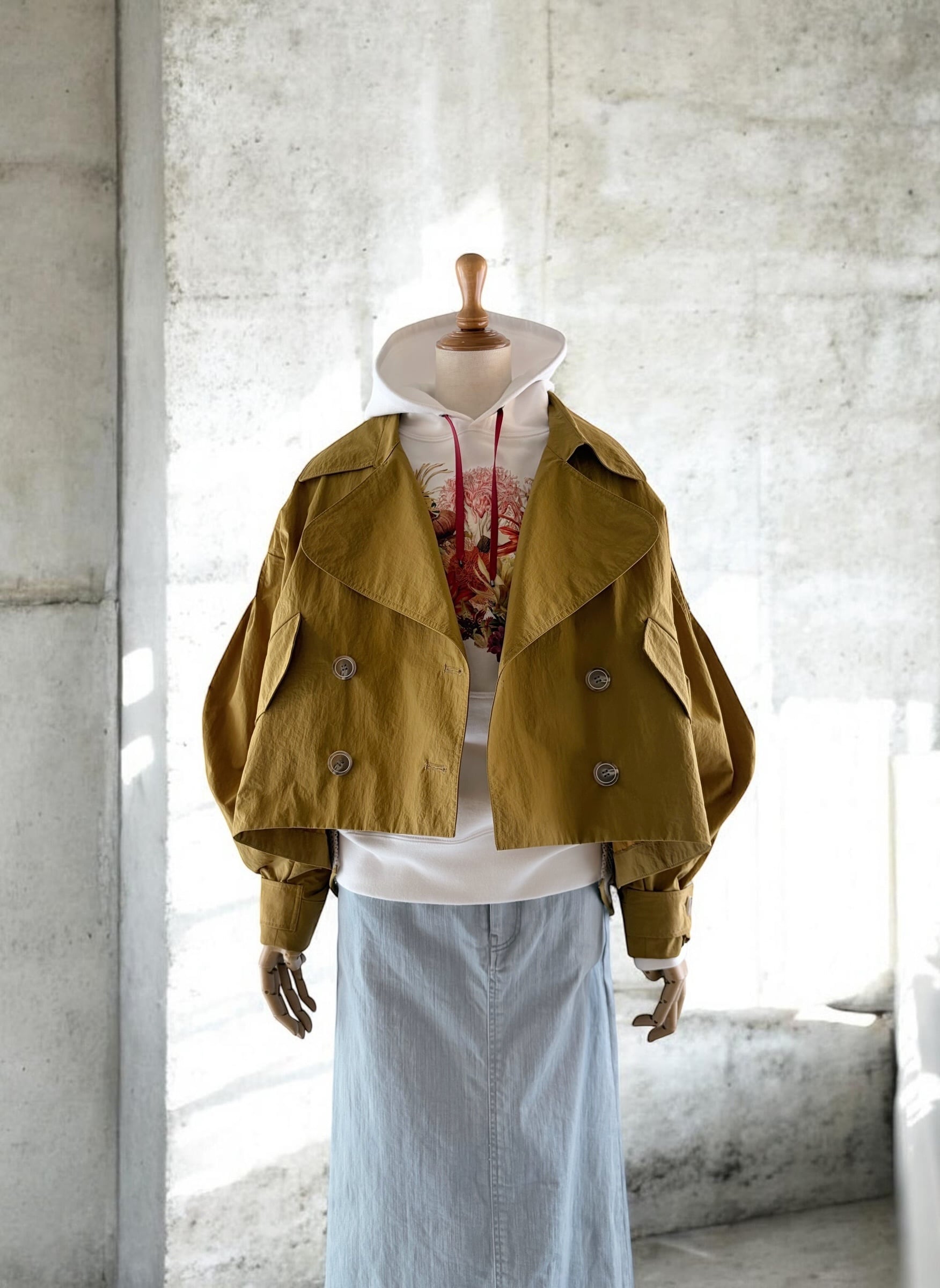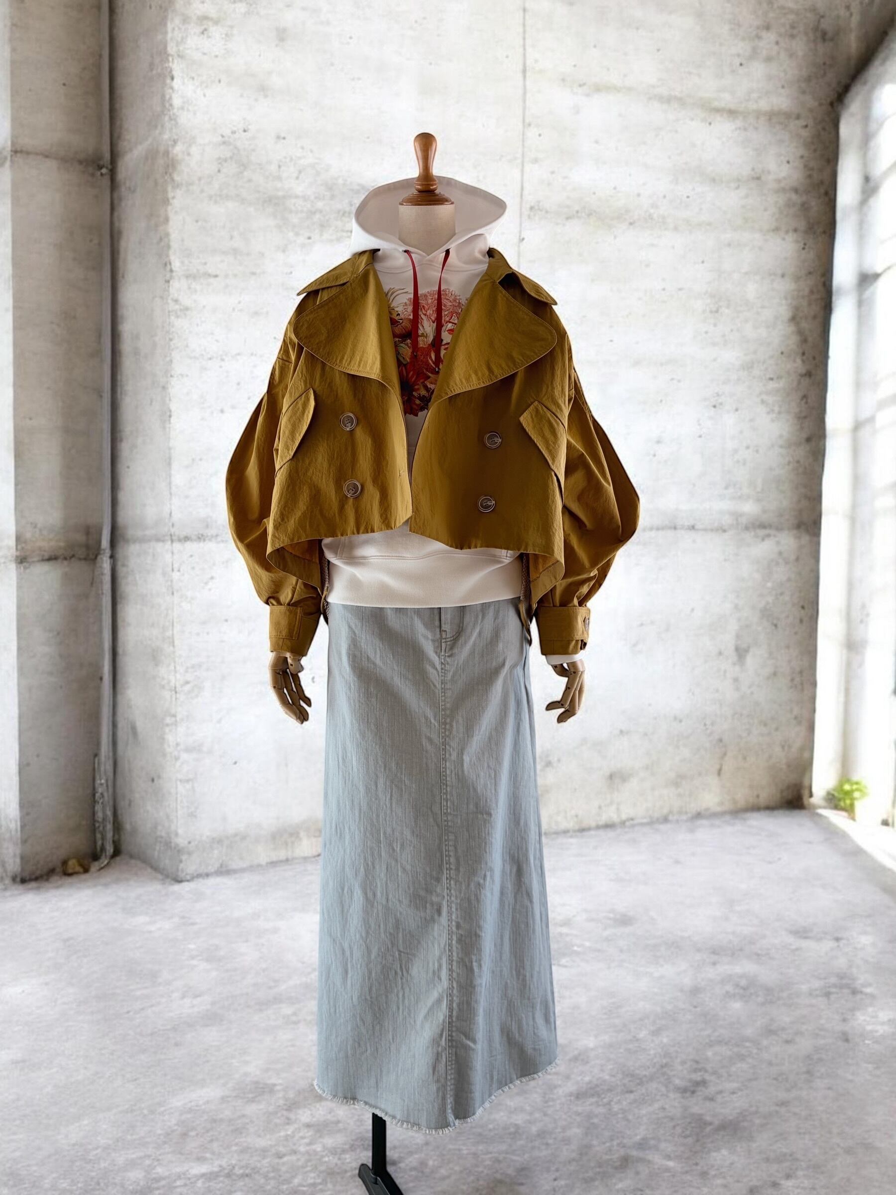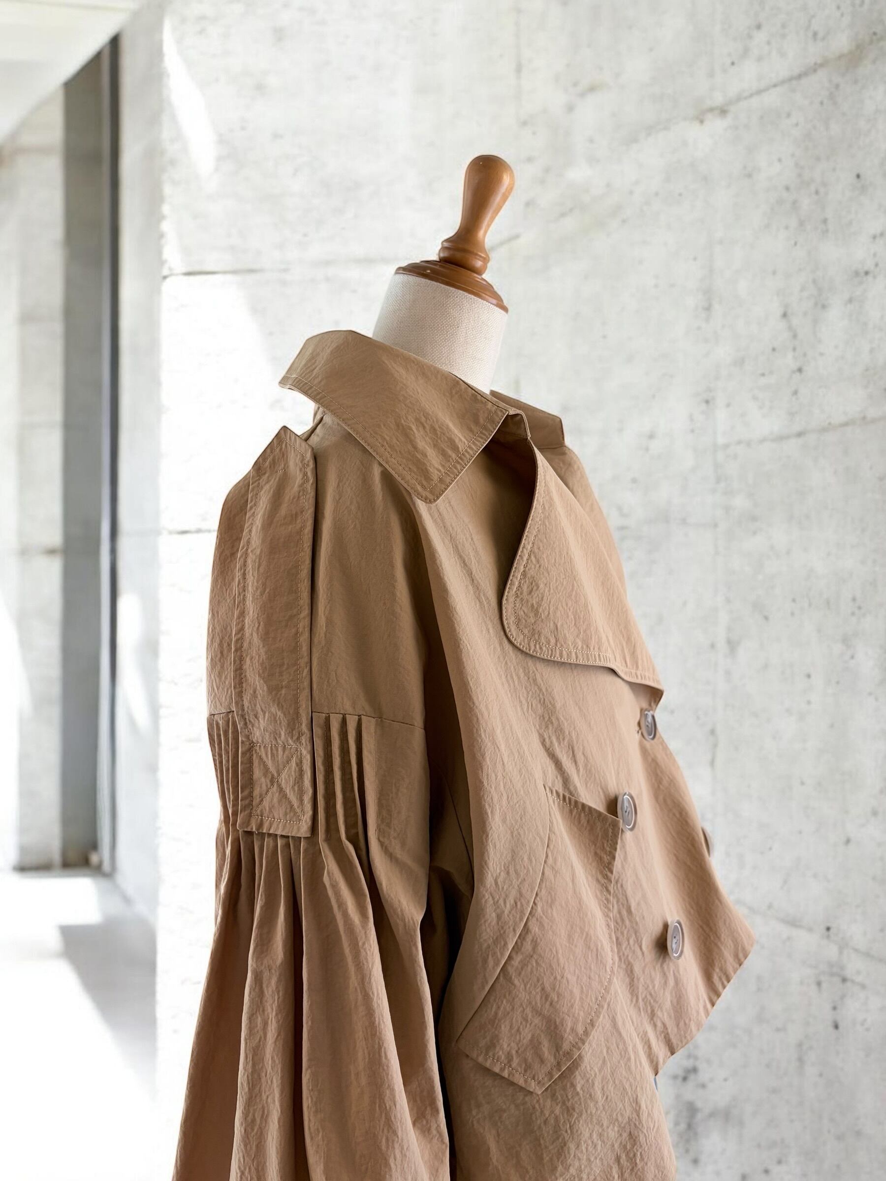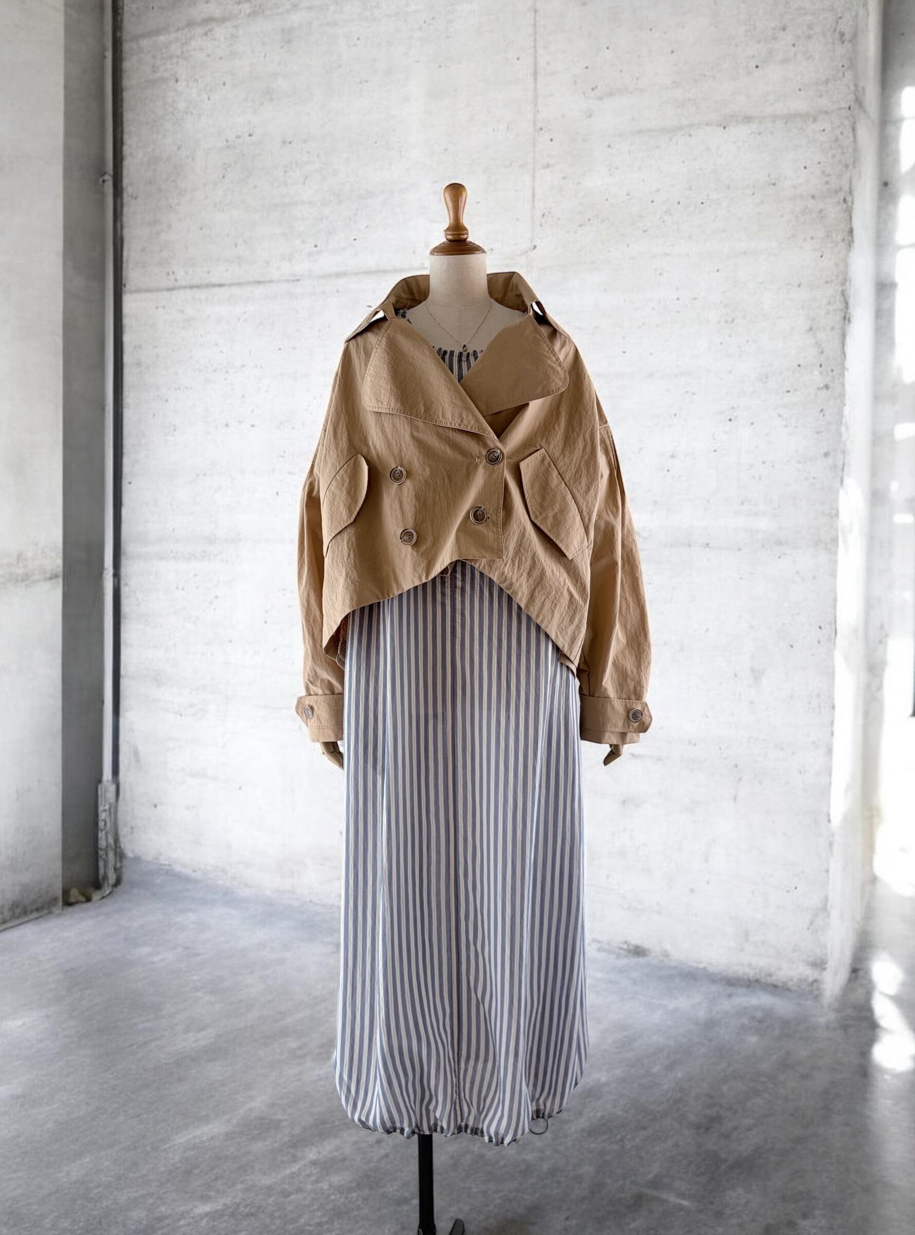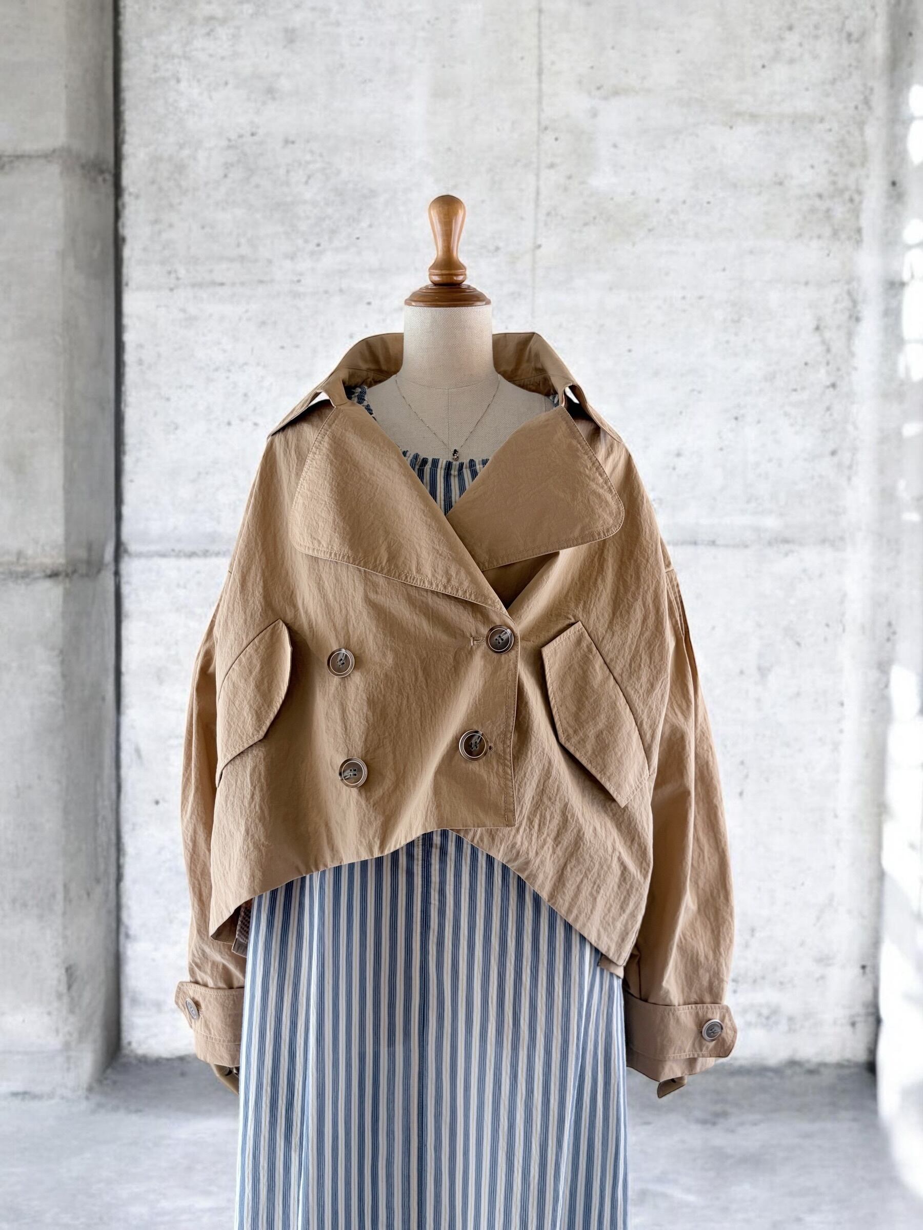 A lightweight tent-line short coat that makes you look forward to spring plans.