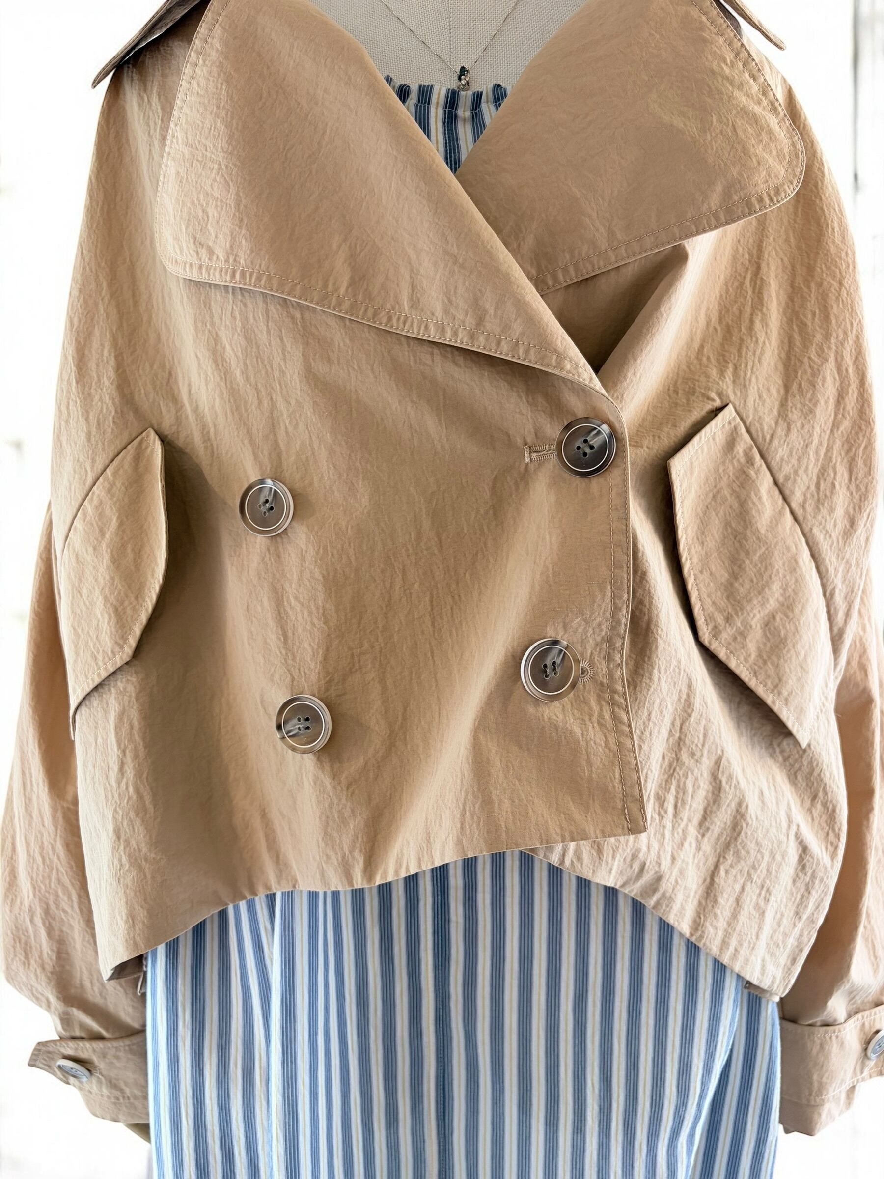 シワを気にしすぎずに持ち歩けて、羽織ったらもう外に出たくなる、軽やかな春アウターです。