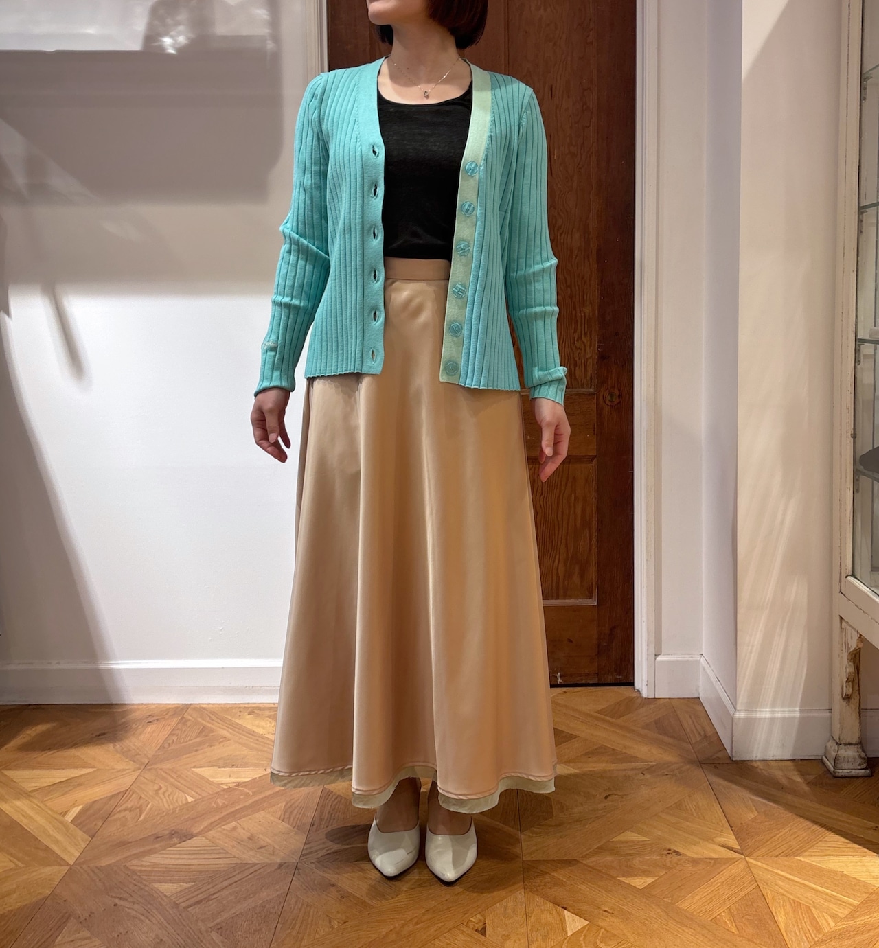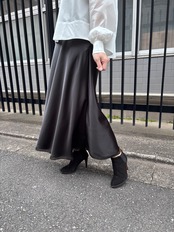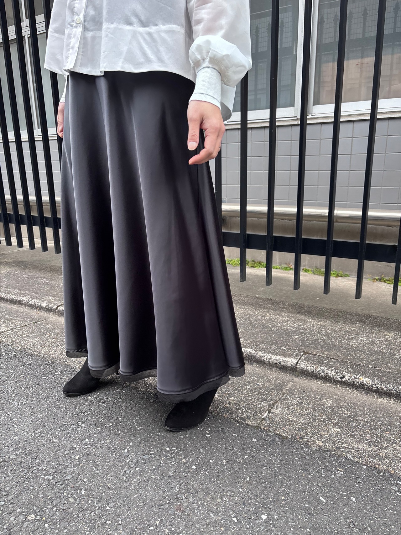 「今日はちょっと上質なものを着ている」—そんな気分をくれるサテンスカートです。