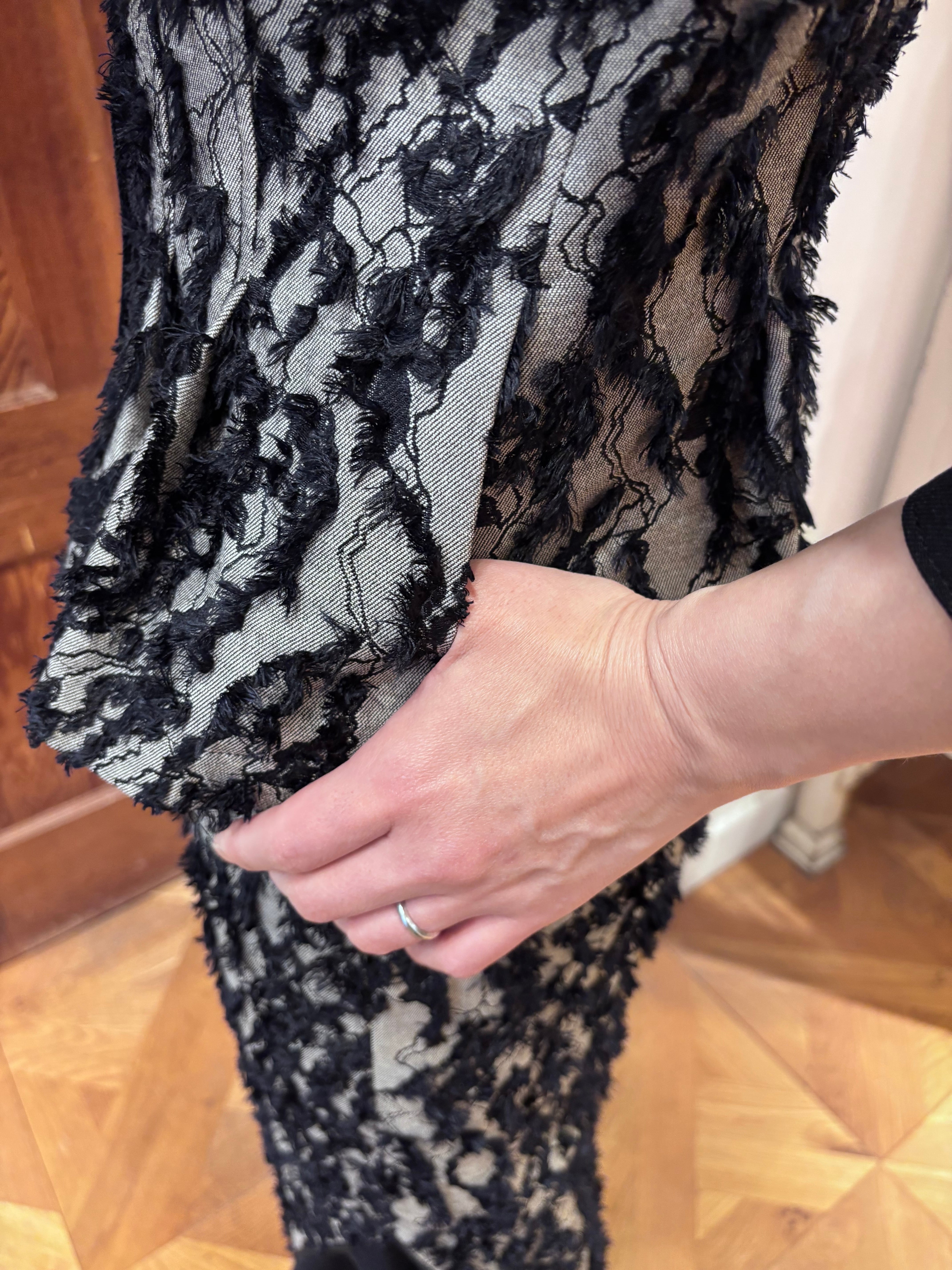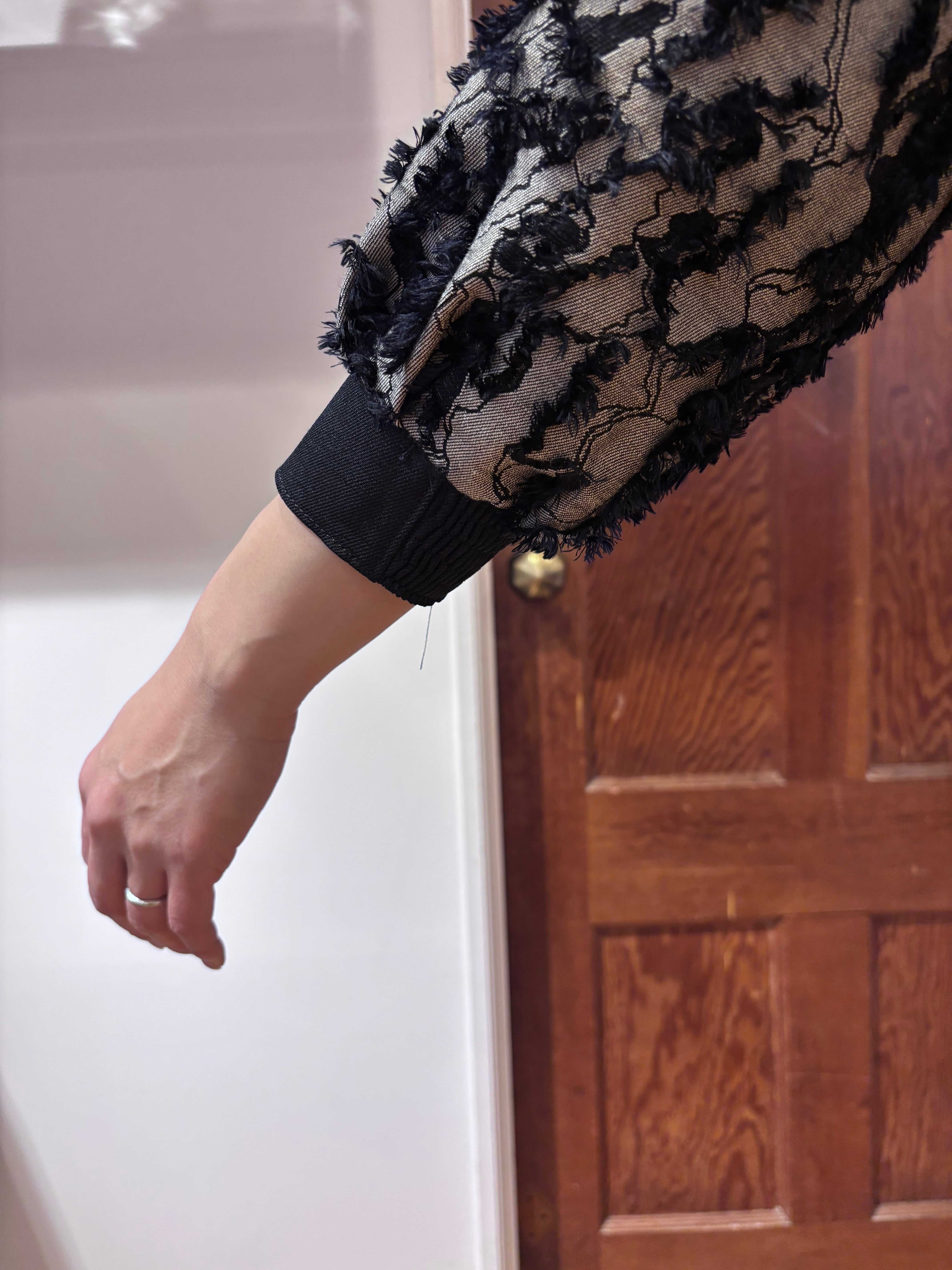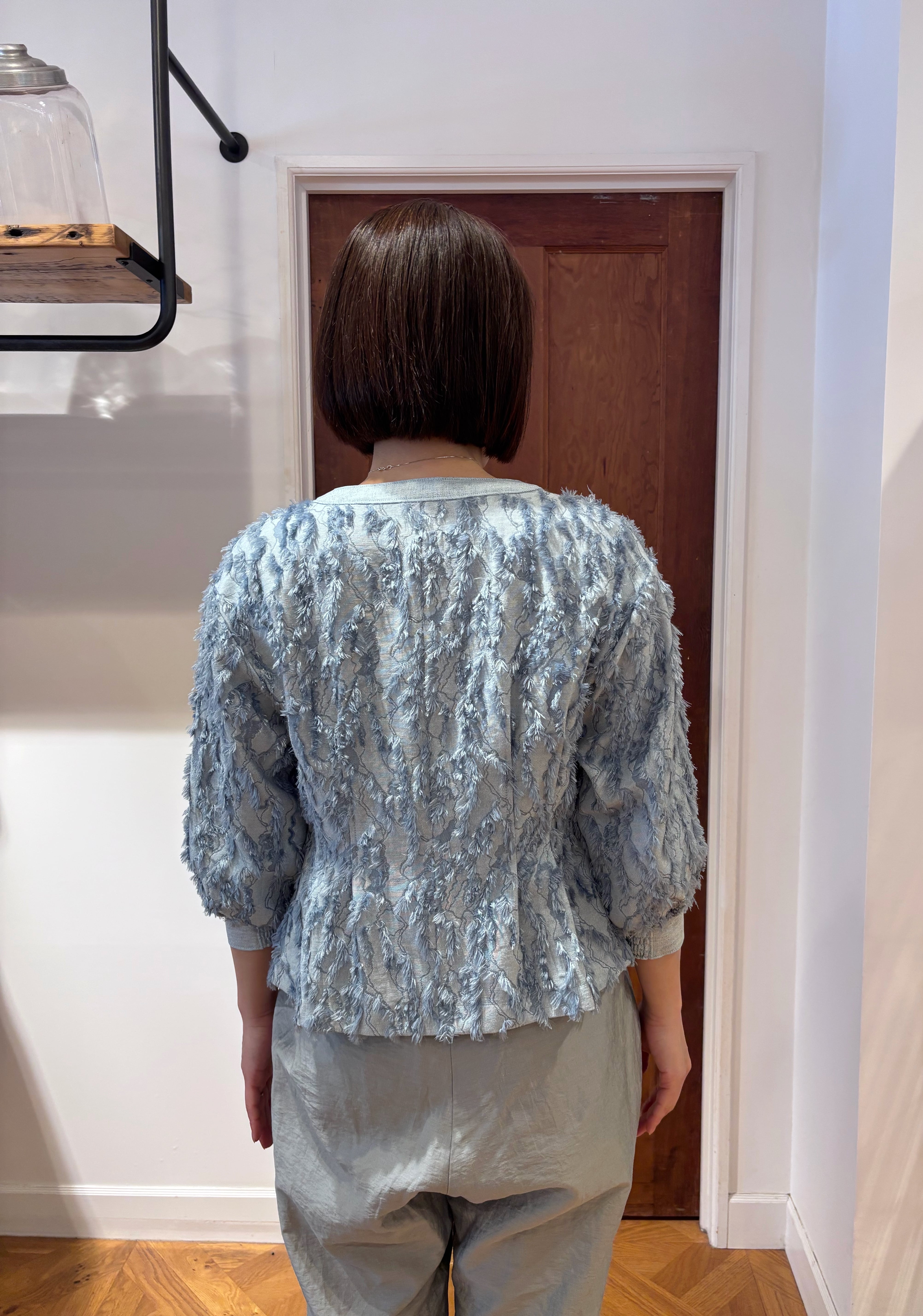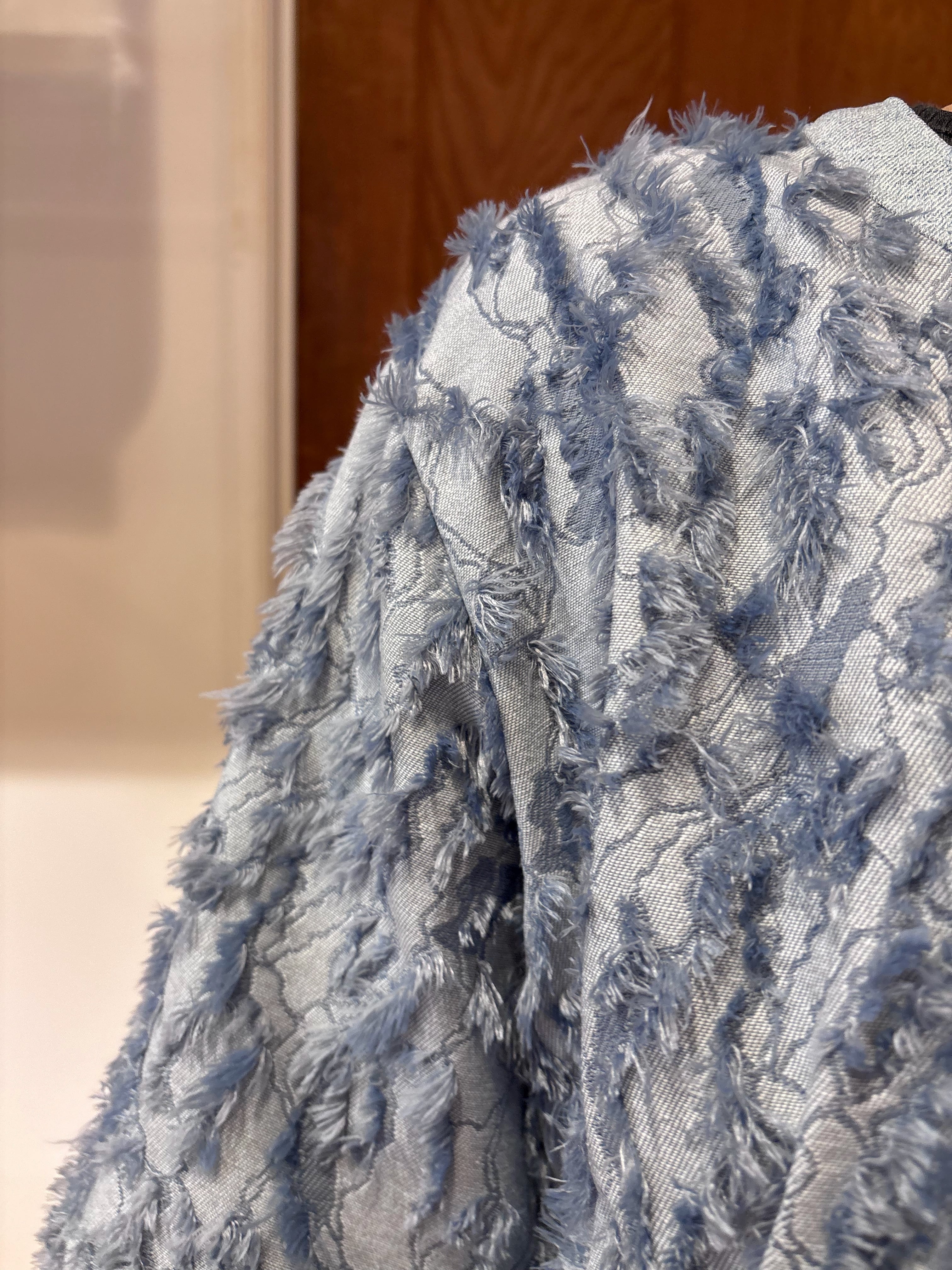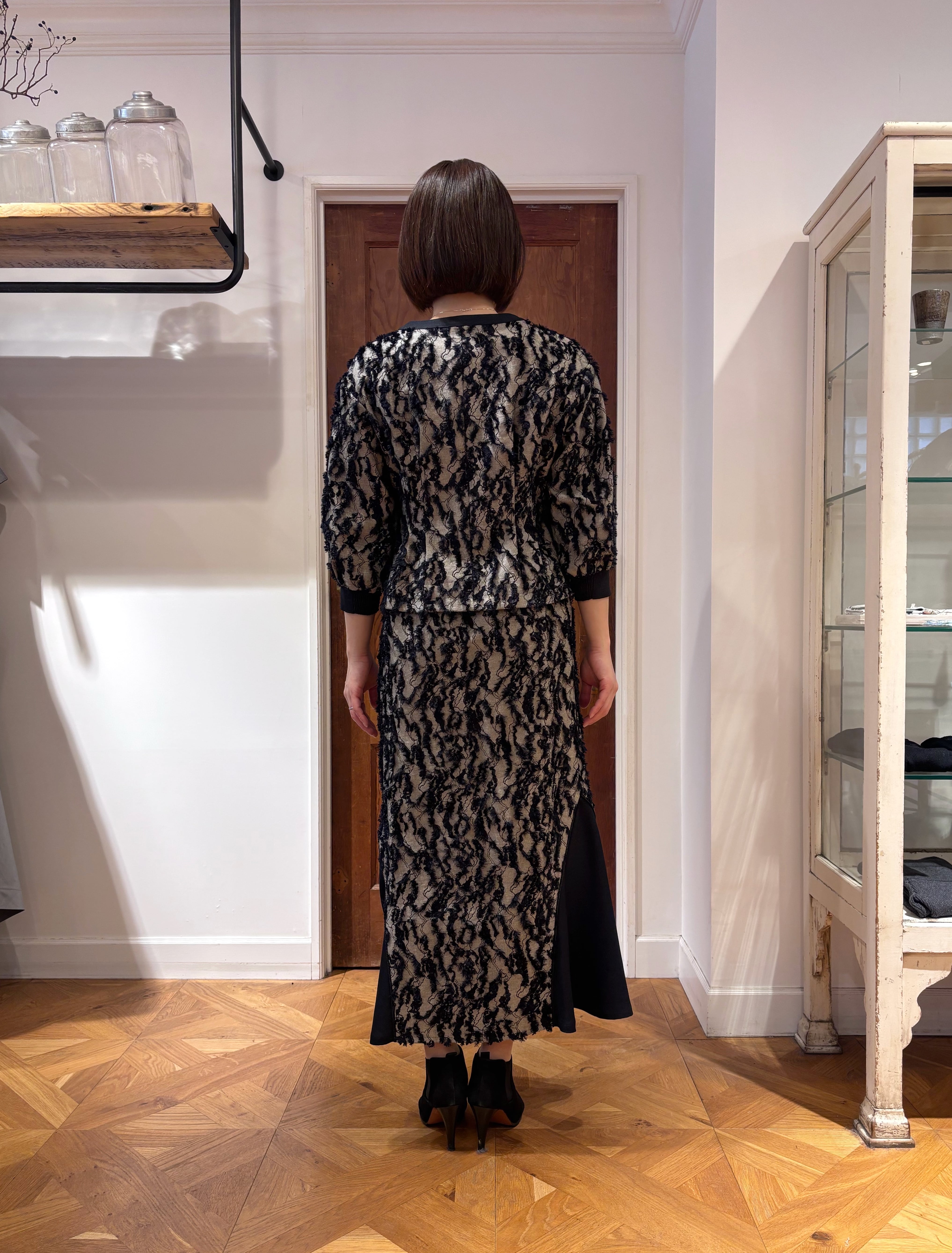 植物の蔓を思わせる、繊細で立体感のあるカットジャカードが印象的なジャケットです。
