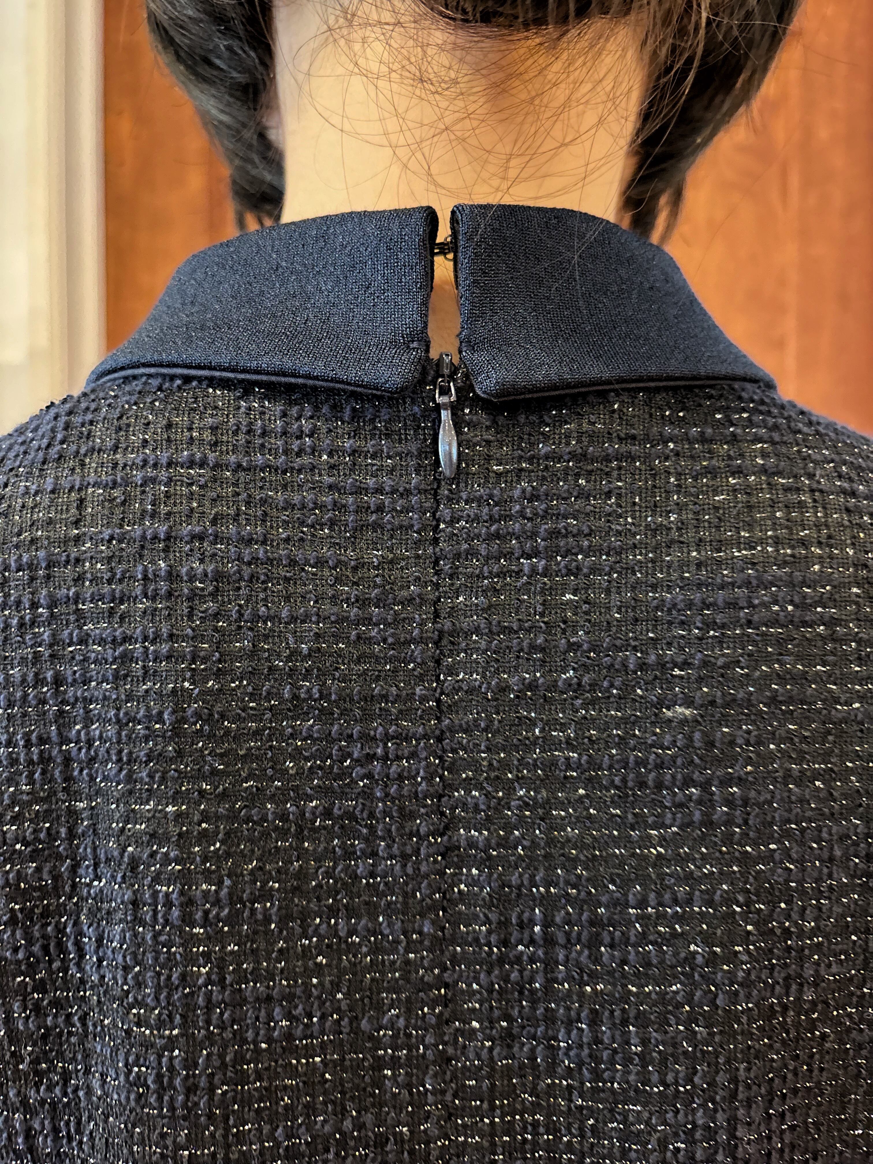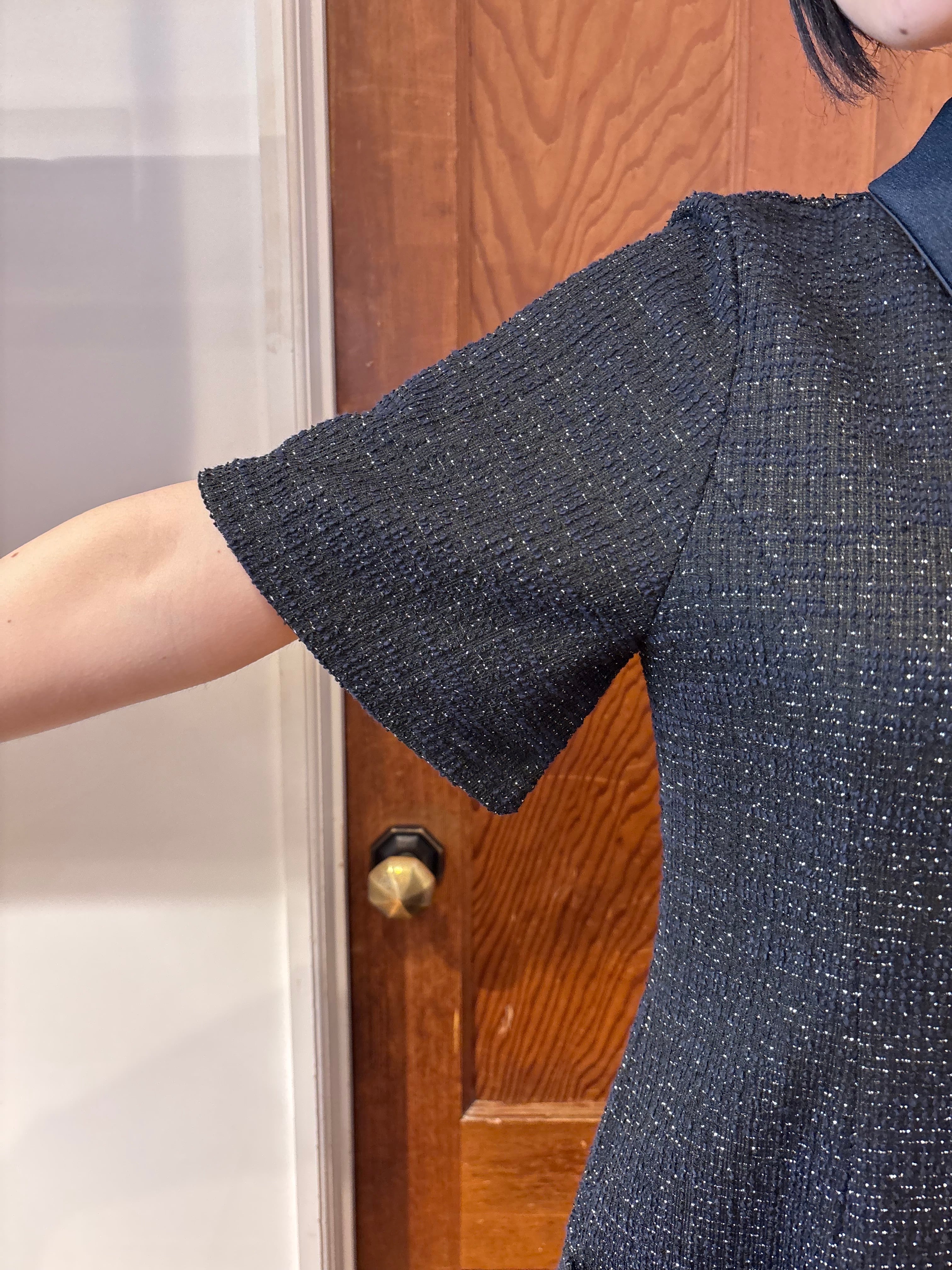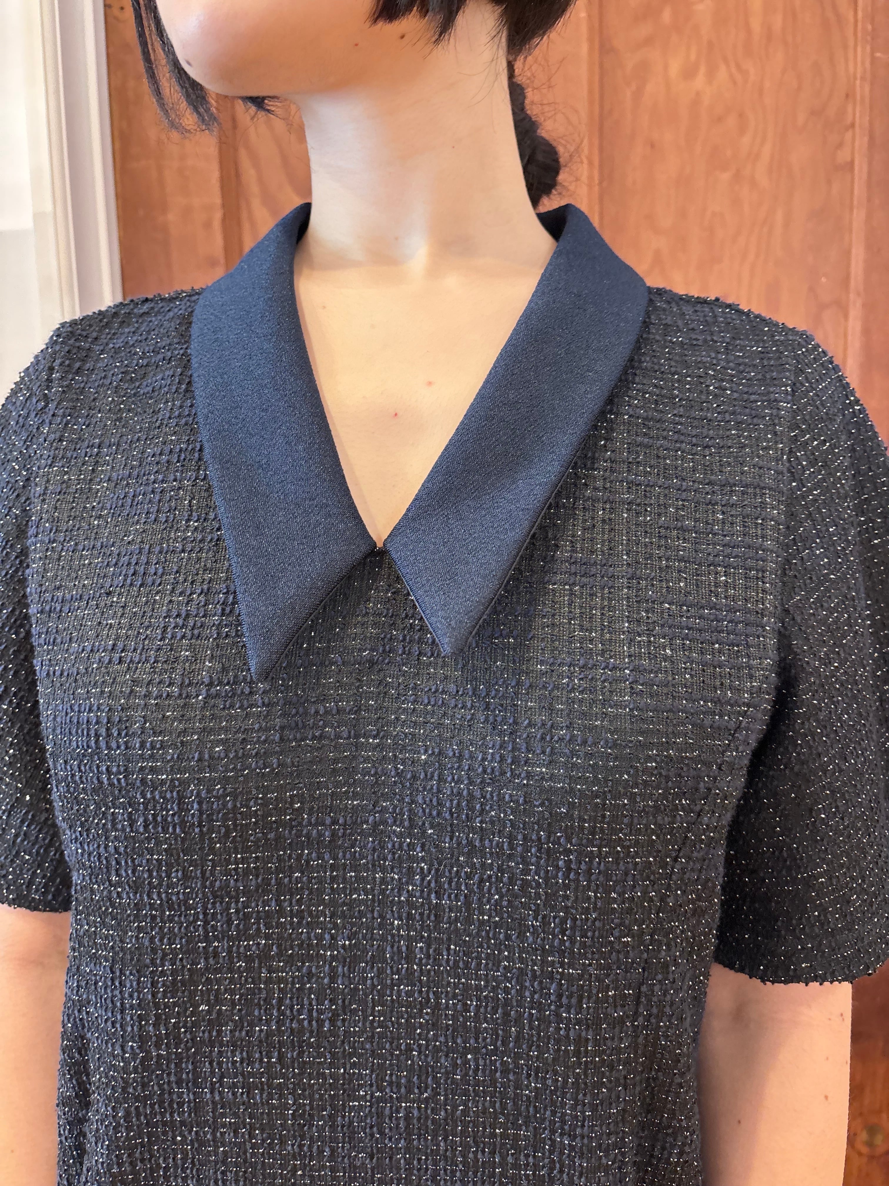 素材には、ほのかにラメを織り込んだツイード調のカットソーを使用。表情のある質感が、クラシカルな雰囲気にさりげない華やかさを添え、日常にも特別なシーンにも自然に馴染みます。