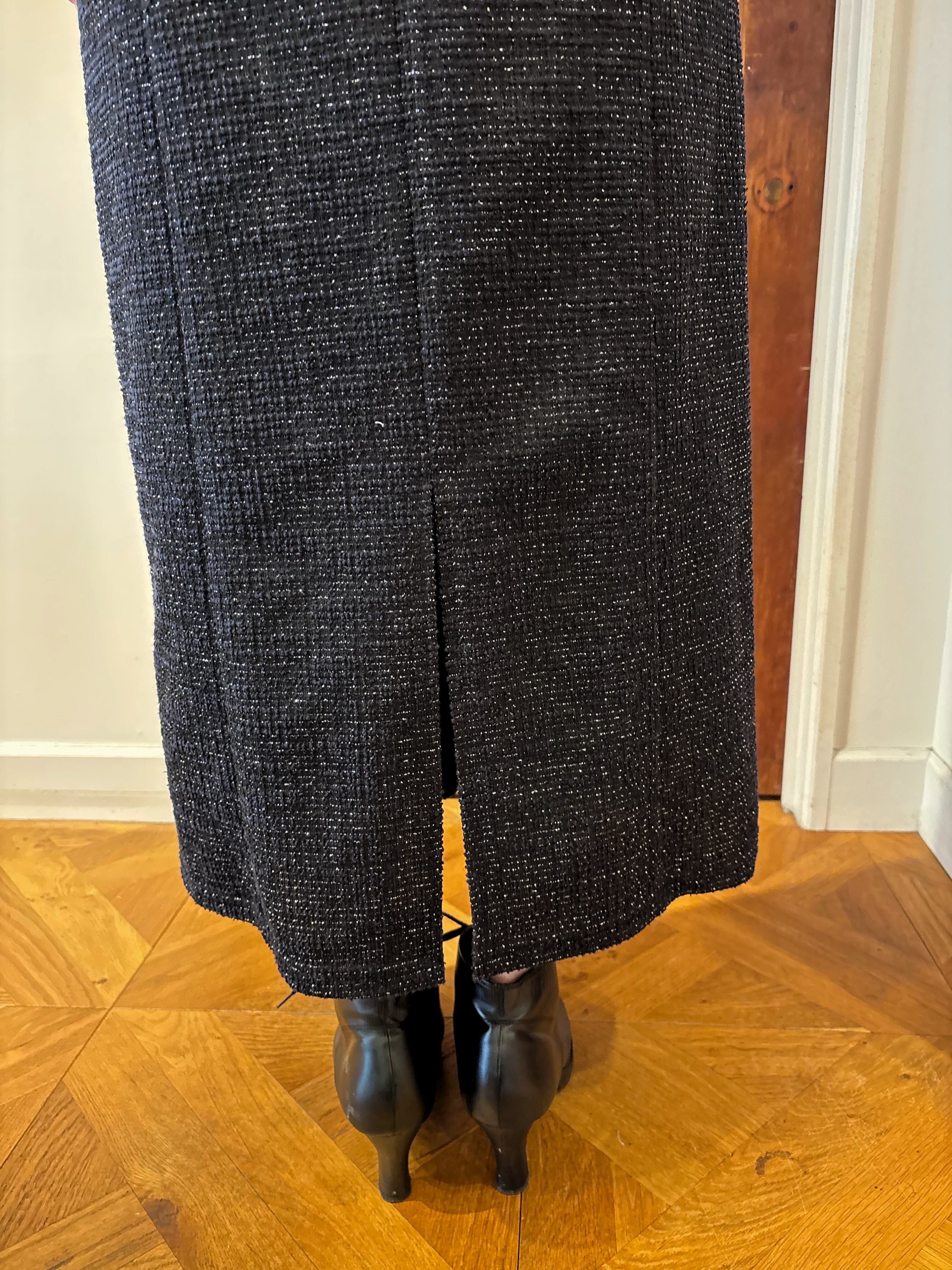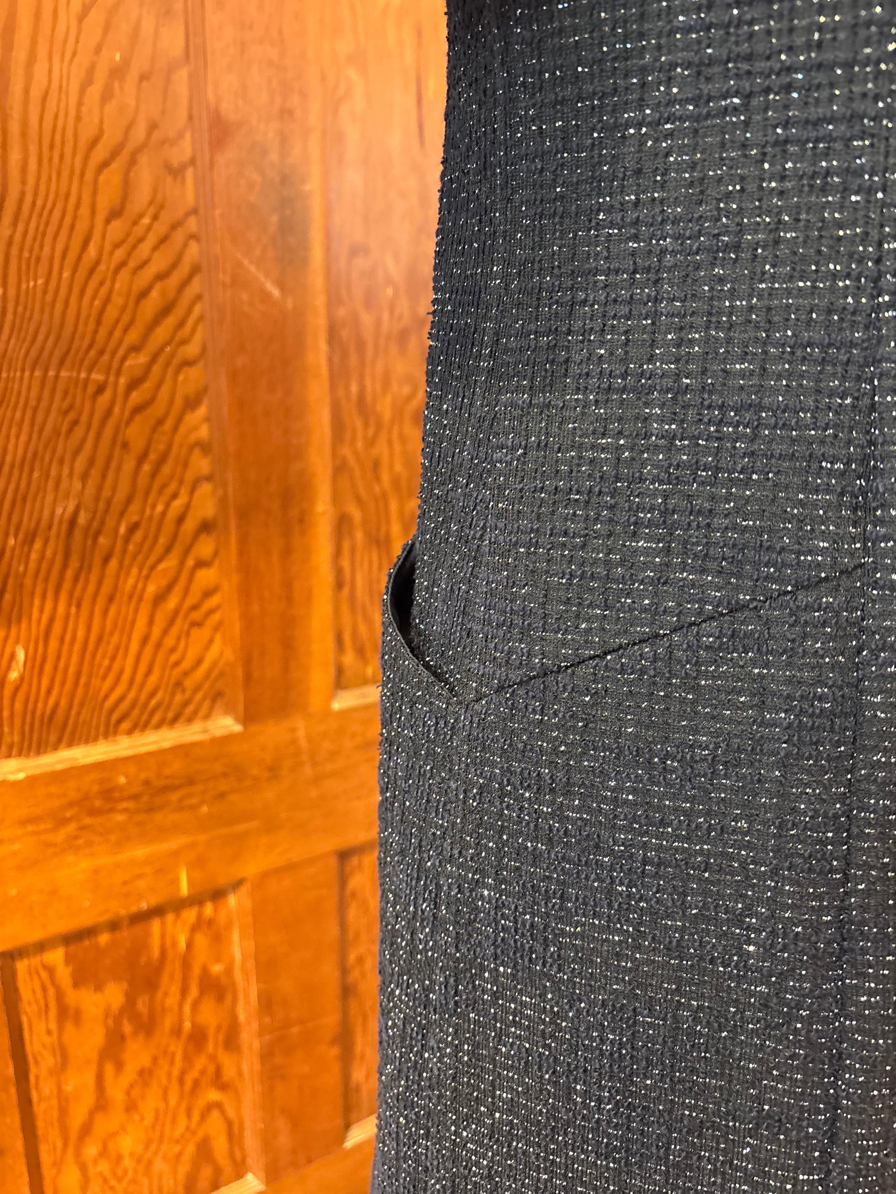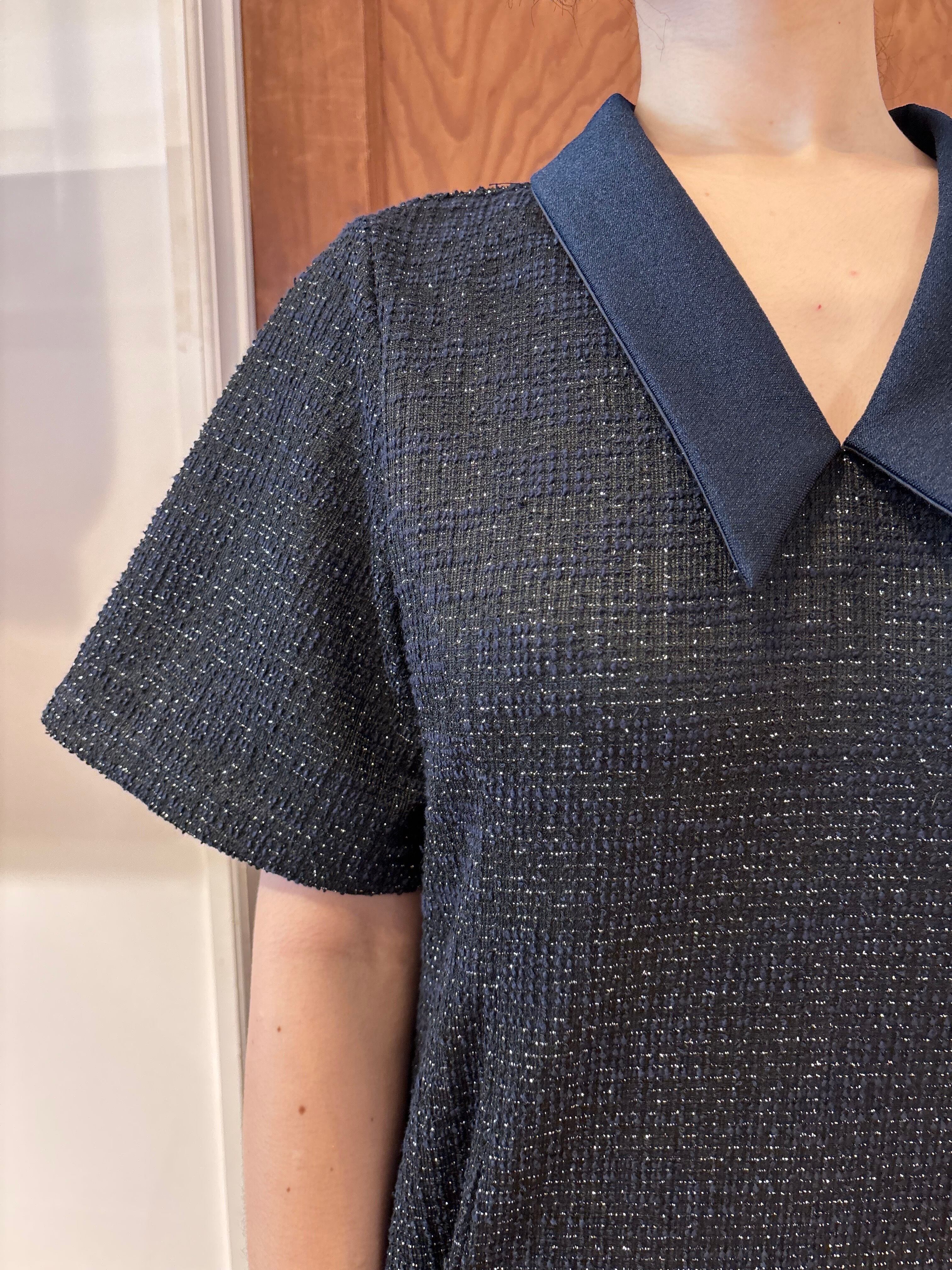 素材には、ほのかにラメを織り込んだツイード調のカットソーを使用。表情のある質感が、クラシカルな雰囲気にさりげない華やかさを添え、日常にも特別なシーンにも自然に馴染みます。