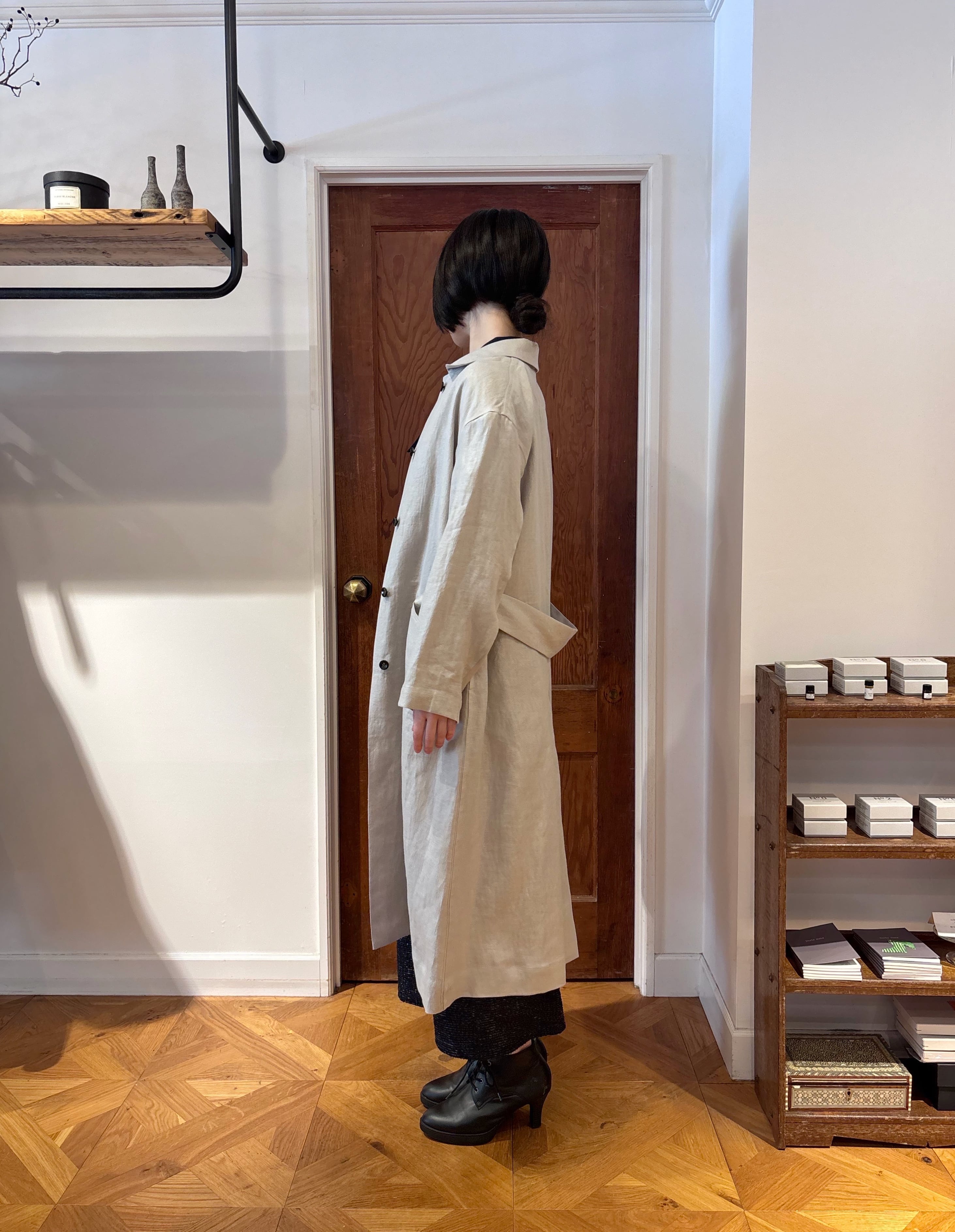 そんな大人の余裕を感じさせる、フレンチリネン100%のステンカラーコートです。