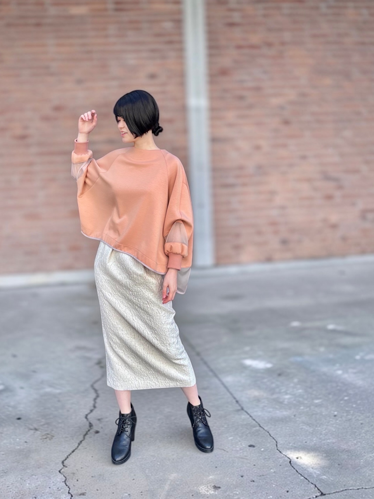 ブラウスにヒールやショートブーツを合わせれば、通勤や会食など、きれいめなシーンにも自然になじみます。