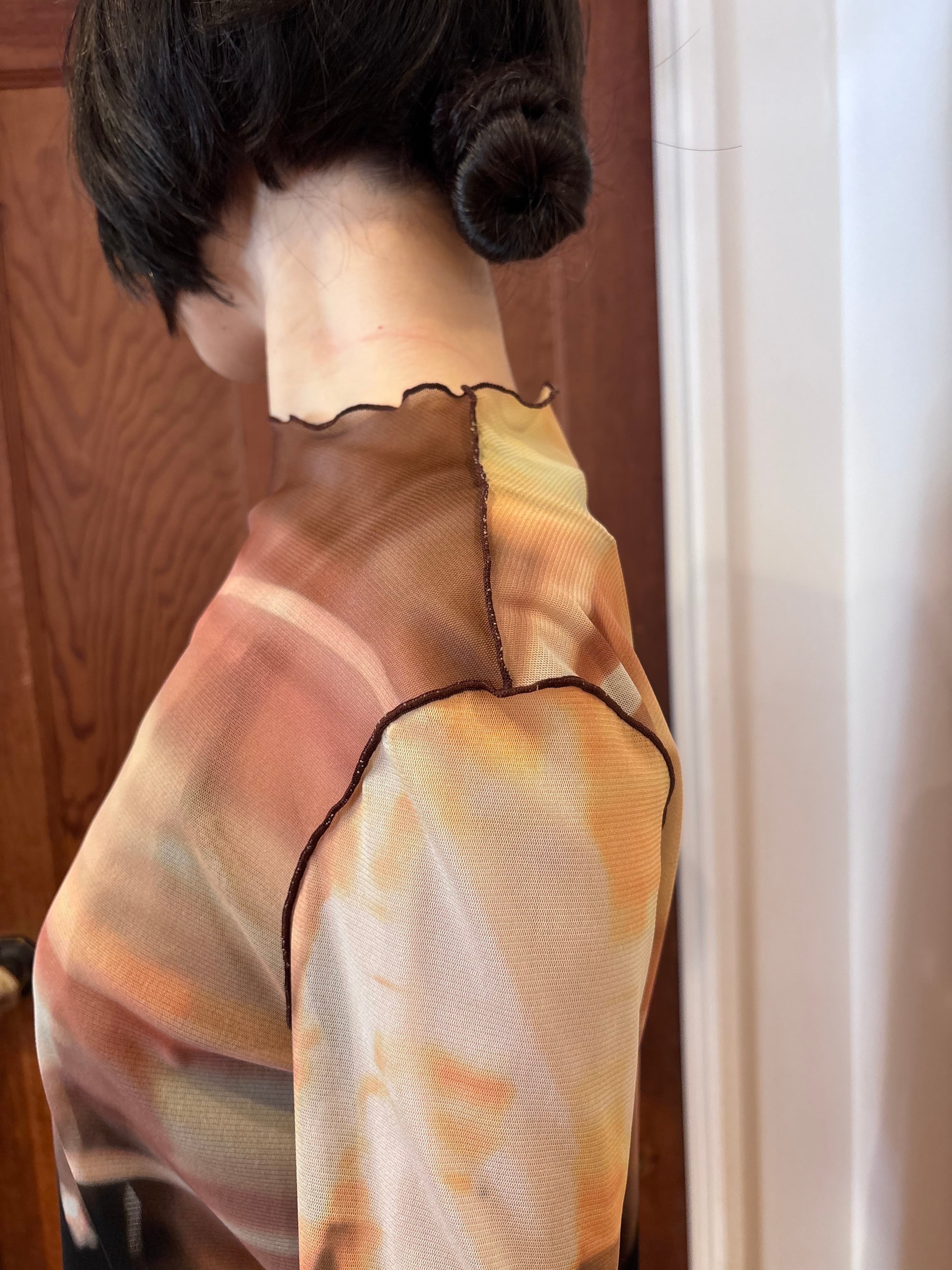 Made from a delicate power mesh with a subtle sheerness, the fabric sits softly against the skin while allowing the nuances of the print to come through with lightness. The result feels refined, modern, and quietly sensual.