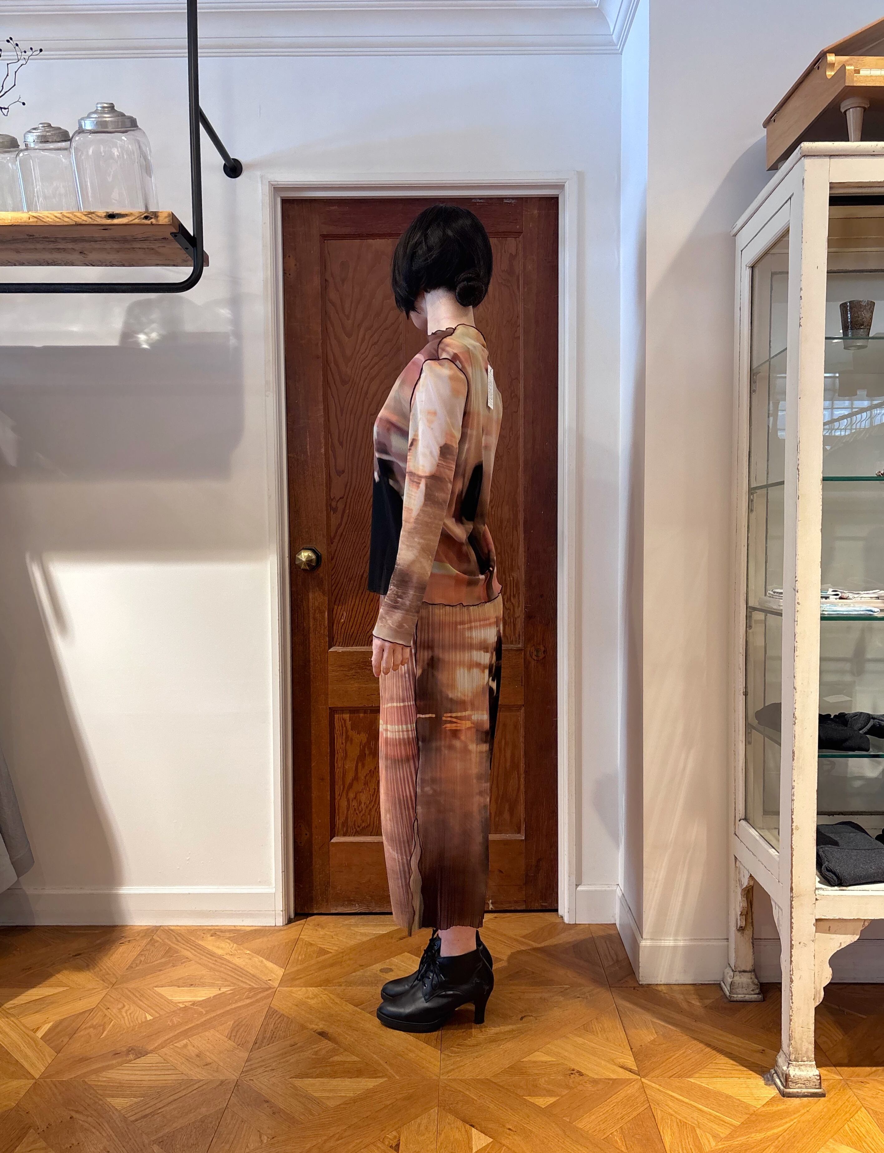 The contrast outseam adds definition to the overall look, sharpening the abstract print with just the right amount of edge. It gives the top a subtle sense of tension, balancing softness with a modern attitude.