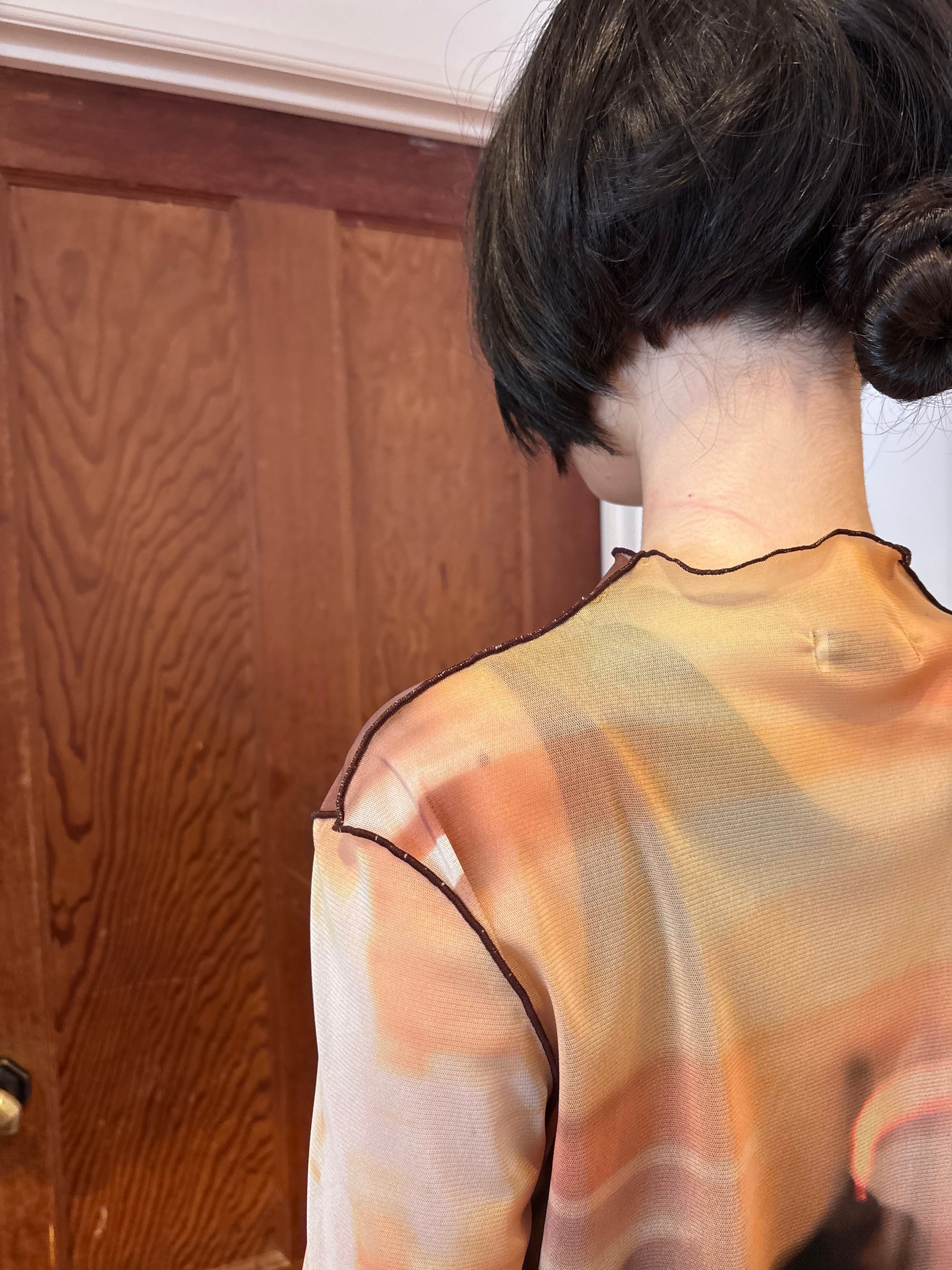 IN-PROCESS アートフォトプリントのパワーネットトップス