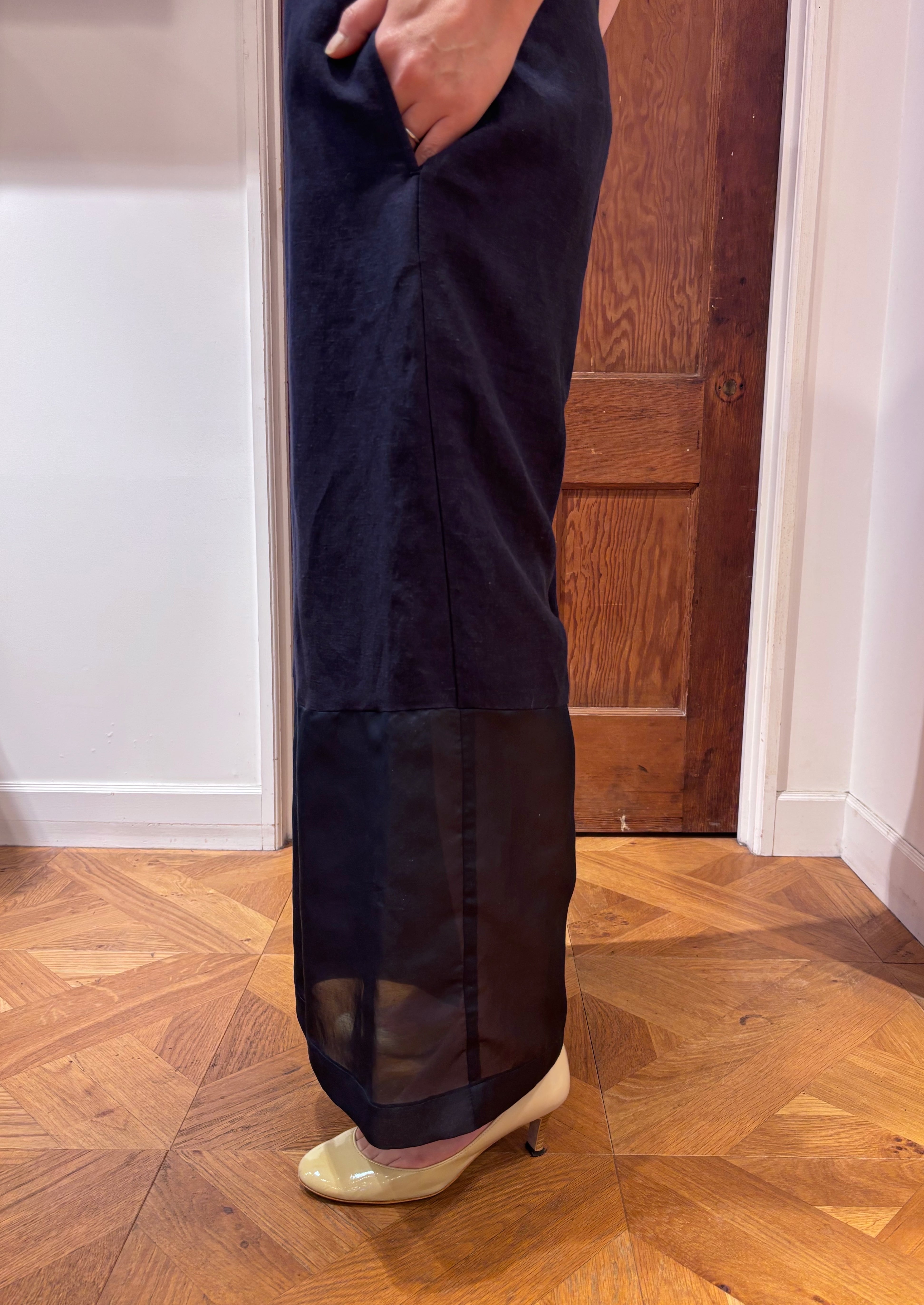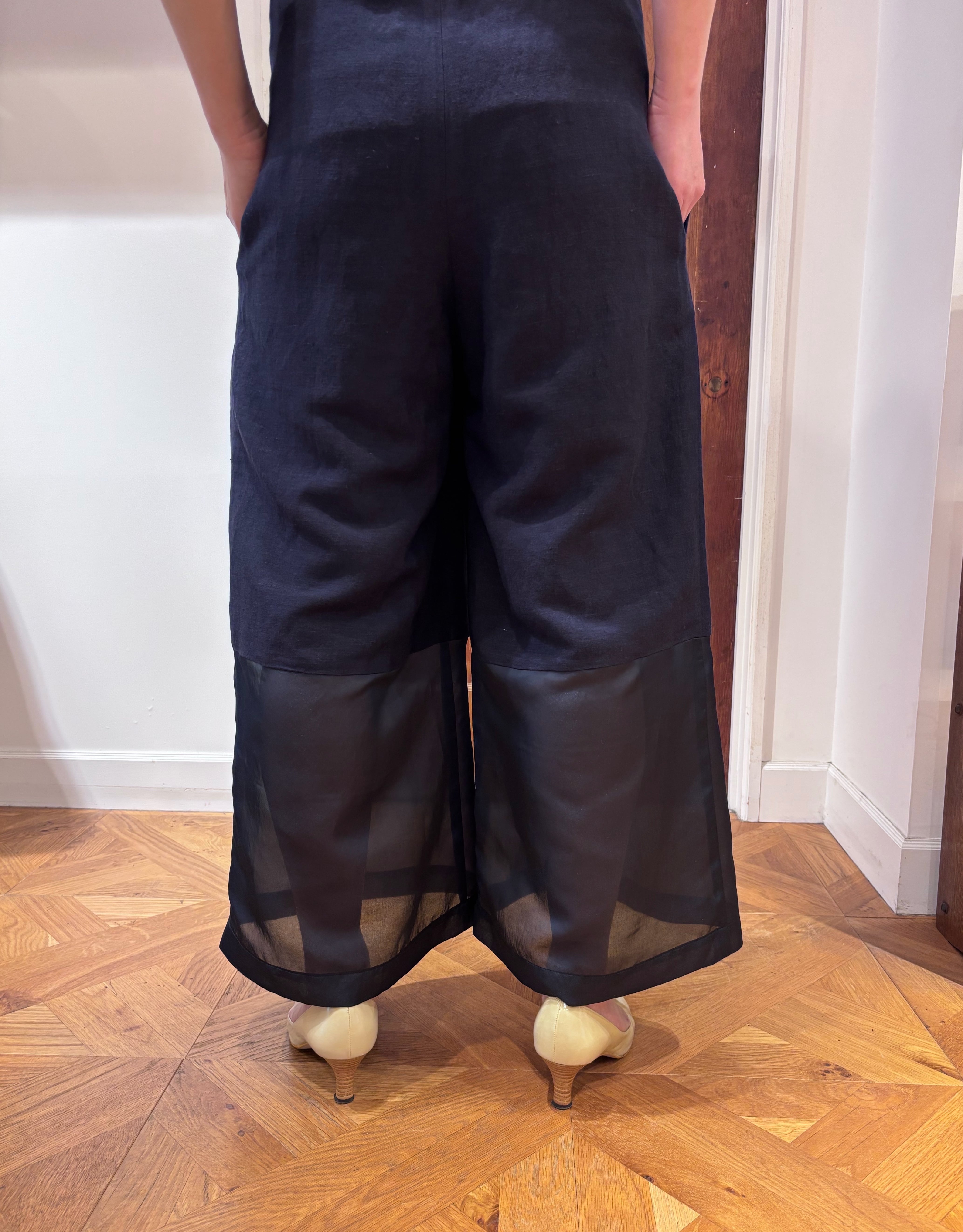 kleiden ナス紺が映える、透け感ヘムの洗練サロペット