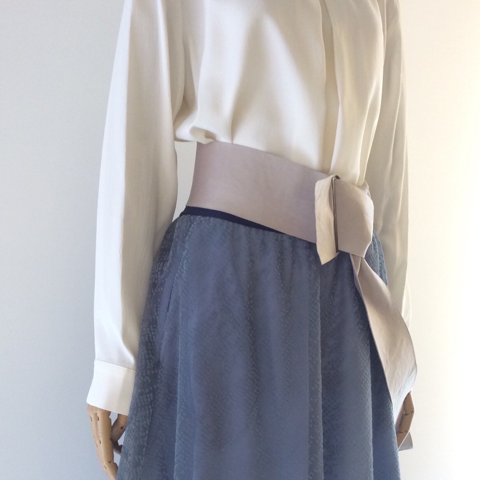 <Design Detail>総丈約92㎝のマキシ丈スカート。両サイドにはポケットも付いています。シワを気にせずお使い頂けます。程よく入っているギャザーと独特な生地により動いた時、日に当たった時に素敵に映えます。