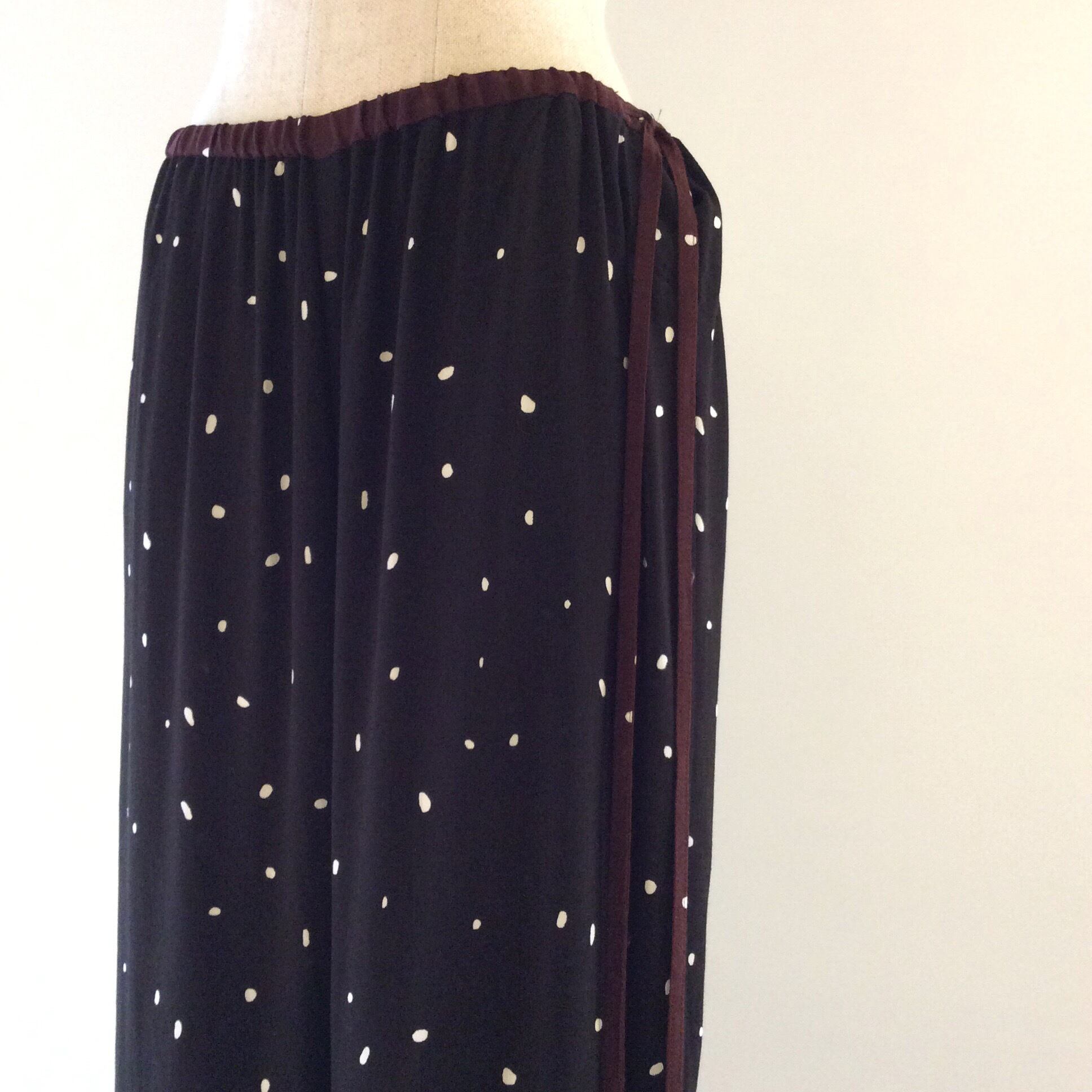 紐と反対側にの右側には、ポケットも付いています。裾にかけて少しだけテーパード(細く)されています。長めの紐がアクセント。きつく締める場合は、リボン結びなどせず、2重結びにして垂らしておくほうが素敵。