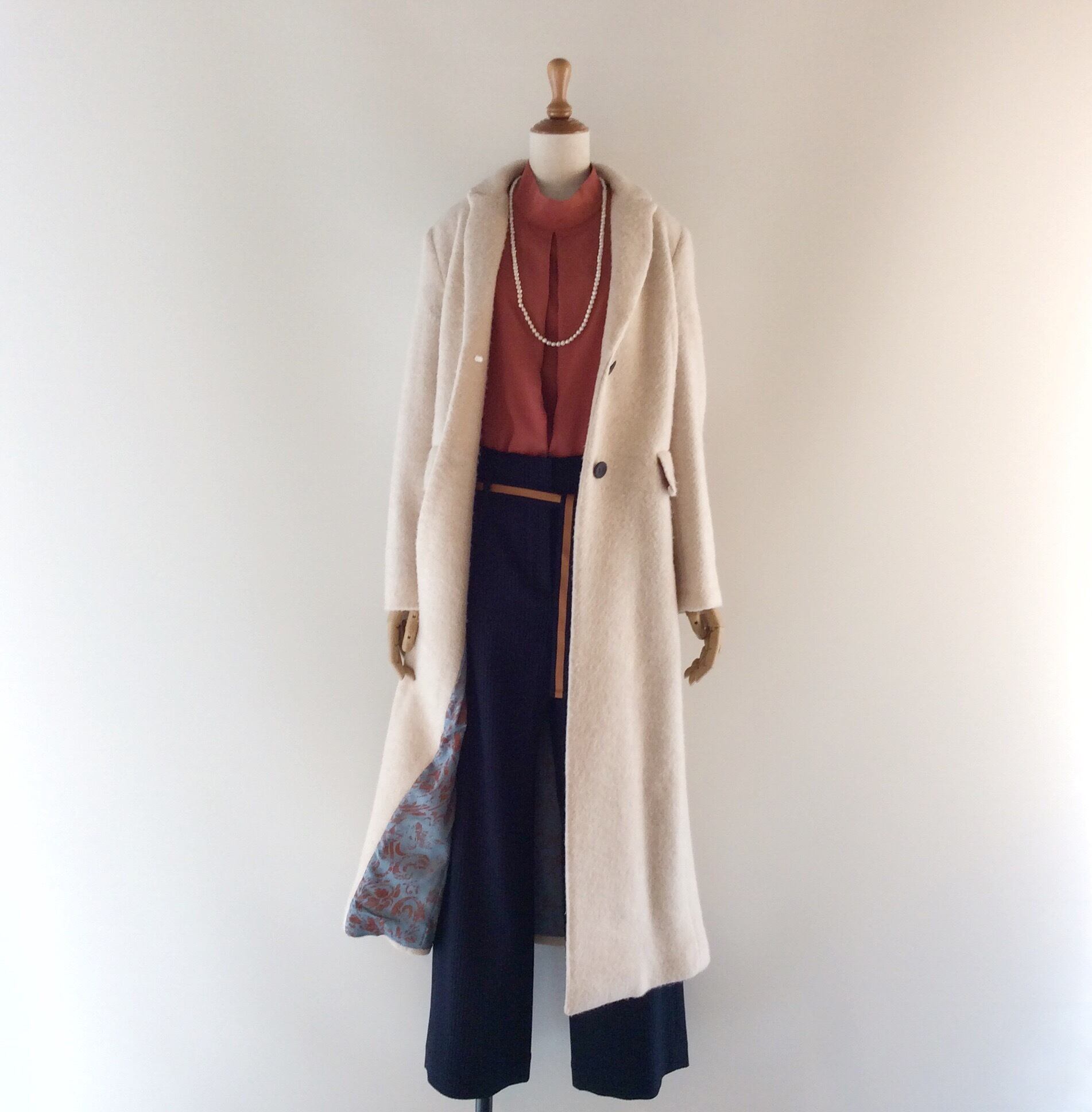<Coordinate tips> 上に着るジャケットや羽織りは、テイラードとノーカラー、どちらでもOK! ホテルや改まったお席でのインナーブラウスとしても、絶対に恥ずかしくありません。