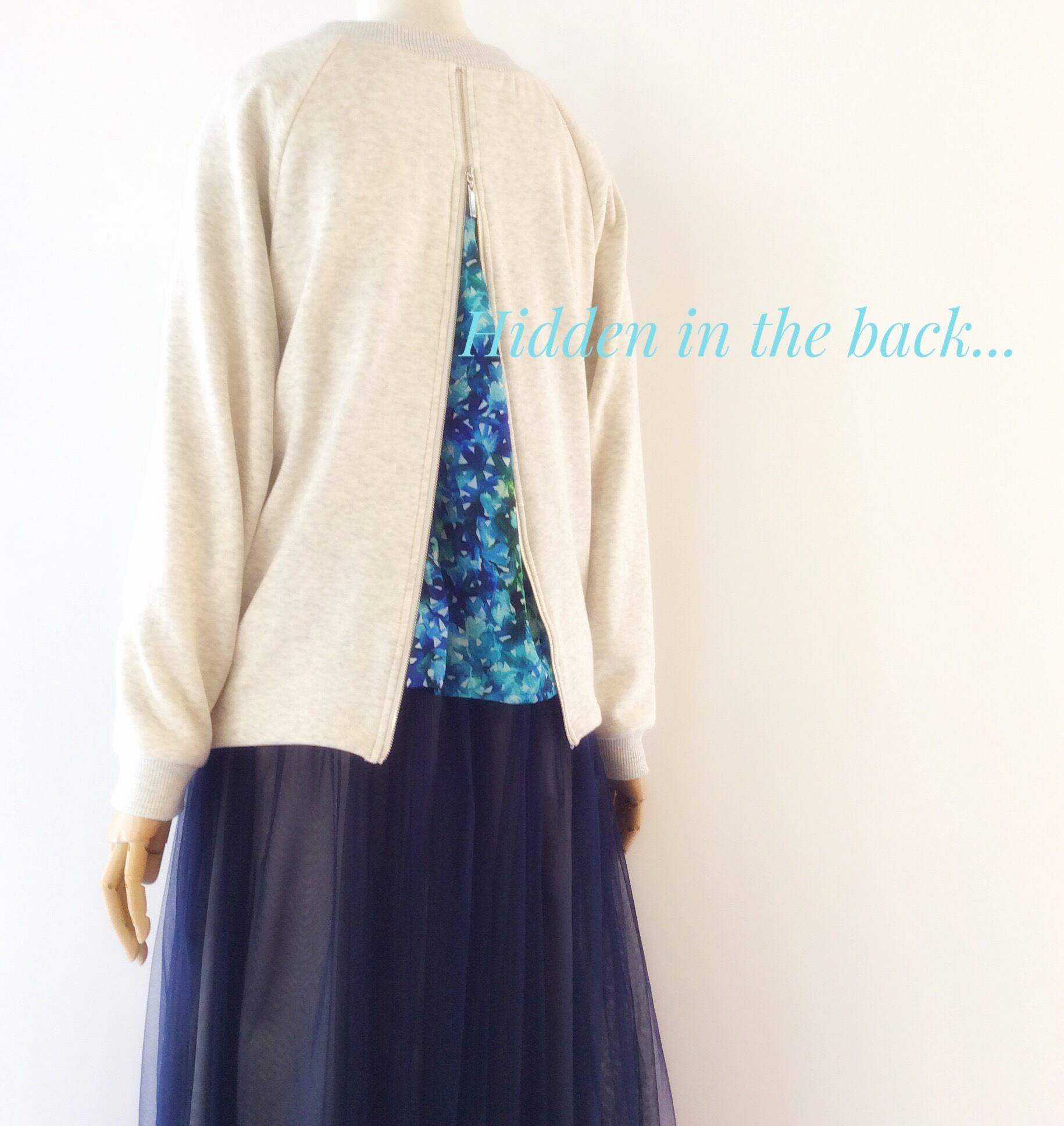<Design Detail> 後ろがのジップをオープンすることで、レイヤードスタイルを楽しめます。
