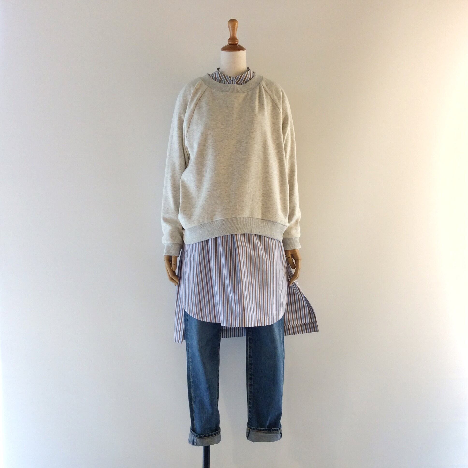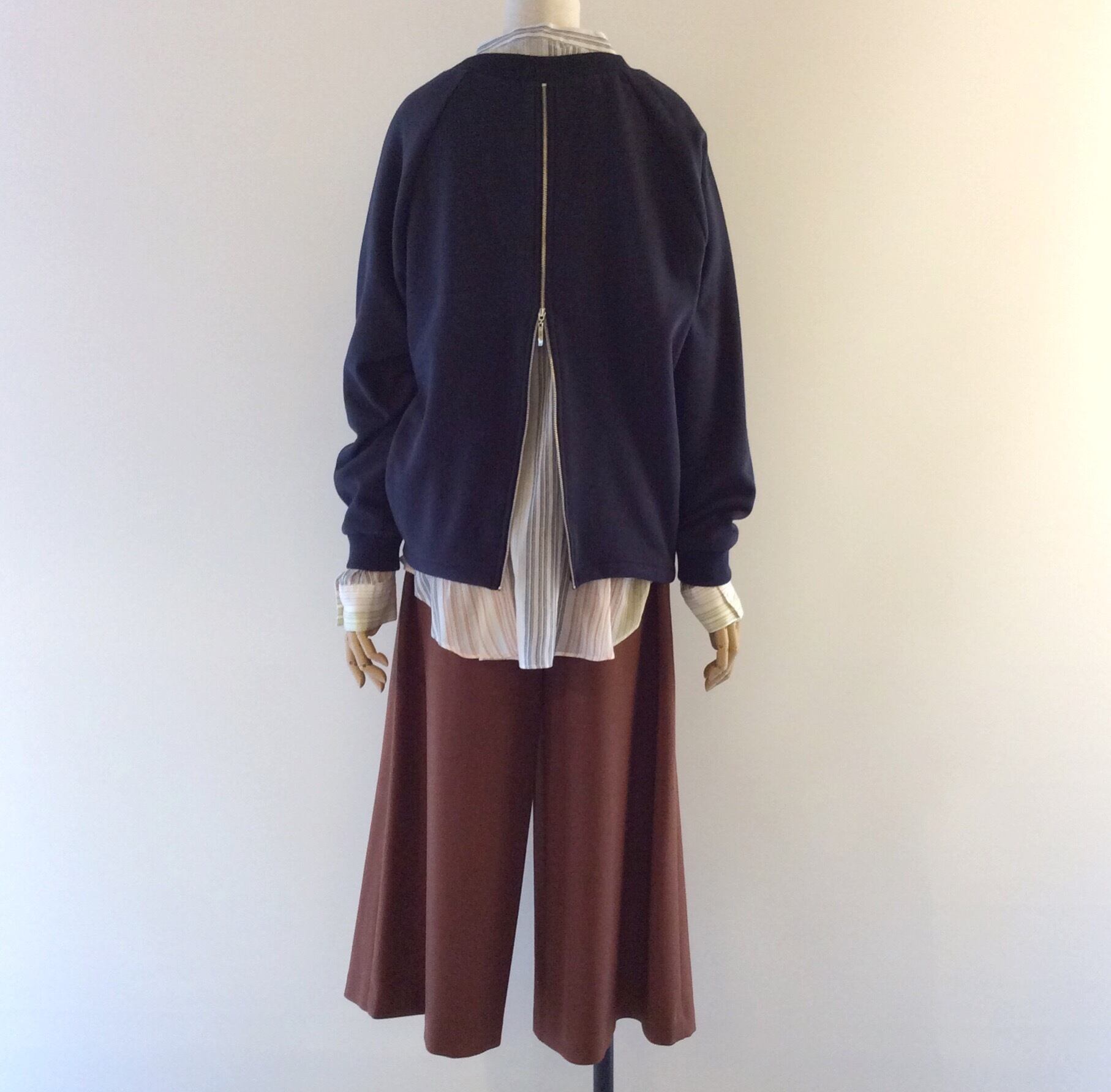 <Coordinate tips>プルオーバーの長さもお尻丈なので、長めのストンとしたワンピースやチュニックブラウスとパンツ等、パーカーのコーデ感覚で使いまわして頂けると思います。
