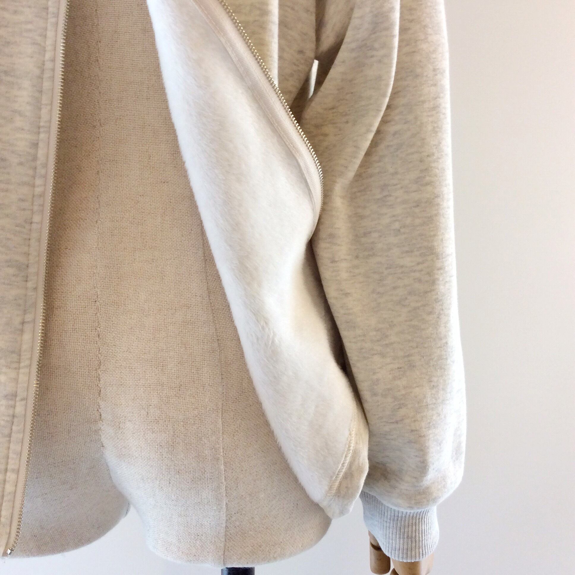 綿ベースですが裏はボワ素材なので、ブラウスやフィット感のあるハイネックトップとレイヤードして、寒い時期からお召しいただけます。10月末~お花見まで、長く着られるプルオーバーです。