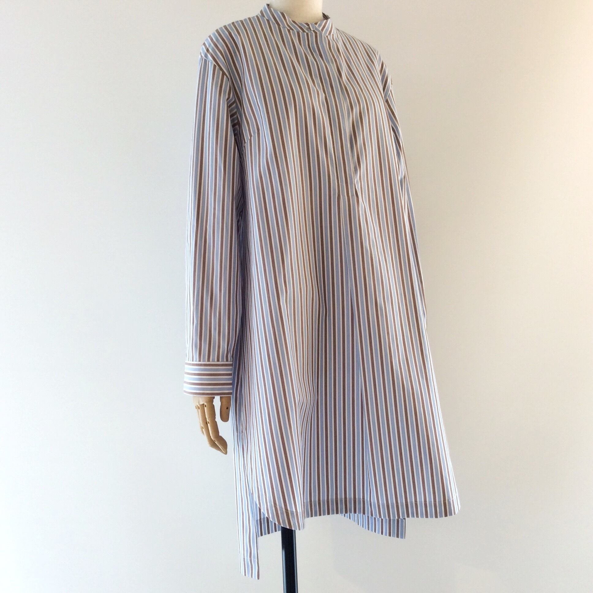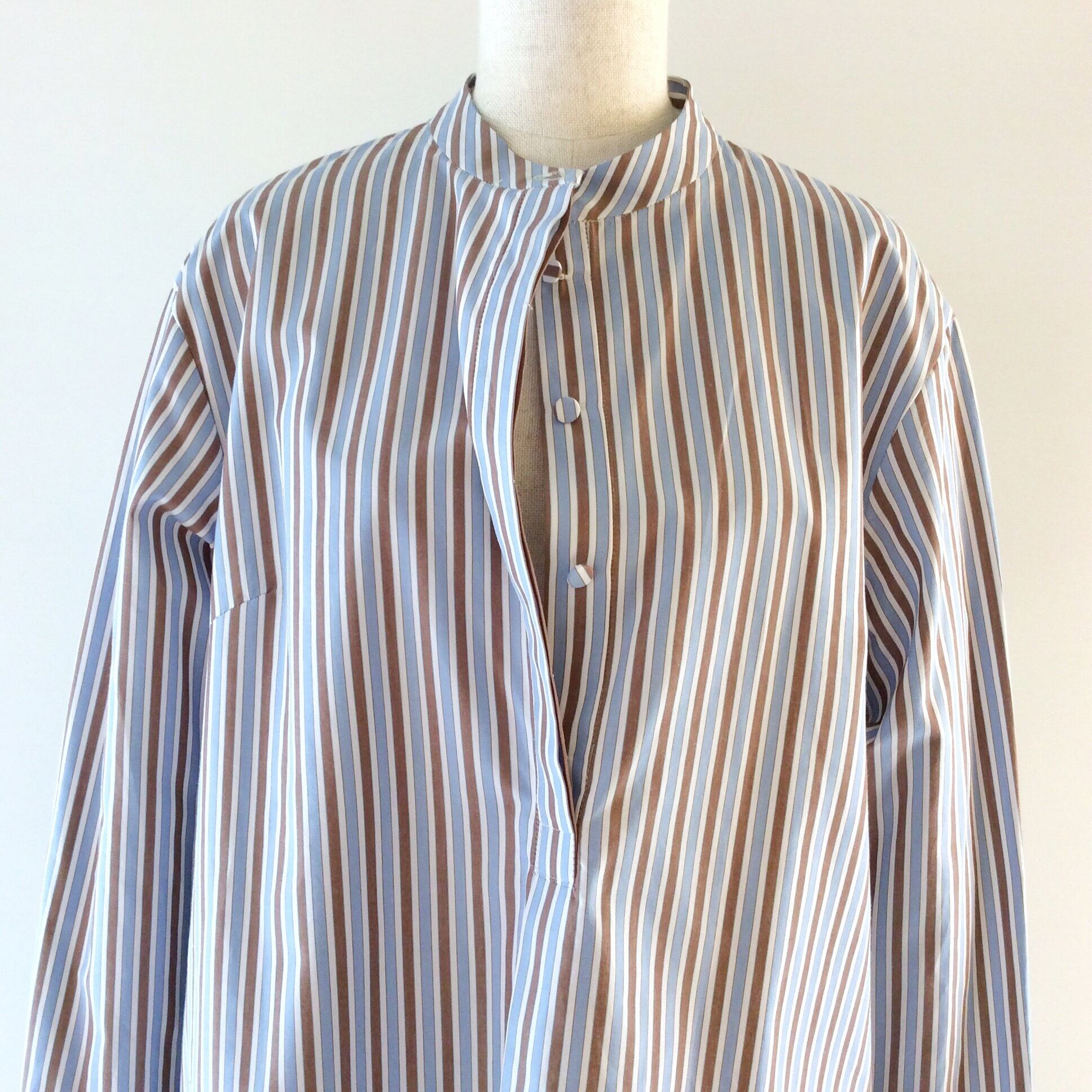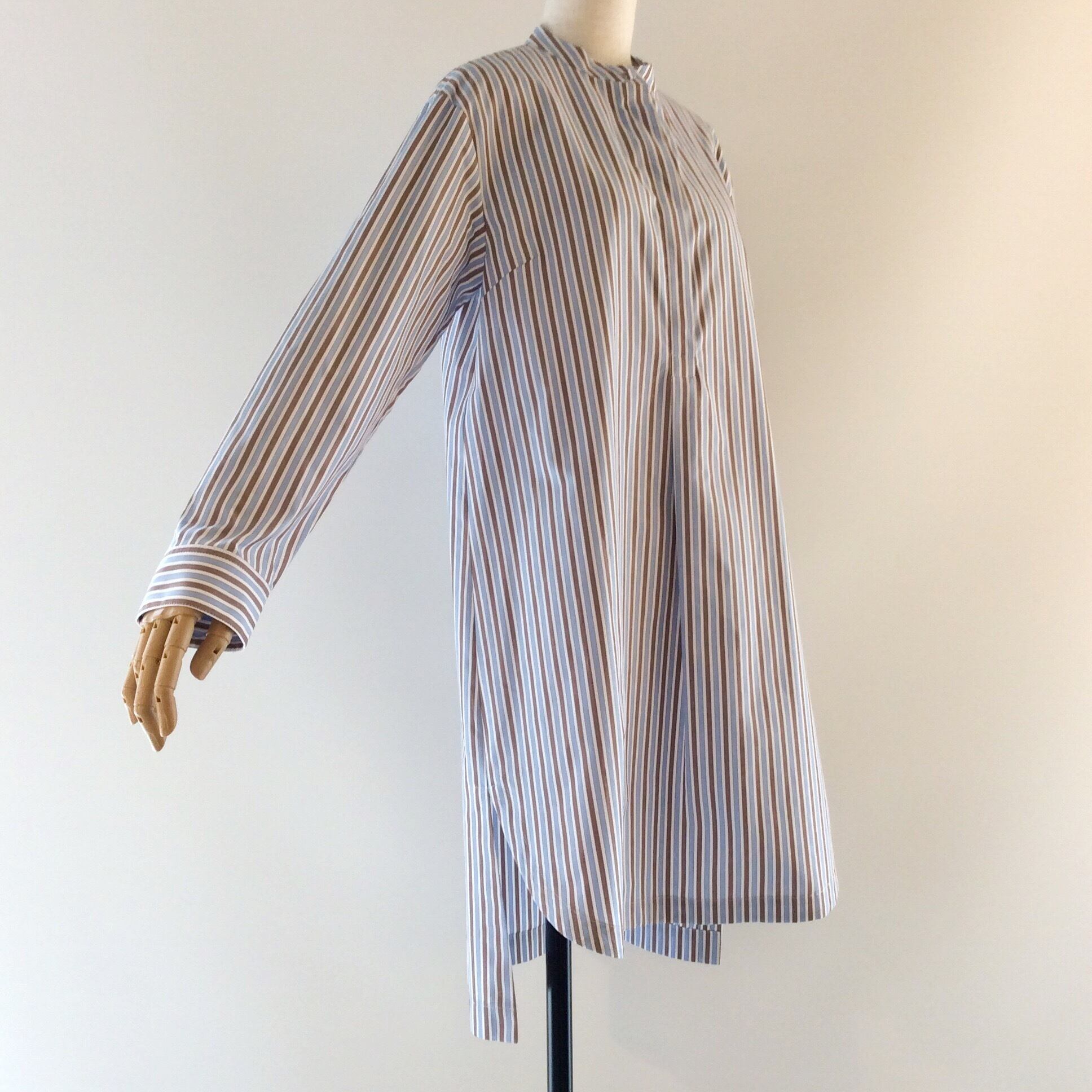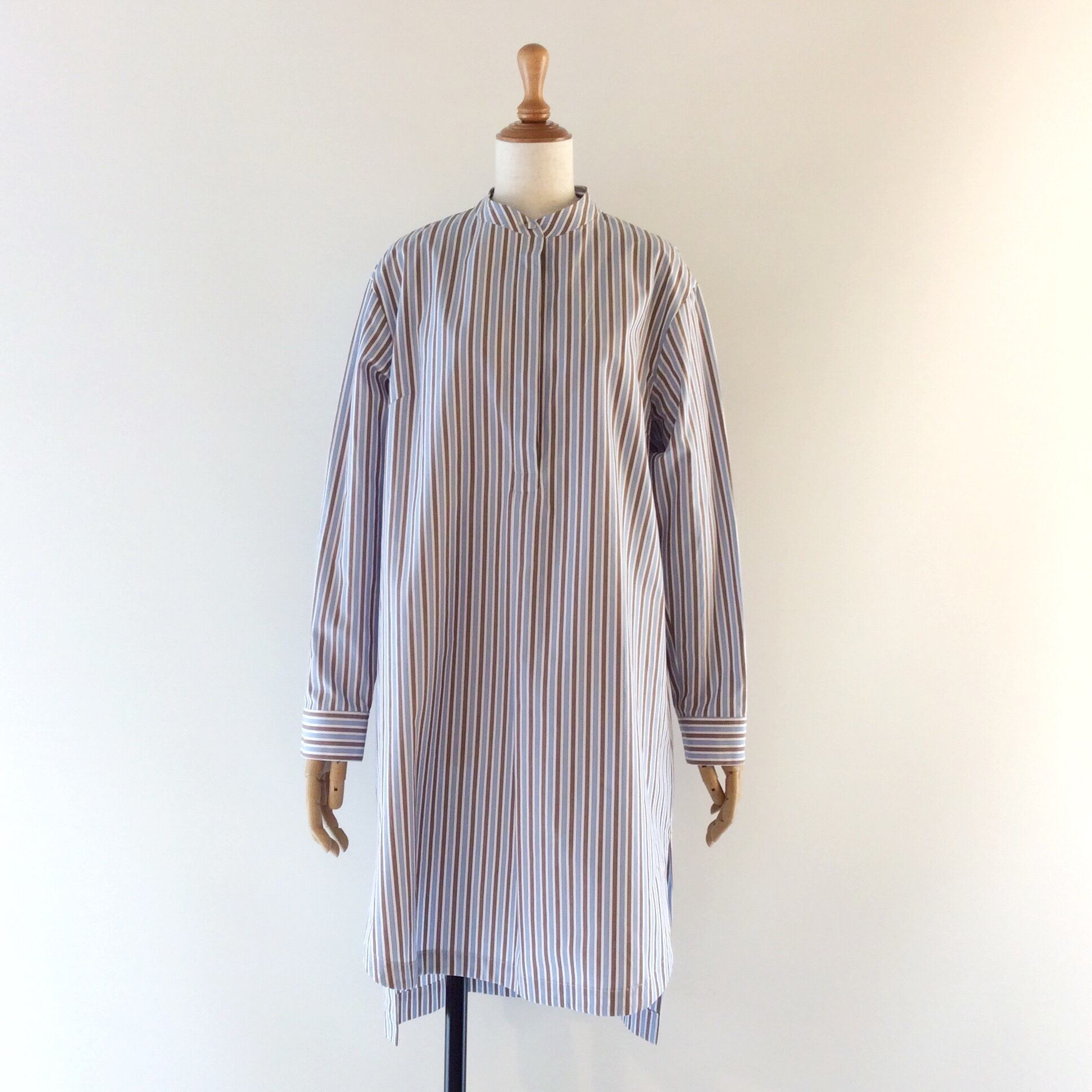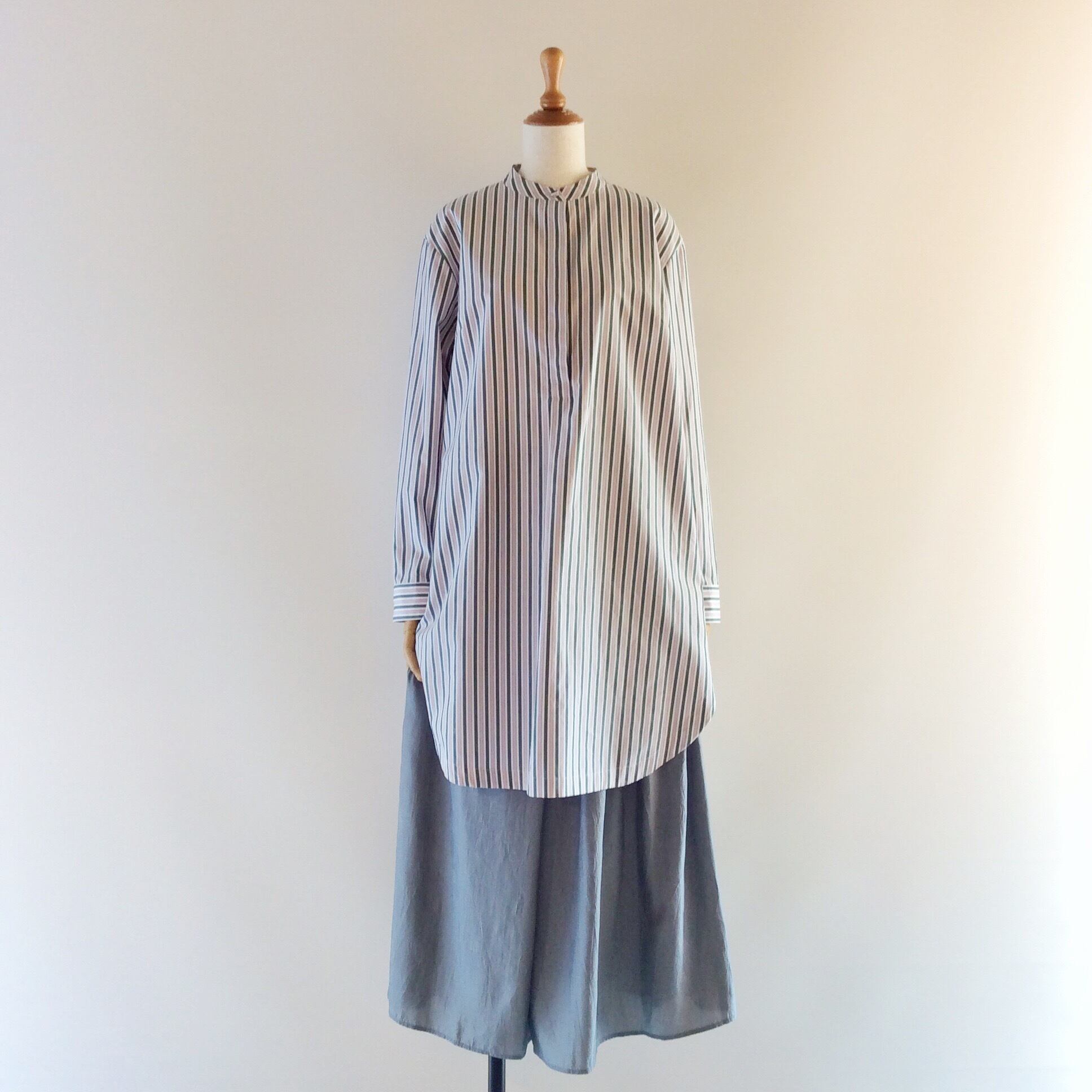 <Design Detail>サイドにスリットが入ったチュニックブラウス。首元は少し立ちあがった
