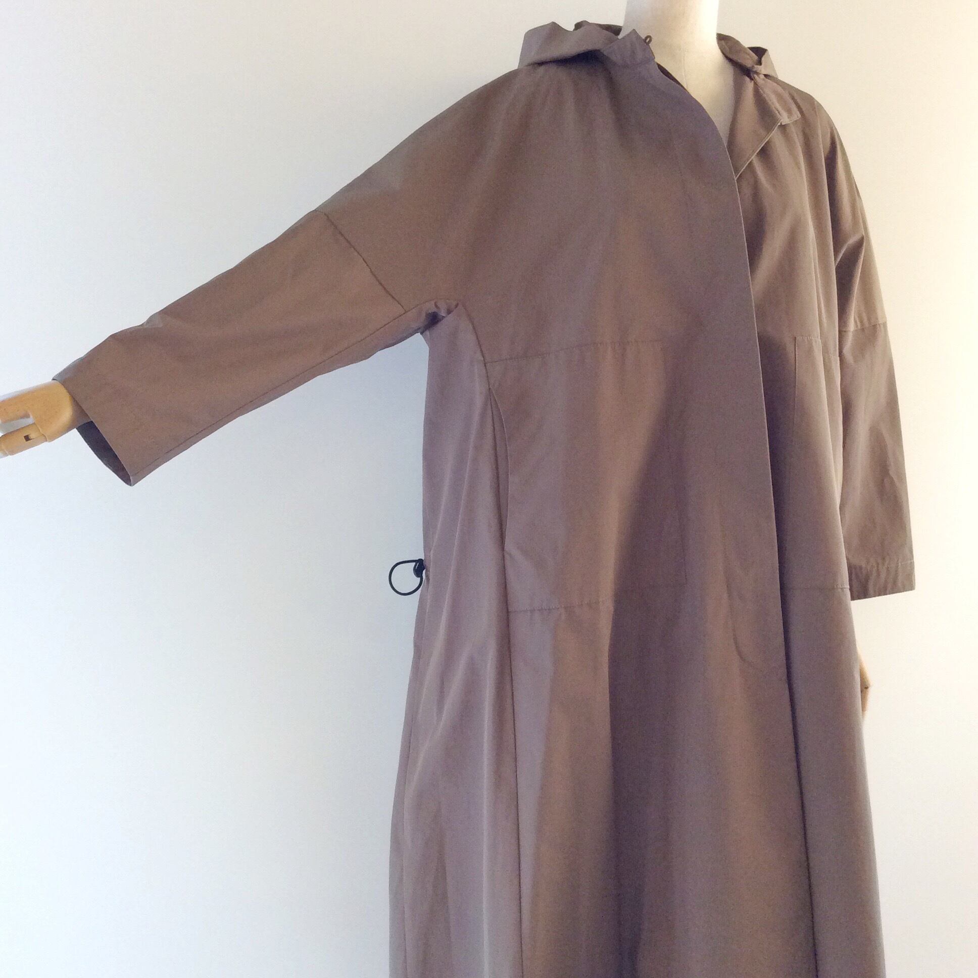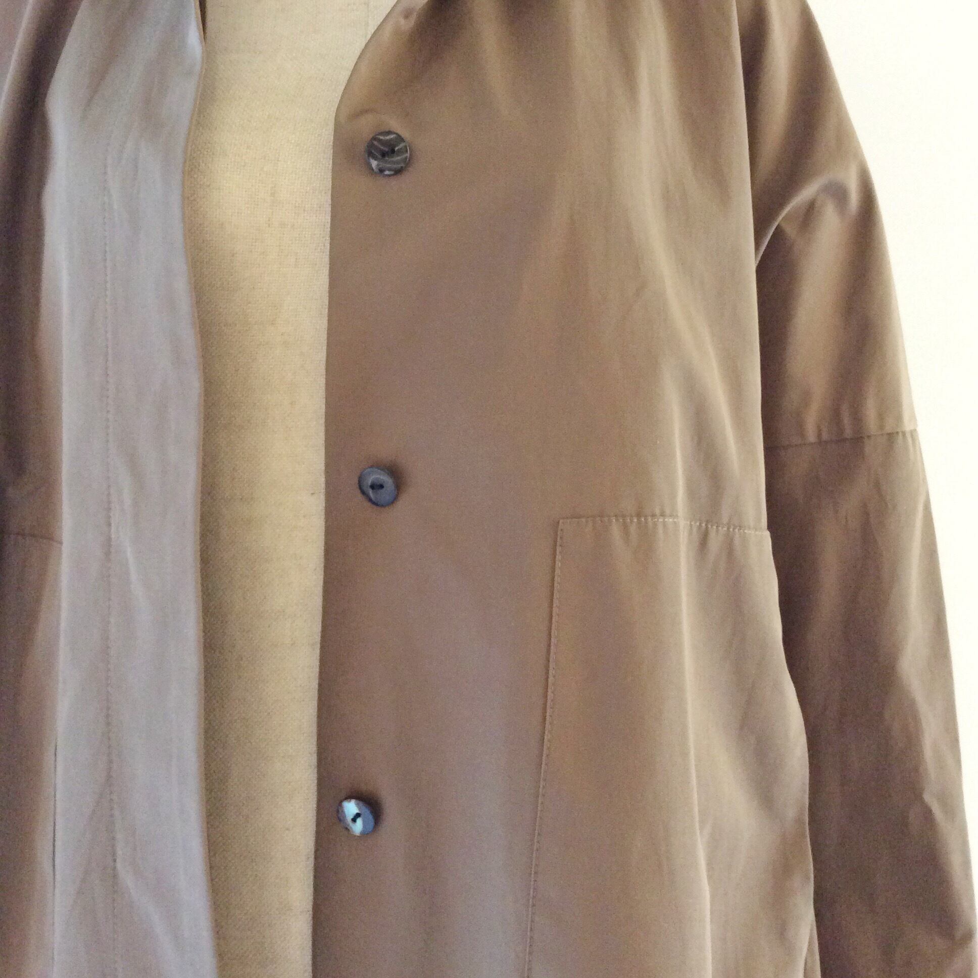 バーバリー等のきちんとしたトレンチよりは重厚感は無いけれど、ずっと軽いですし、ポリエステルのペラペラ素材のモノよりは、ハリがあって素材に高級感があります。