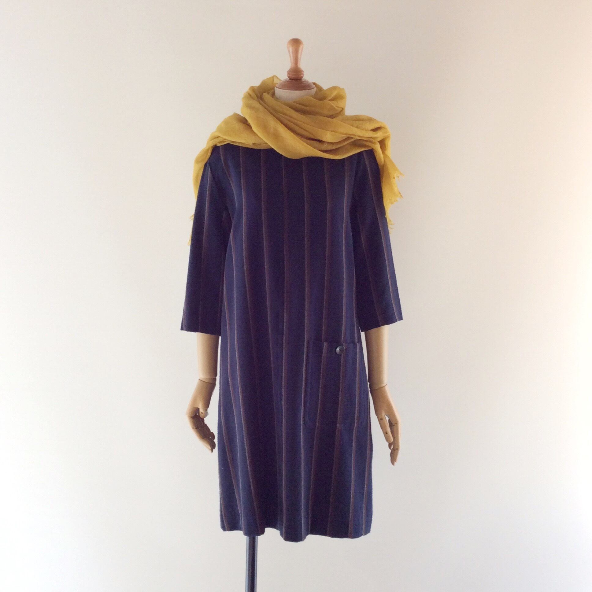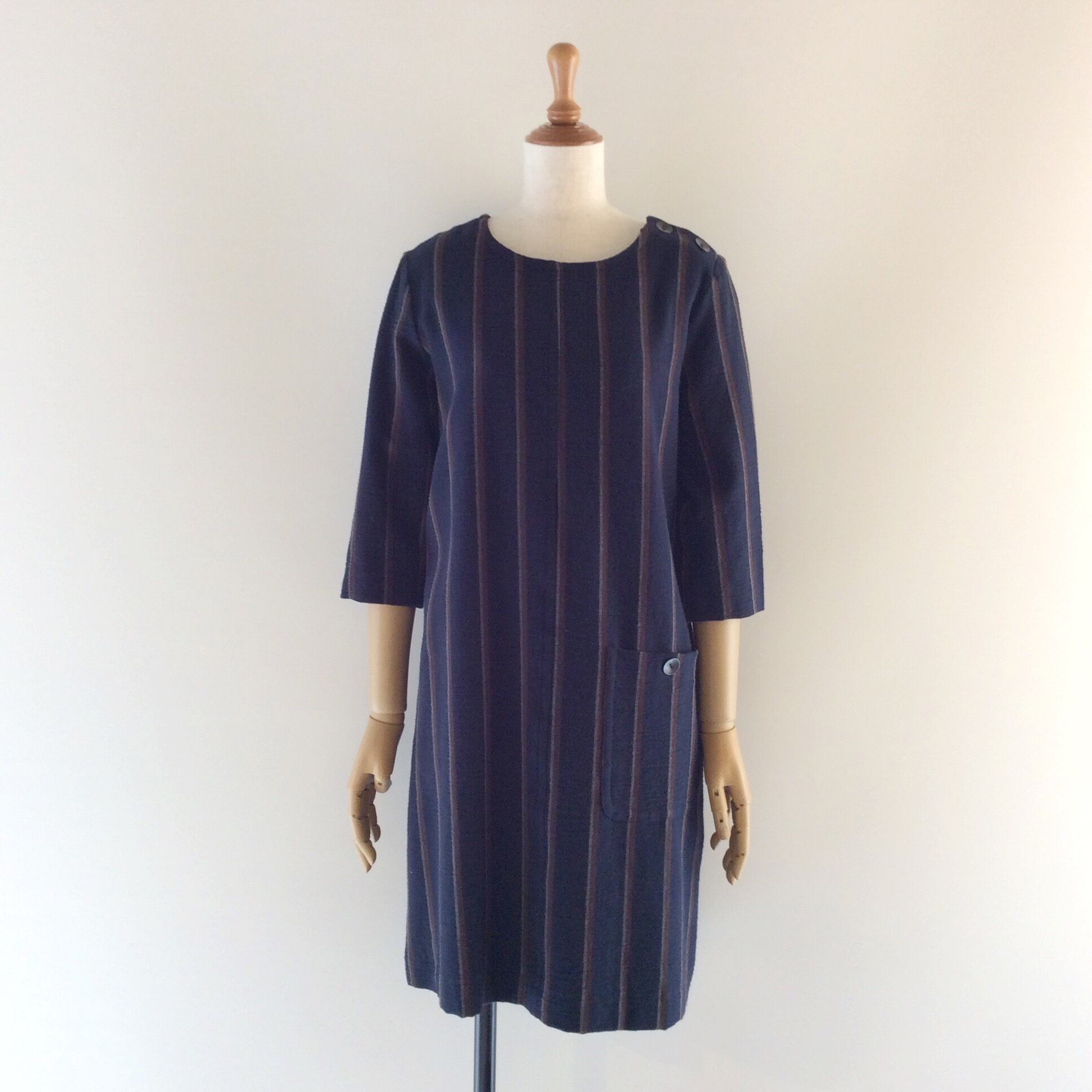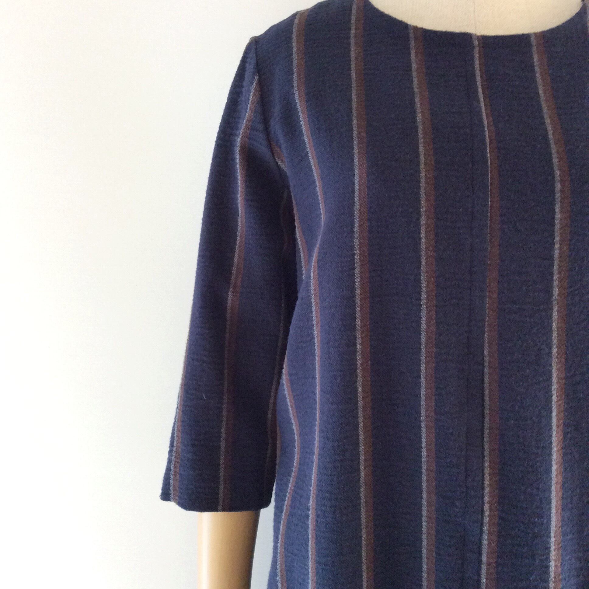 <Colour>Navy stripe。 Purple grey x white。どちらも生地に凸凹の立体感があります。