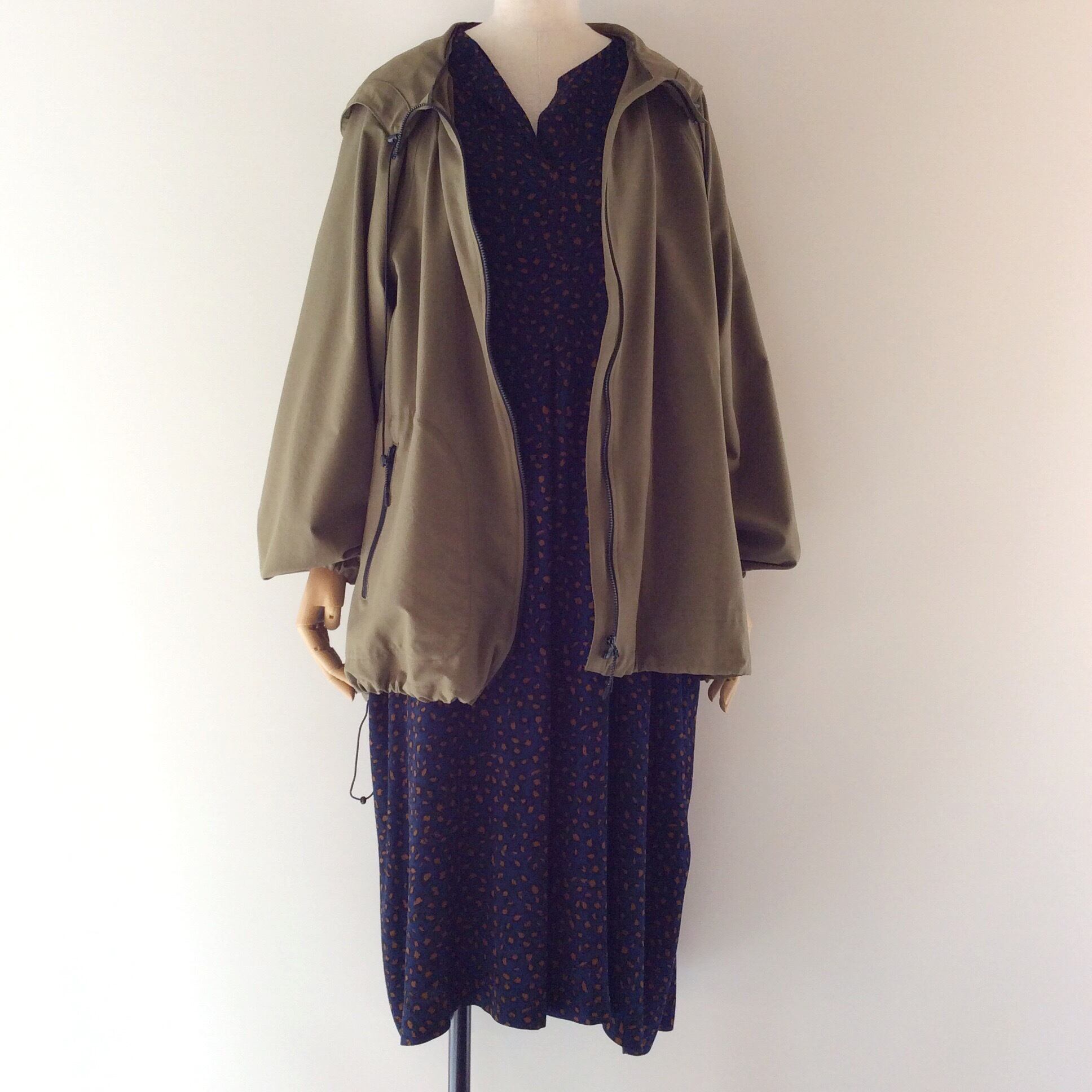 <Coordinate tips> レイヤードする羽織りやセーターは、フィット感のあるものよりワンピースと同じように緩めのものの方が可愛いと思います。ぱふっとした上から落ち感のあるスカートが覗く、ちょっとルーズなイメージ。