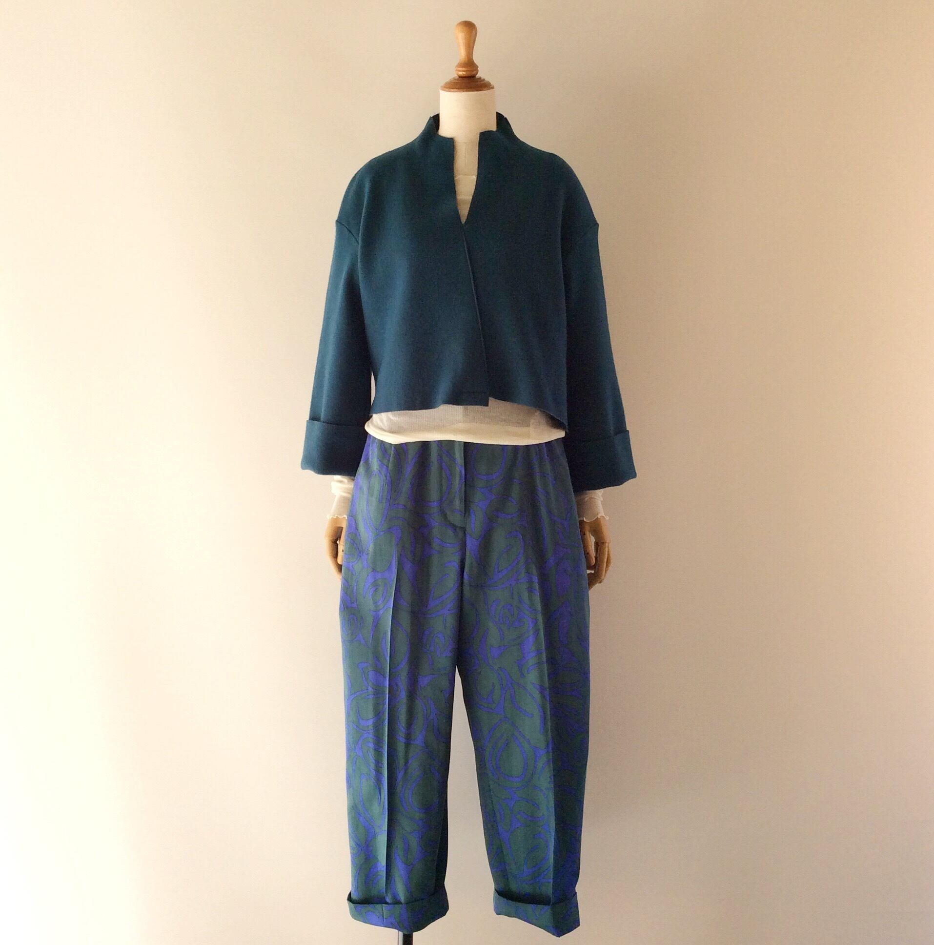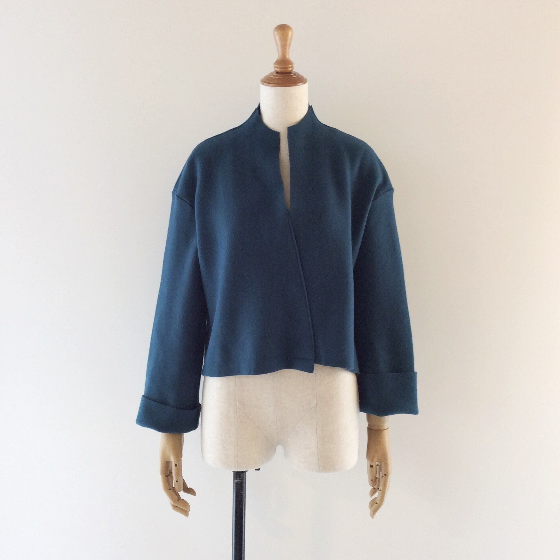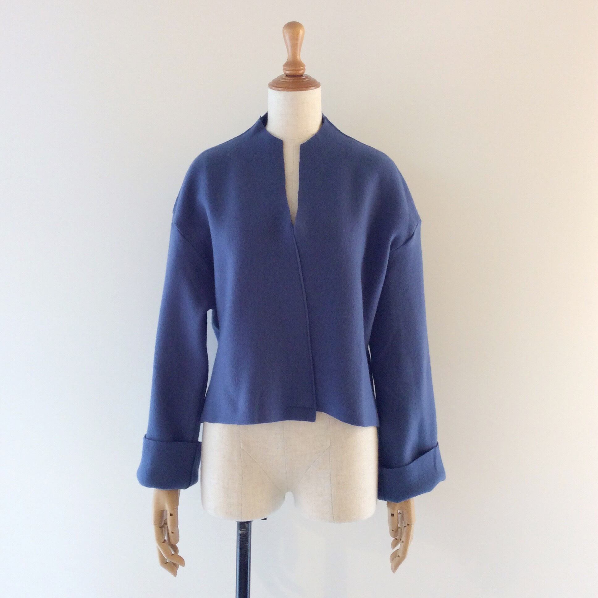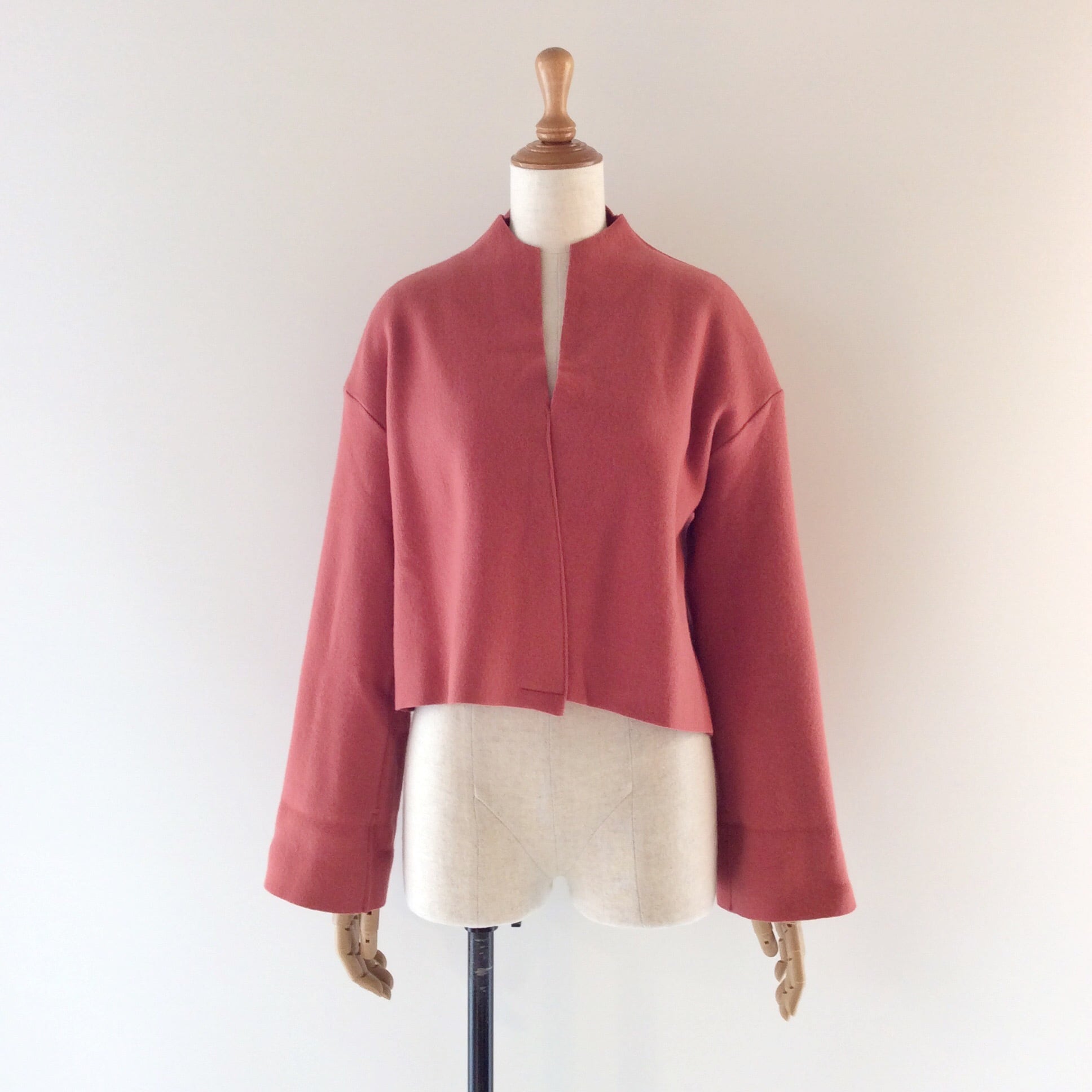 <Coordinate tips> 丈が短めなので、ボトムはスカートやハイウエストのモノ。または、インナーを5㎝くらいまで見せてレイヤードを楽しんで。丈が短めで難易度が高そうですが、丁度良いインナーを見つけてしまえば、お色も形も他には無いオリジナリティ溢れるお洋服です。