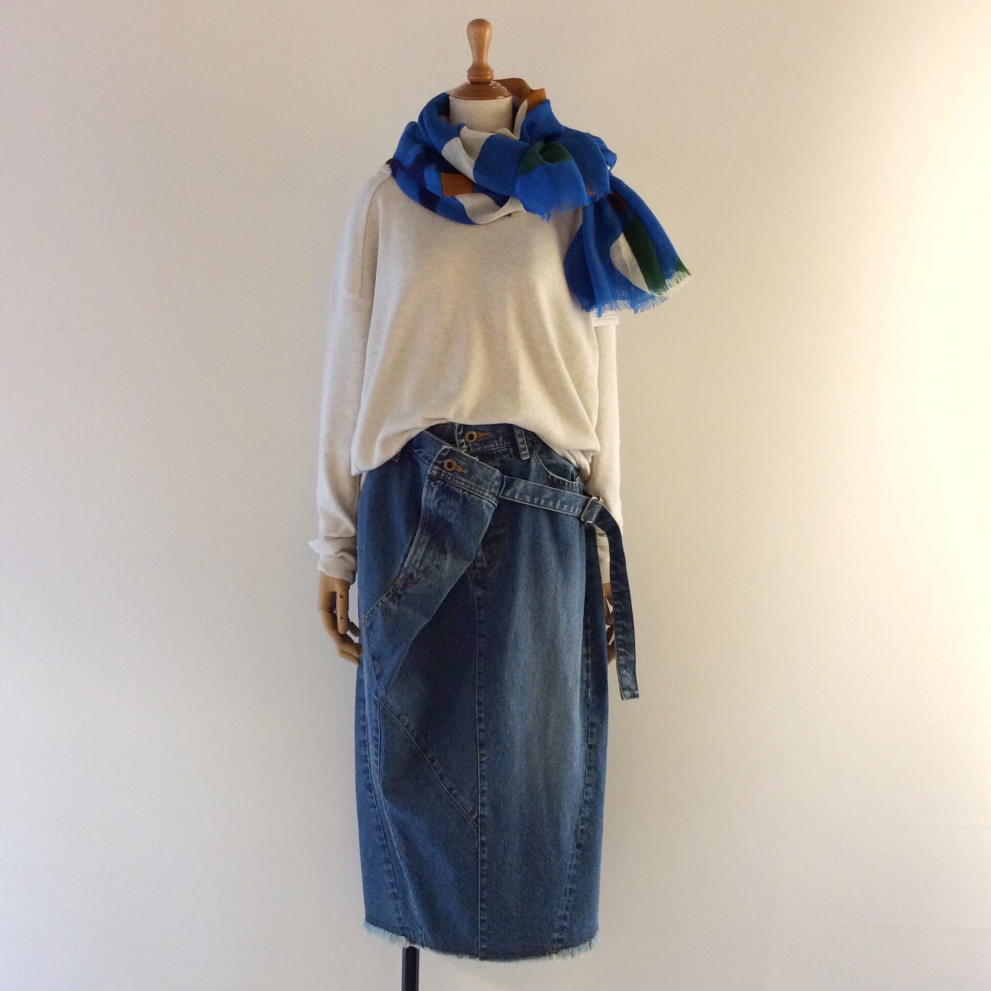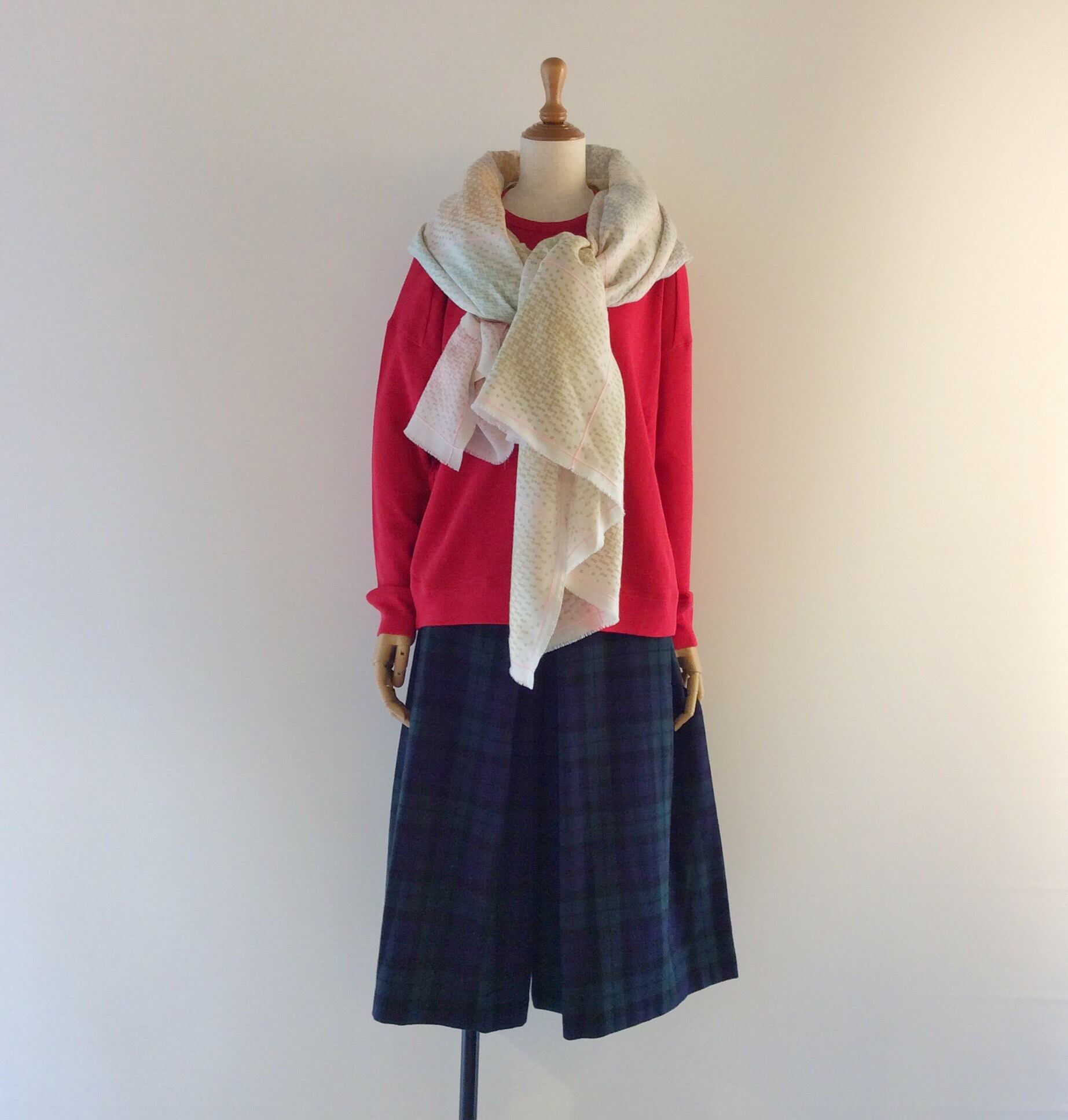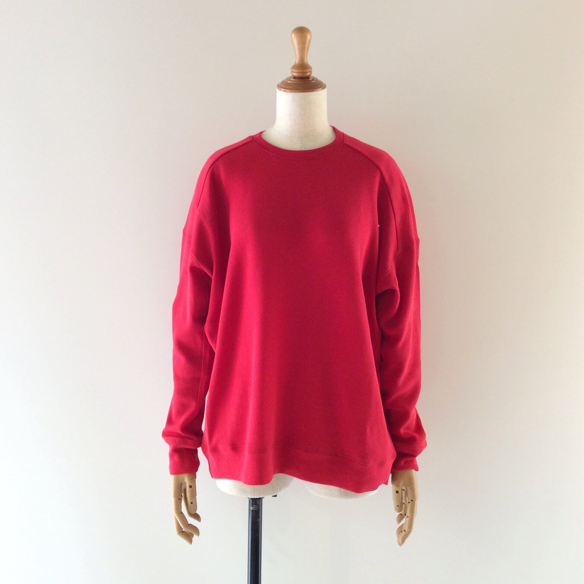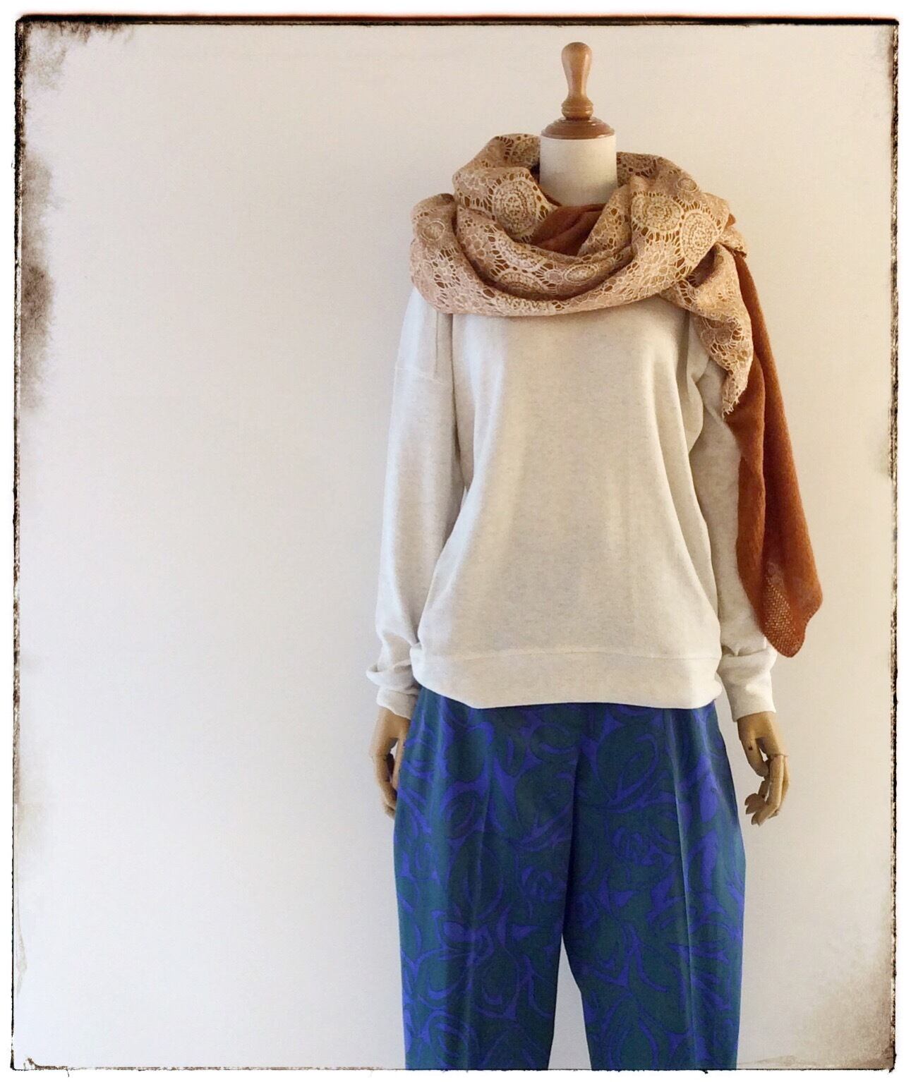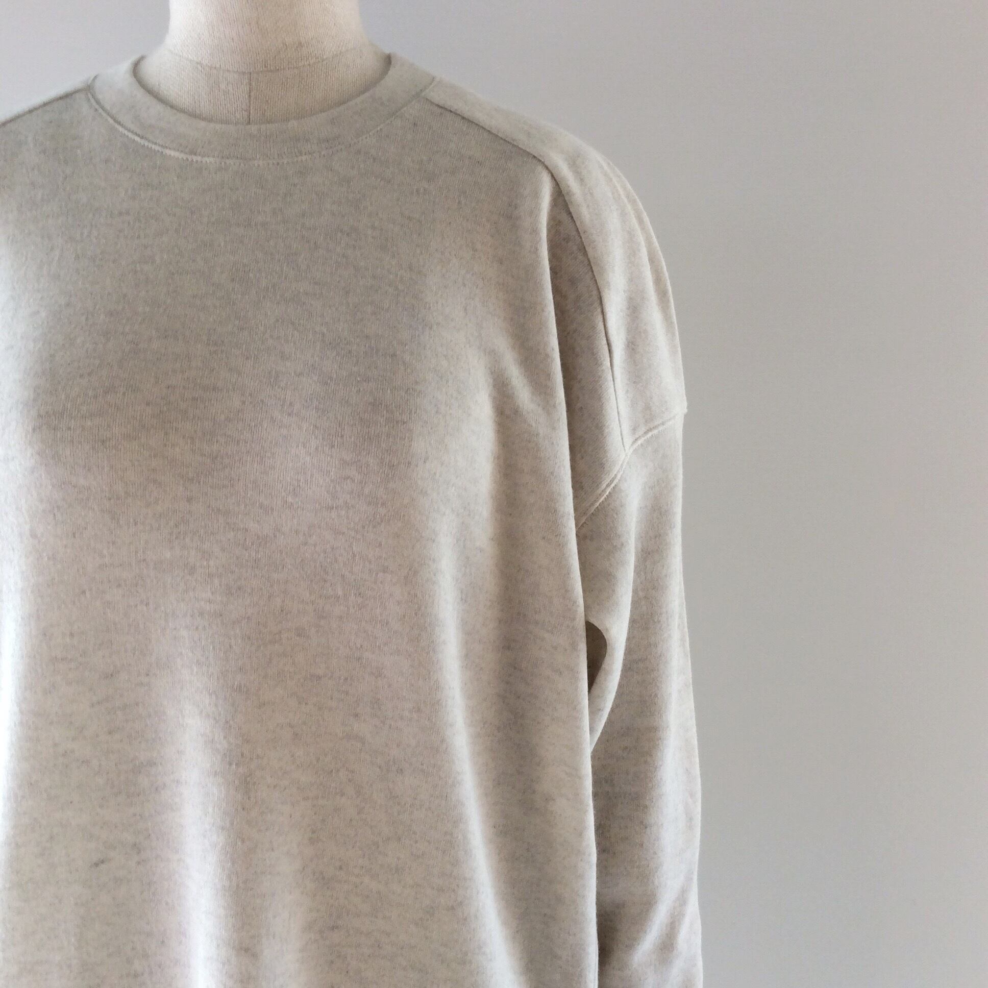 <Coordinate tips>スウェットのような形のプルオーバーですが、 表面は綿のガサガサ感がないので、スラックスやスカートと合わせてオフィスカジュアルの通勤用トップとしてもご活用頂けます。1枚で成立する身幅ですので4月中旬~5月いっぱいは、1枚で着てプリントストール等で引き立てていただくと、よりお洒落かなと思います!