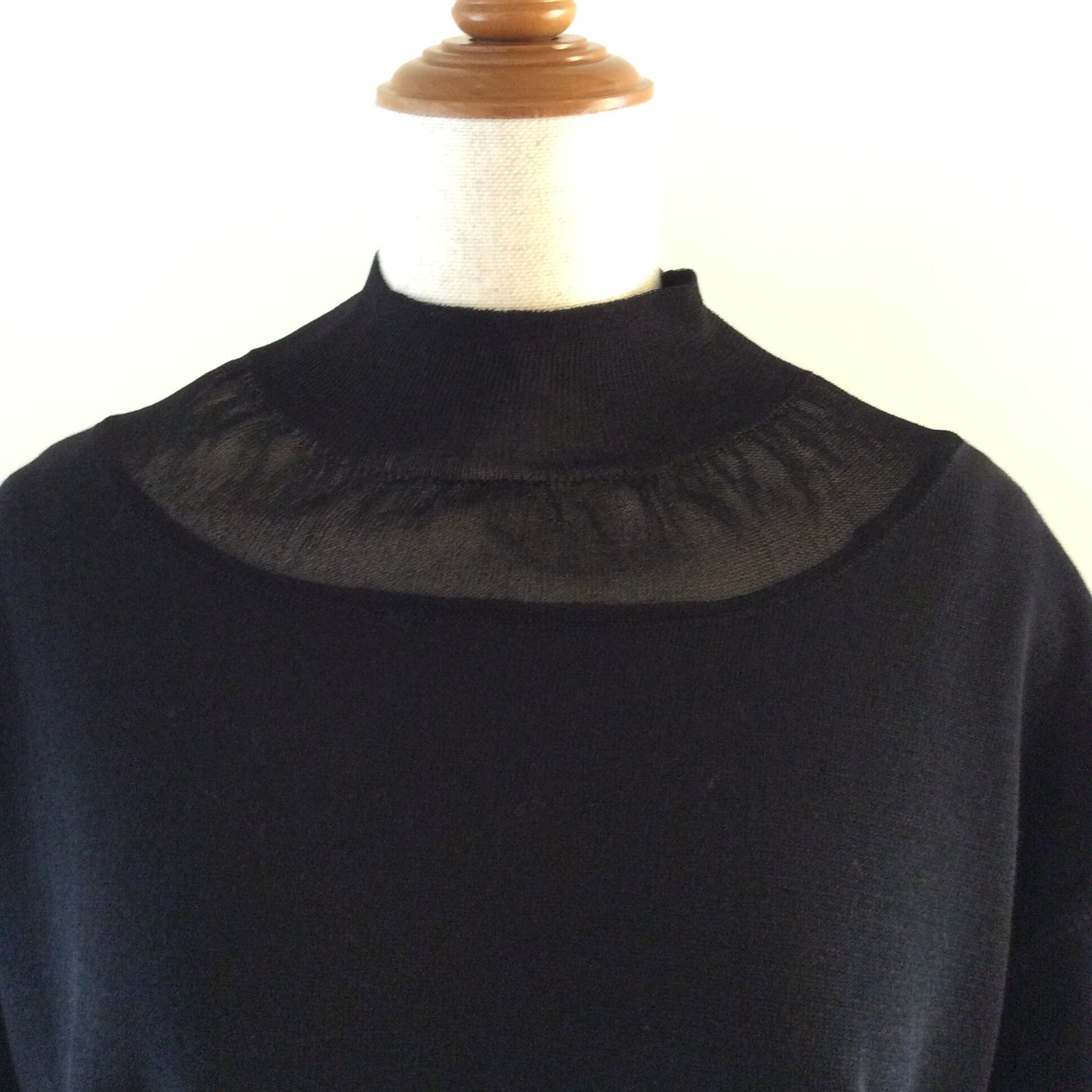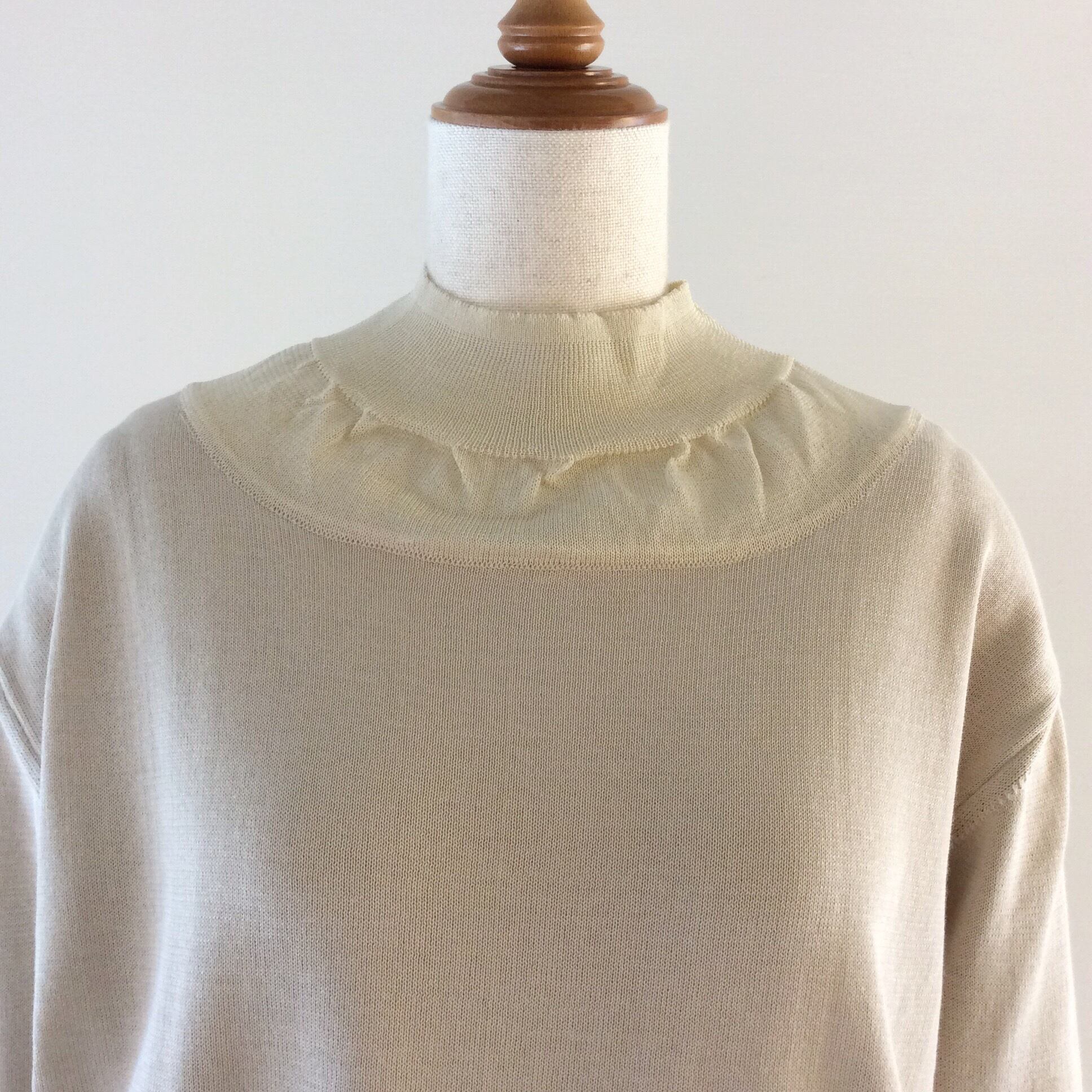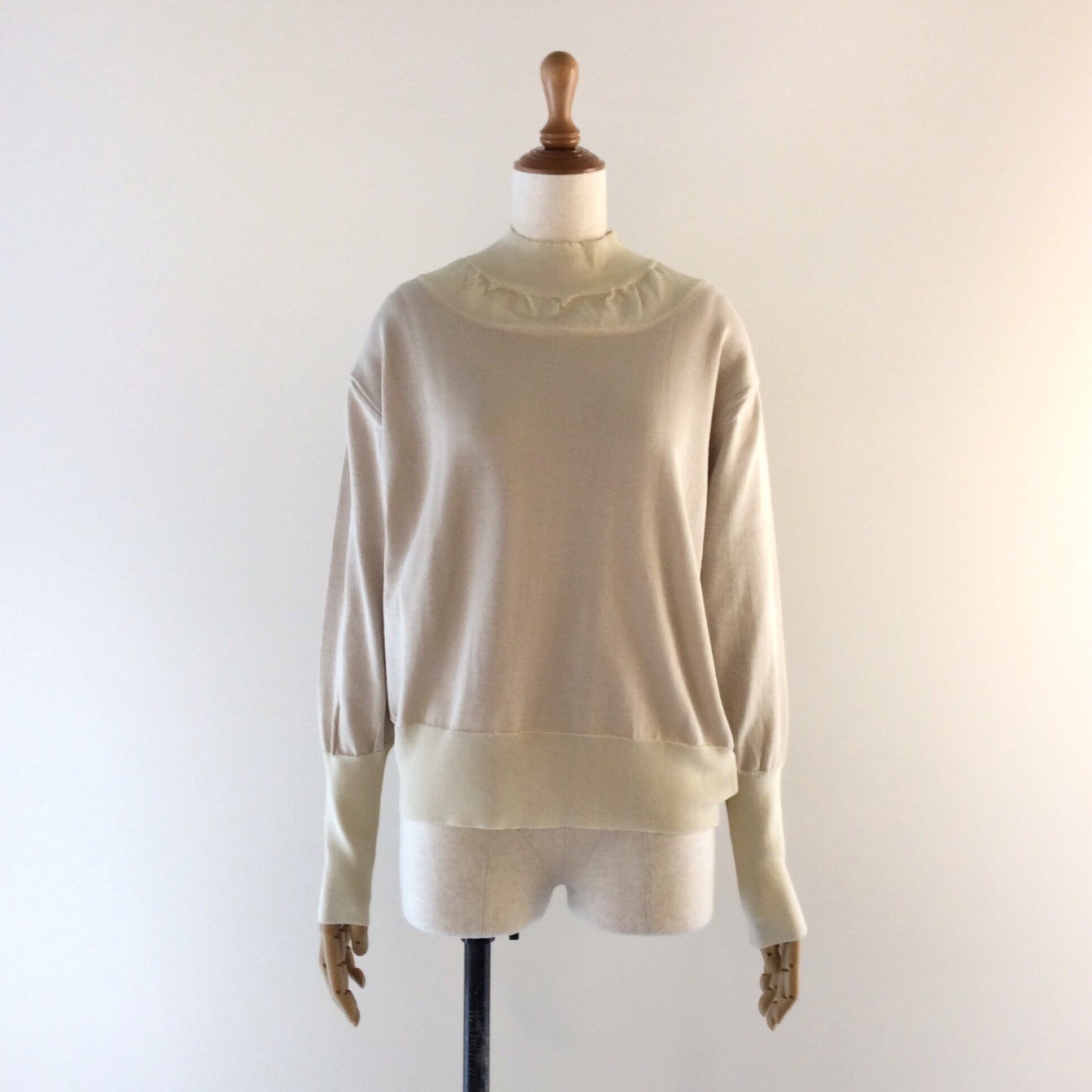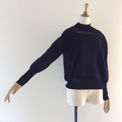 <Design Detail> 首回りと裾周りには、網目を変えて今季トレンドの透け感のあるディテールが。長めでキュッと絞られた袖リブのデザイン。