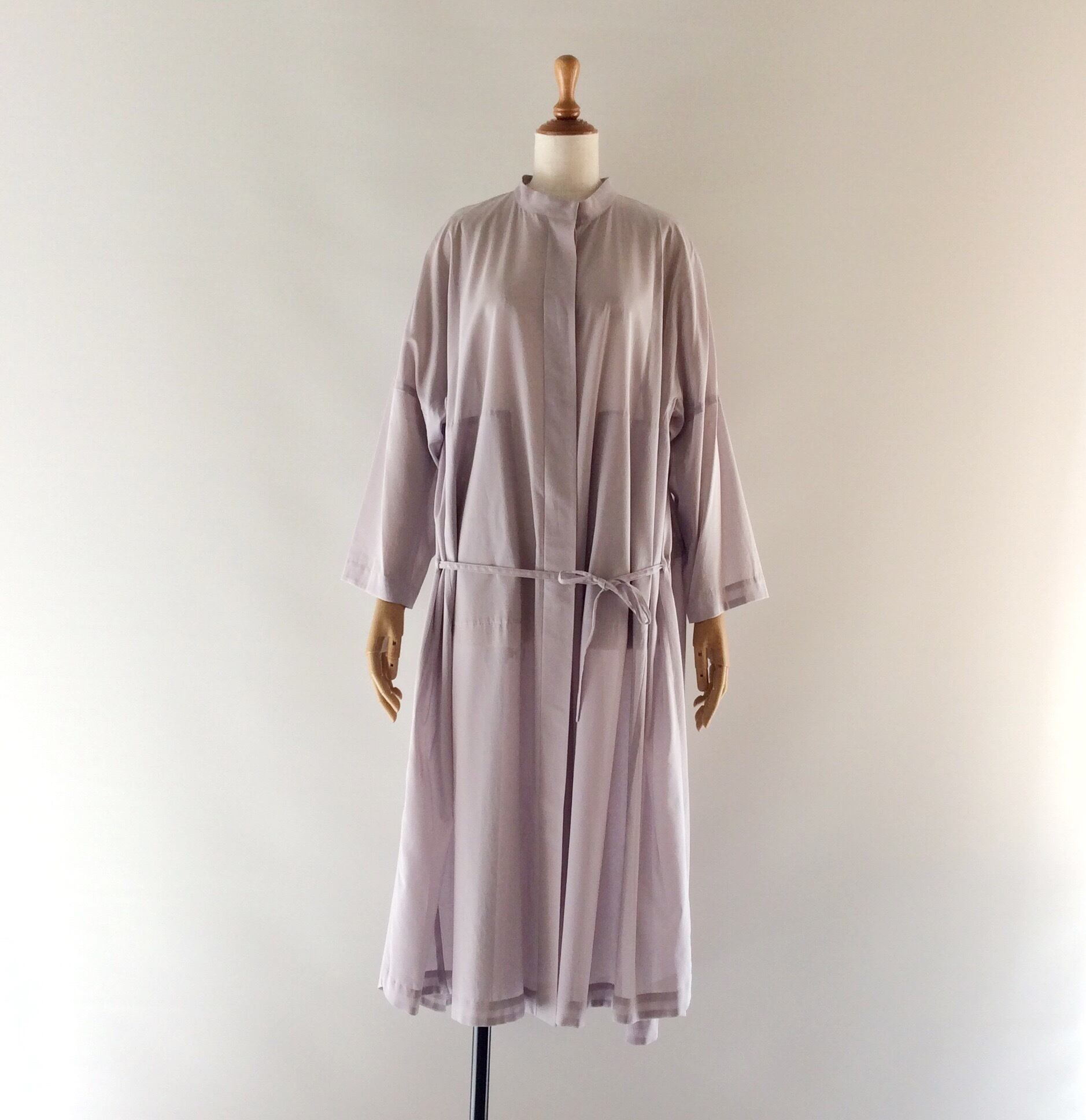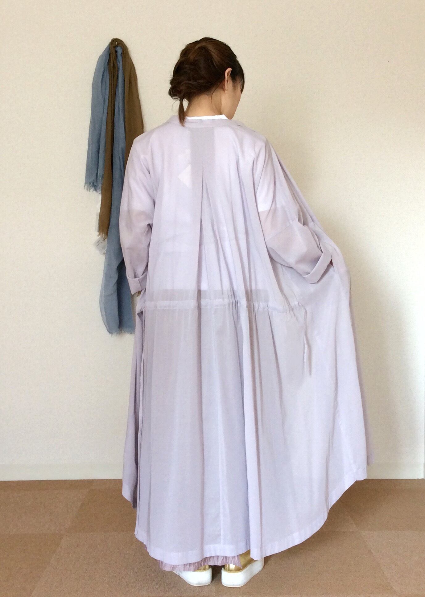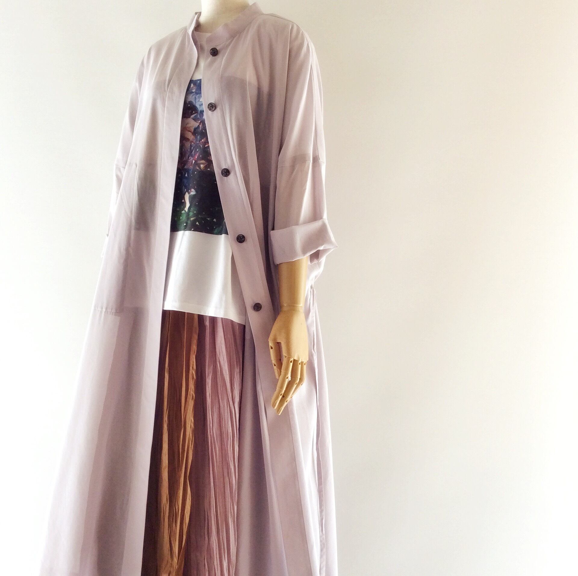 <Design Detail> 程よい透け感が大人っぽく、こなれた感を演出できるオーバーサイズのコート。綿100%ですが、ツルっとした生地の表情で色々なシーンにお使いいただけそう。
