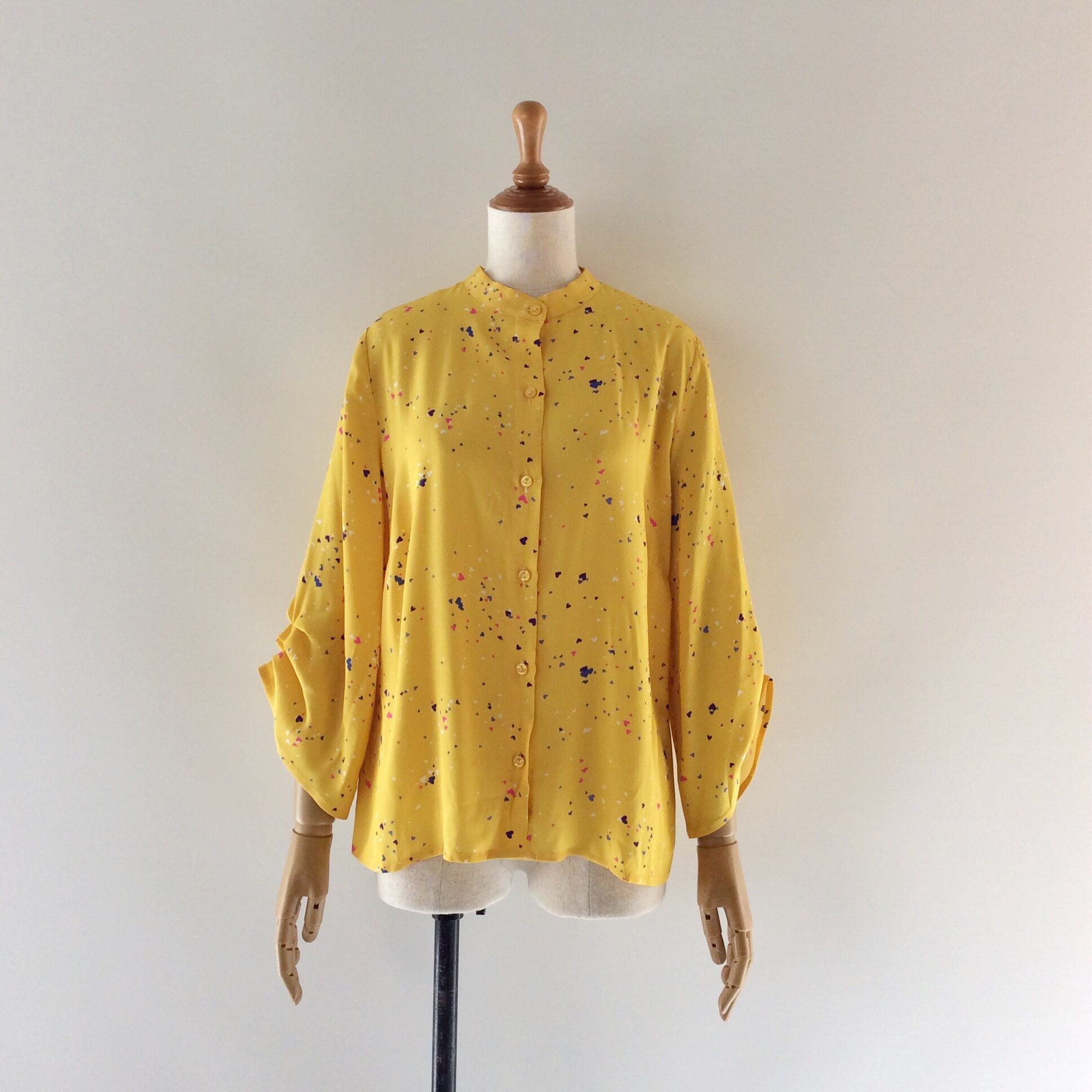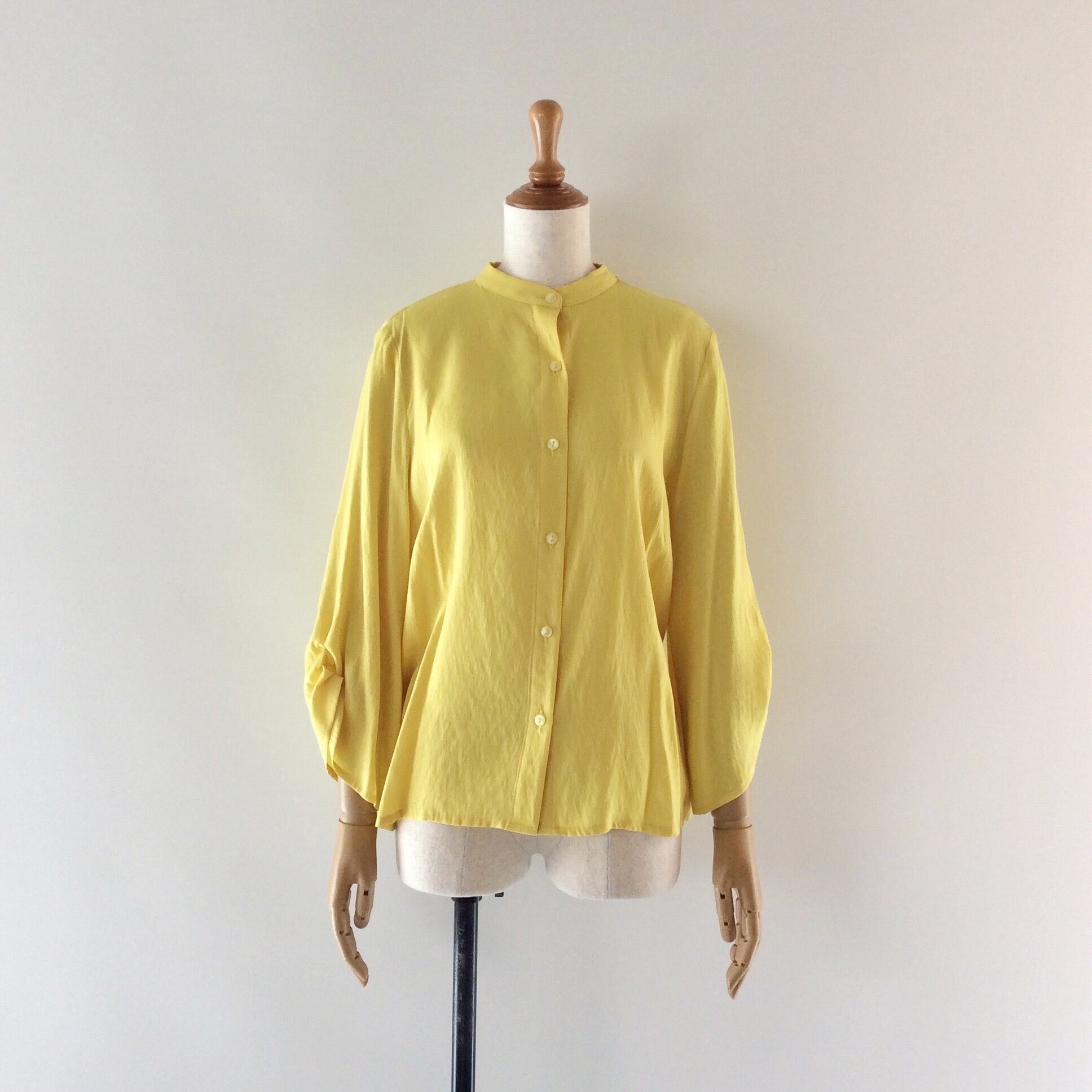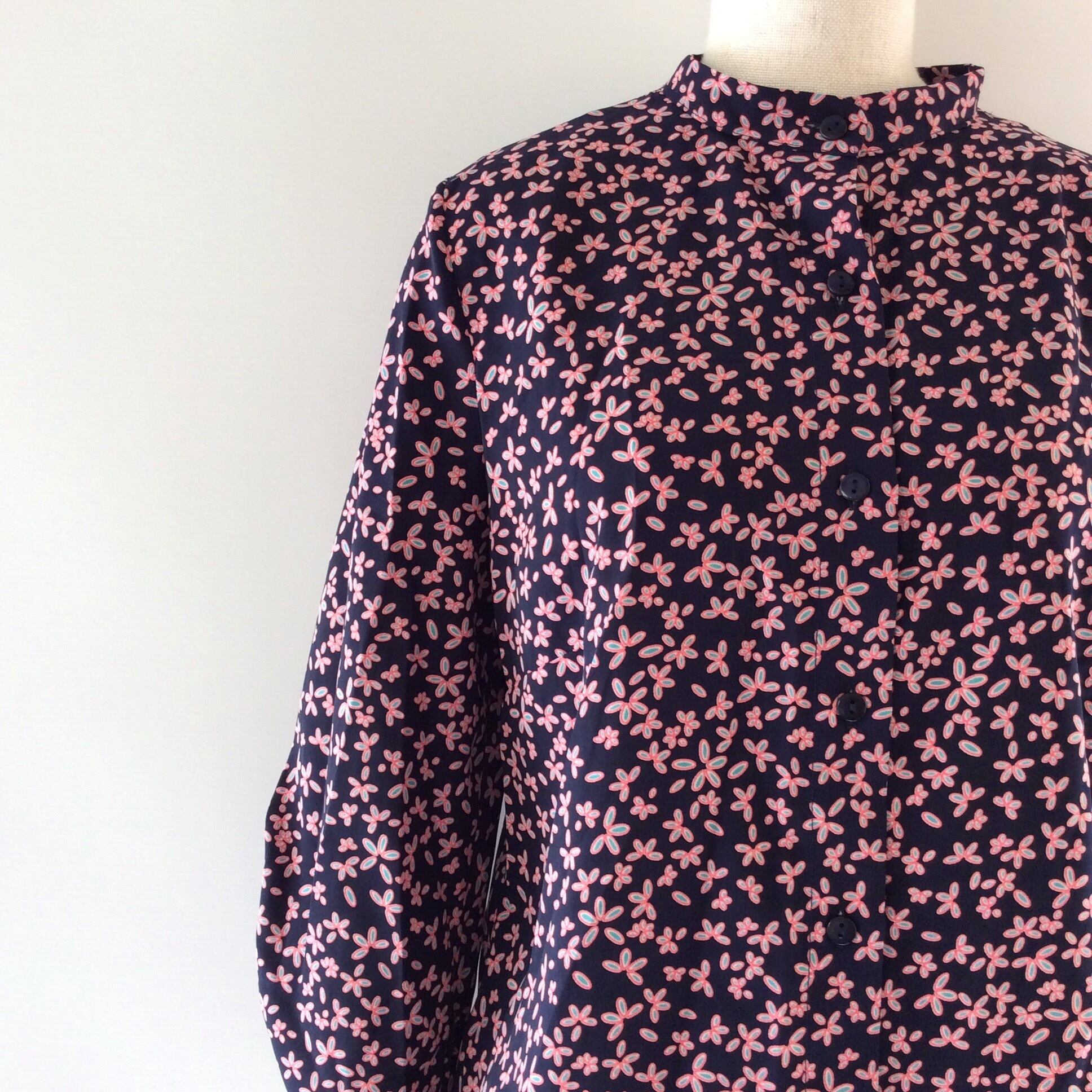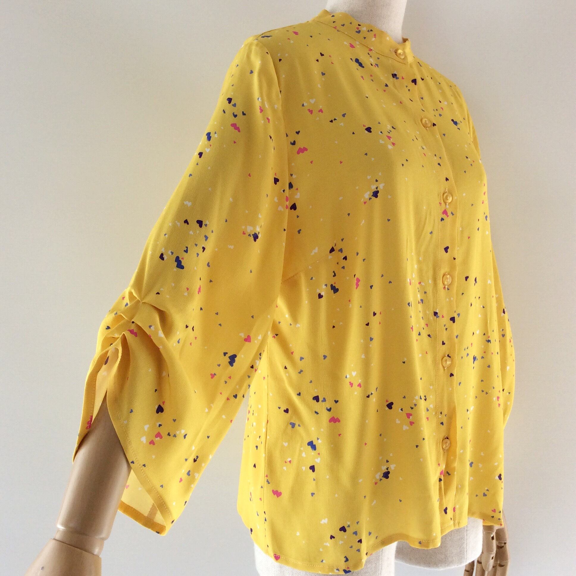 <Coordinate tips> 腕のデザインはありますが、どの色・パターンもトロンとした素材感なので、薄手のカーディガンでなければ重ね着しても邪魔になりません。丈感と少しユルッと体の中で生地が泳ぐ身幅感も丁度良く、細身のパンツに合わせてもインしてスカートやキュロットと合わせても 素敵な万能ブラウス。