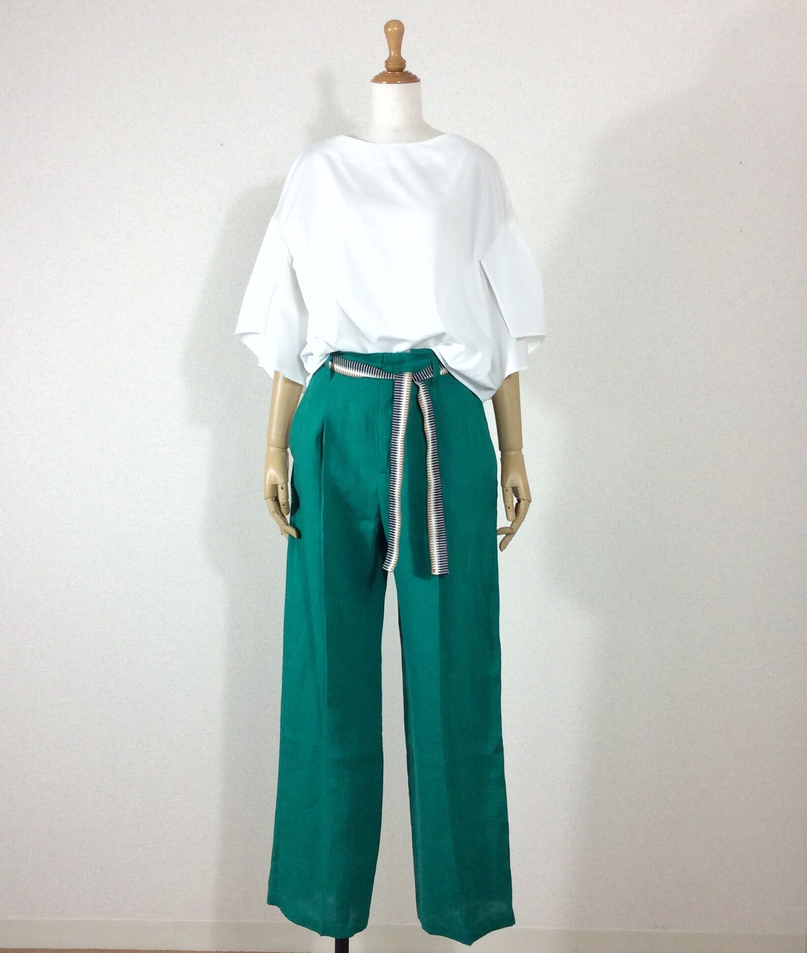 身頃のウエスト上あたりにタックがとってあるこで裾をインしたときにも綺麗なボリューム。