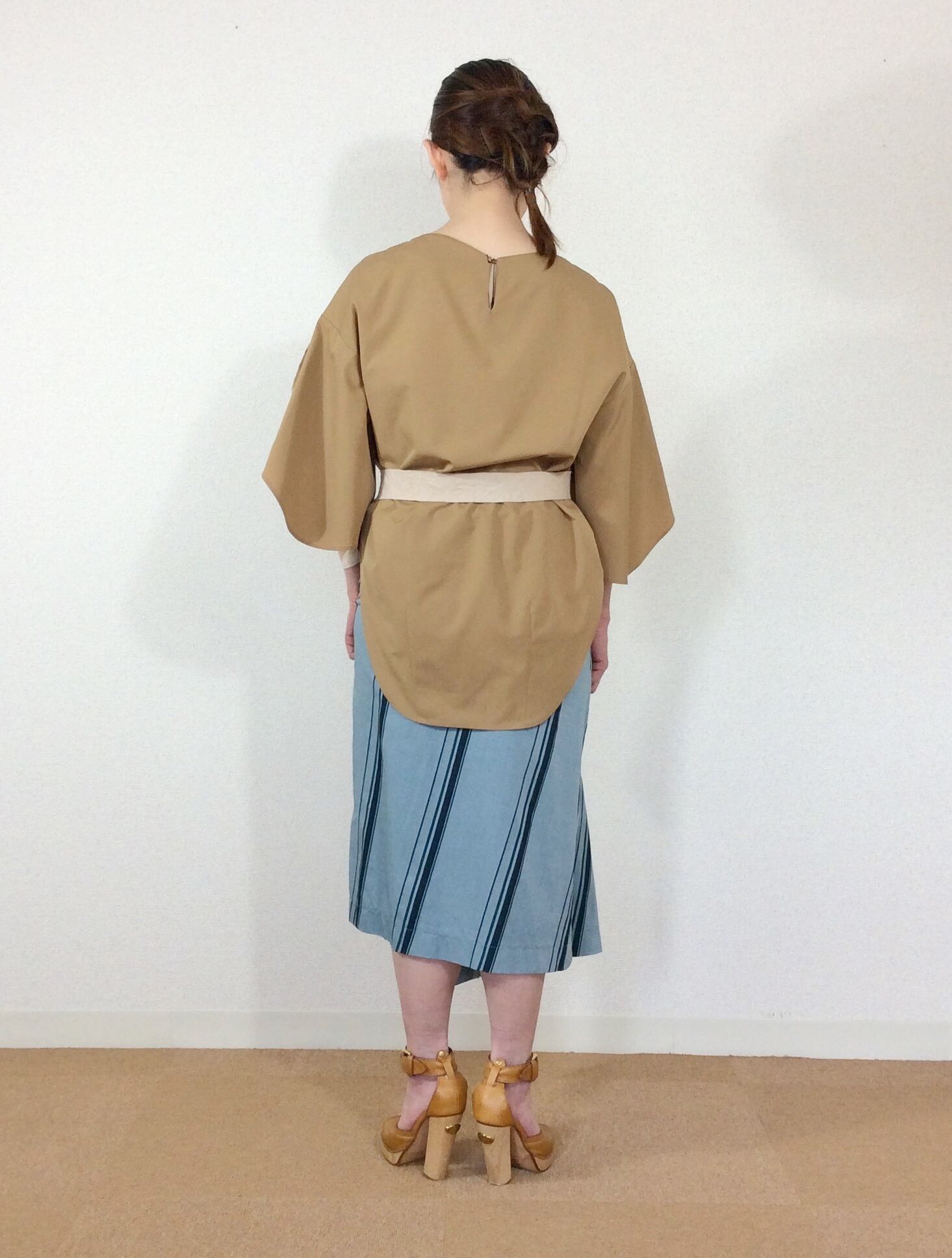 身頃のウエスト上あたりにタックがとってあるので、着方を工夫しないでただ着るだけでも、自然にふわっとした表情。
