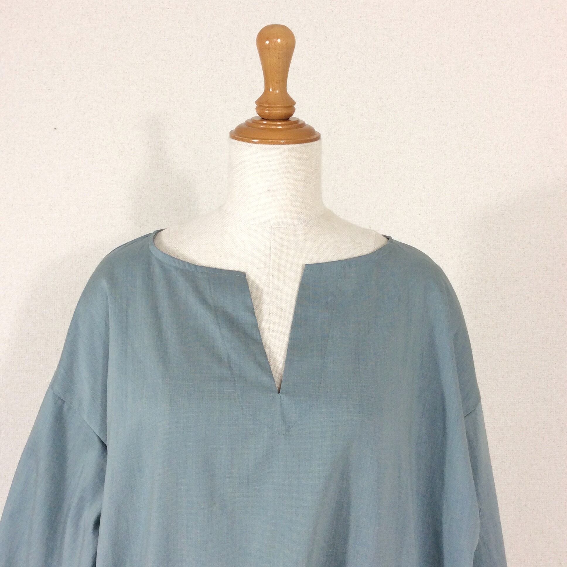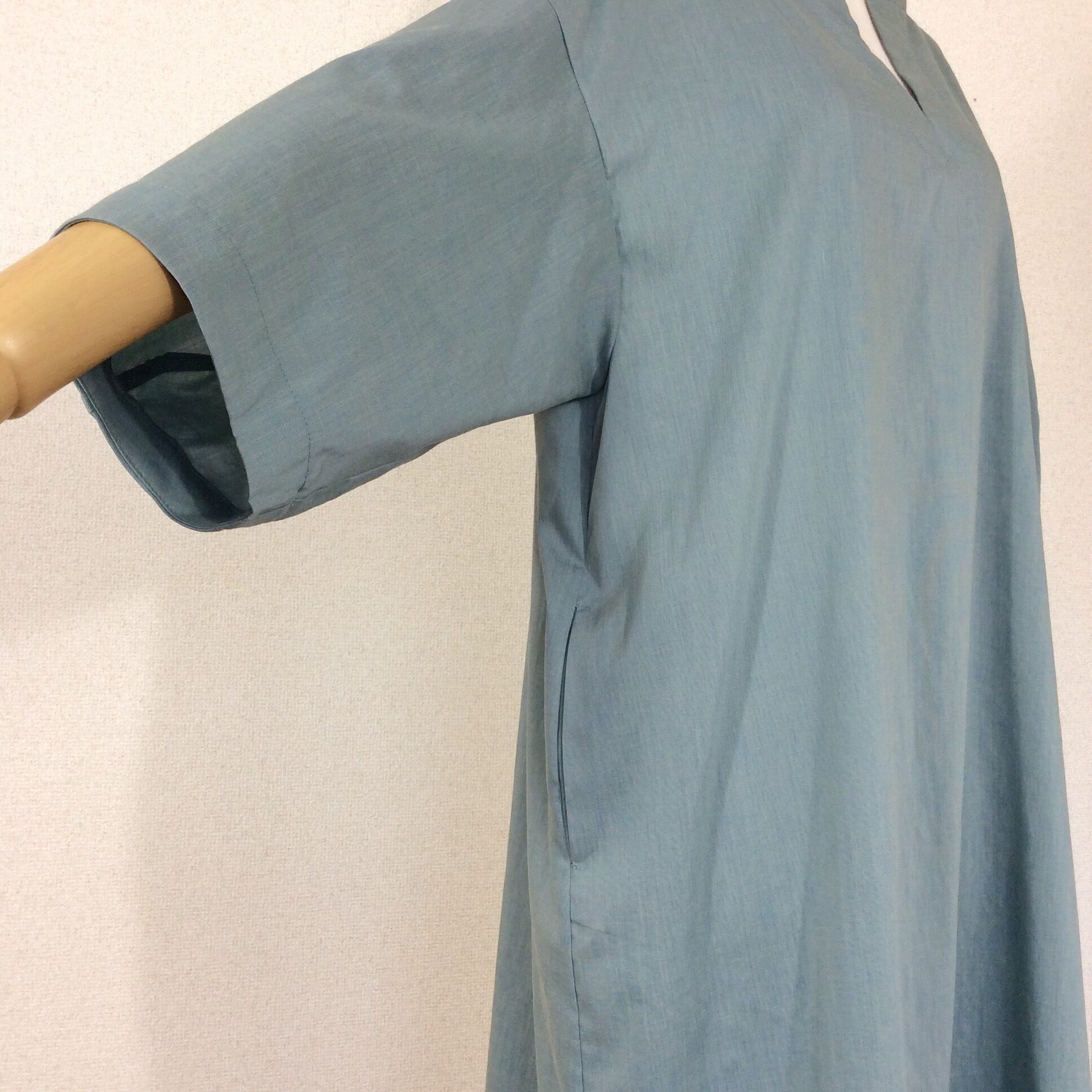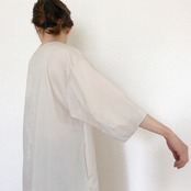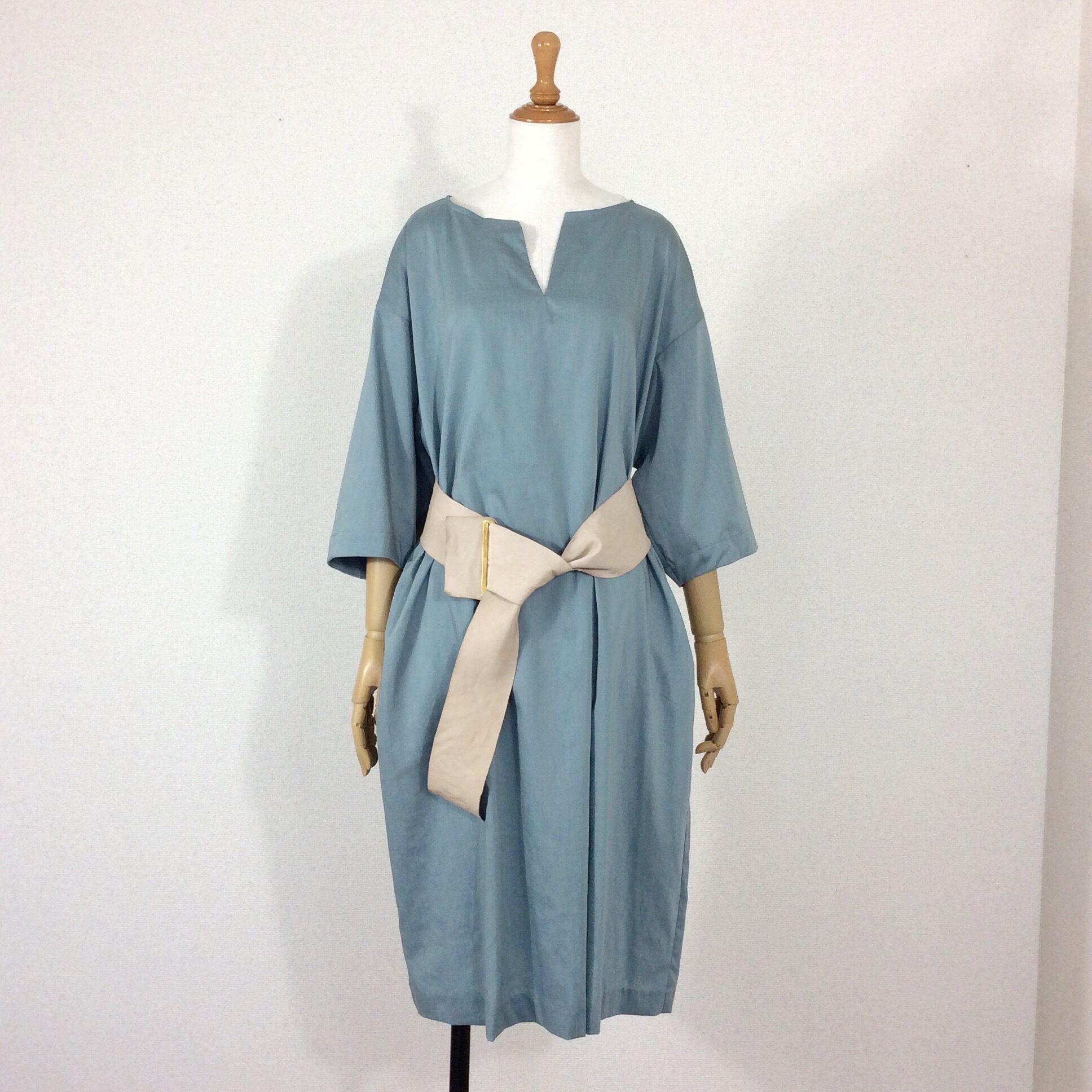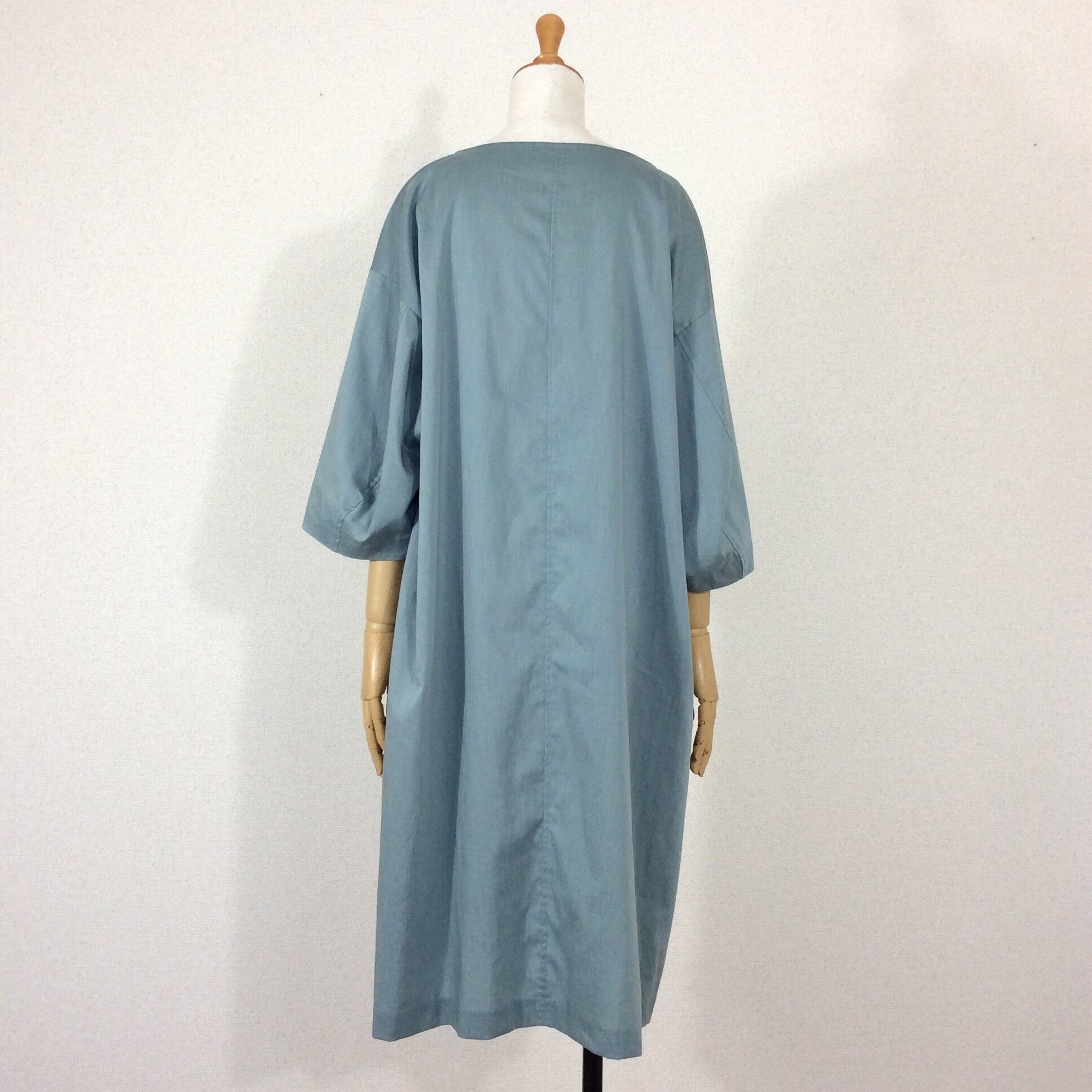 <Design Detail>初夏まで使える麻混のシンプルワンピース。肘もしっかり隠れる7分丈。少しプックリしたお袖になるようデザインされています。
