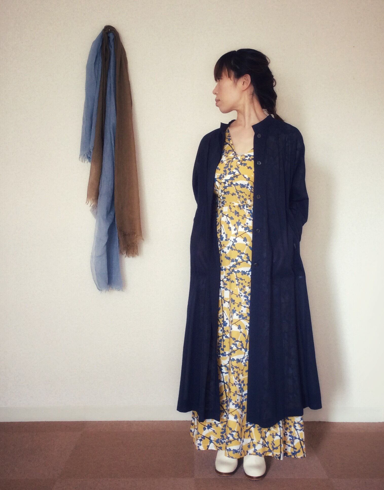 <Codordinate tips>ジャストサイズのカーディガンでお行儀よく着るよりも、ゆるっとしたオーバーサイズブルゾンや、コーデしているKOFTAのガウンコートのような眺めで軽い羽織と合わせればとても軽やかな雰囲気に。