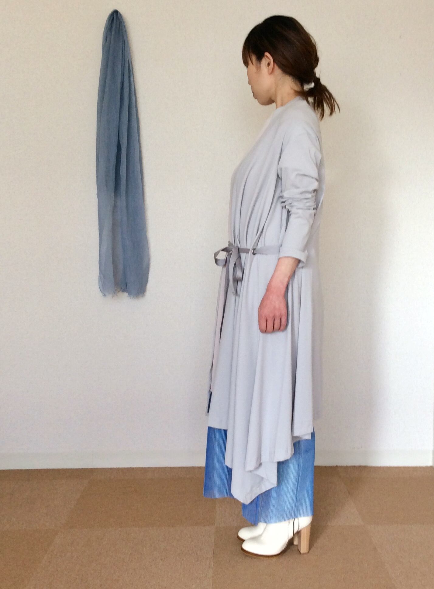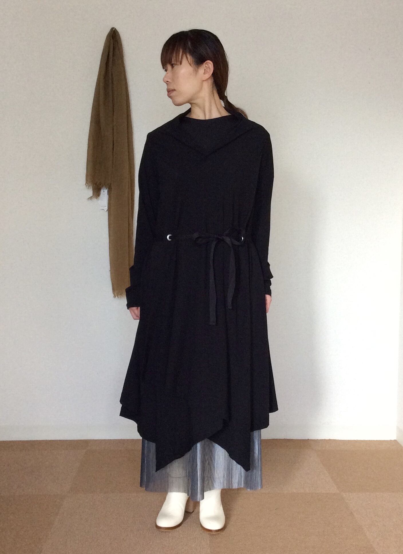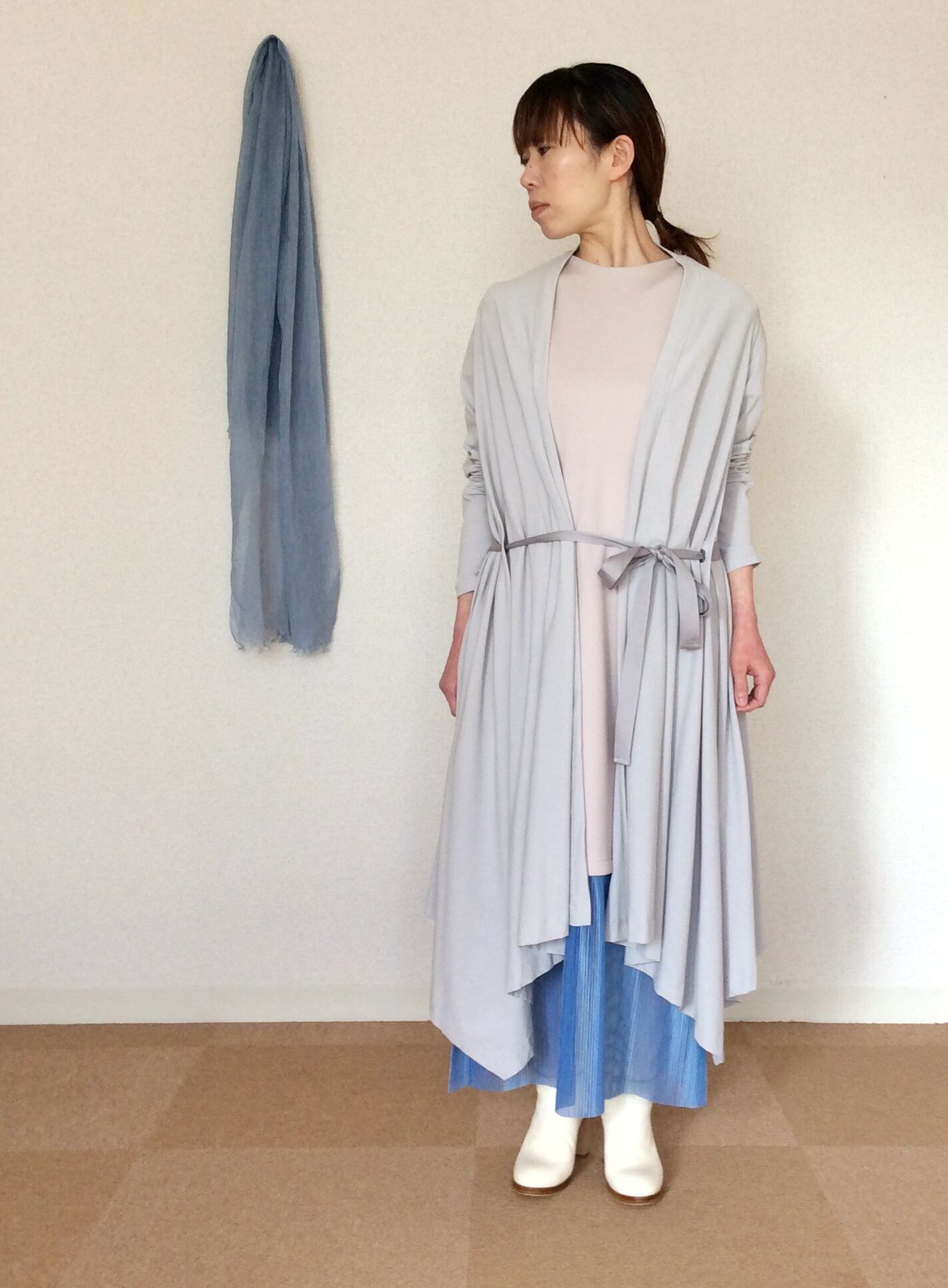 <Coordinate tips>そのままバサッとし着るだけでも素敵ですが、サテンテープぐっと縛ってカシュクールのように重ねてしまっても、生地が巻き付いてるたいで素敵です。