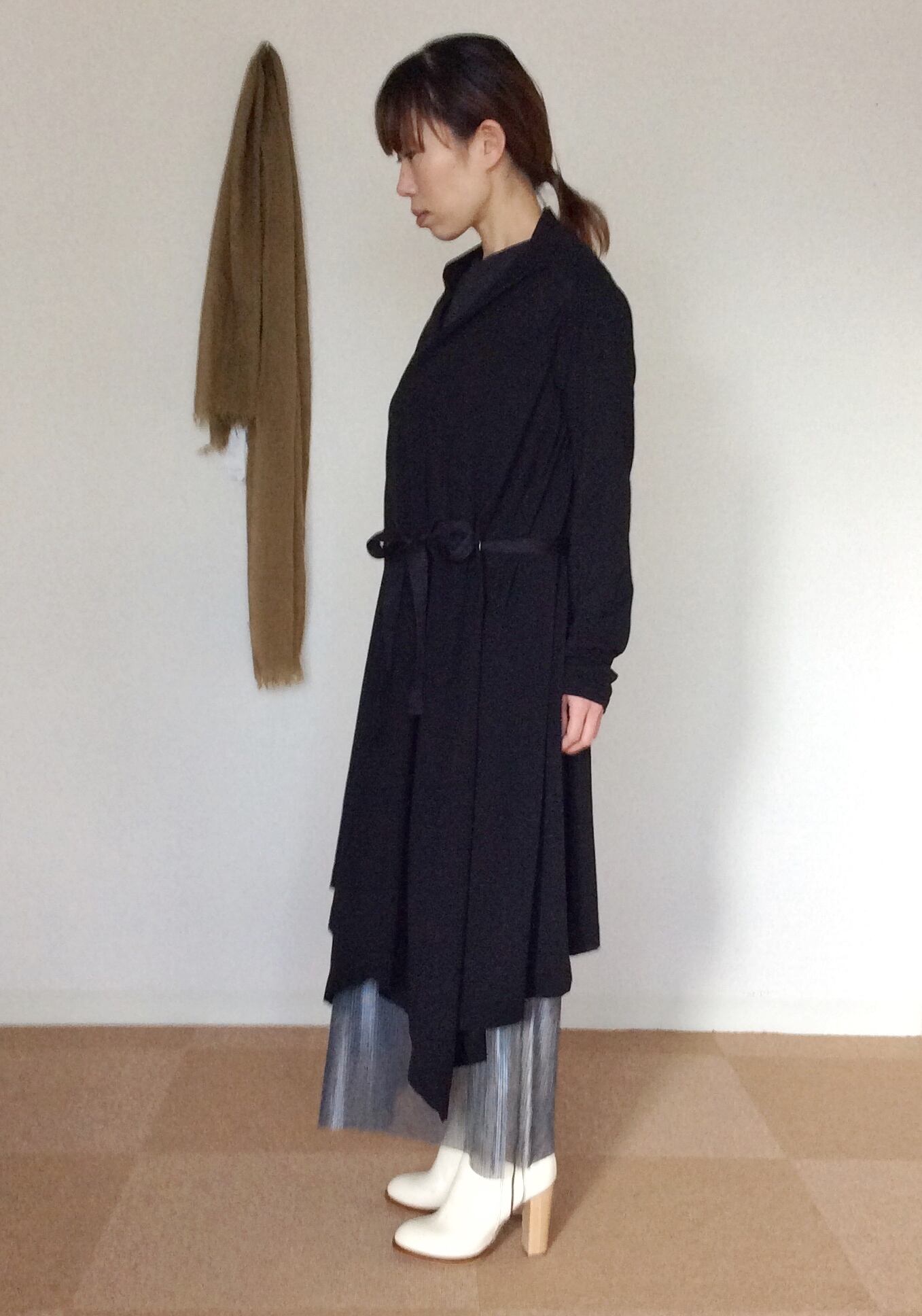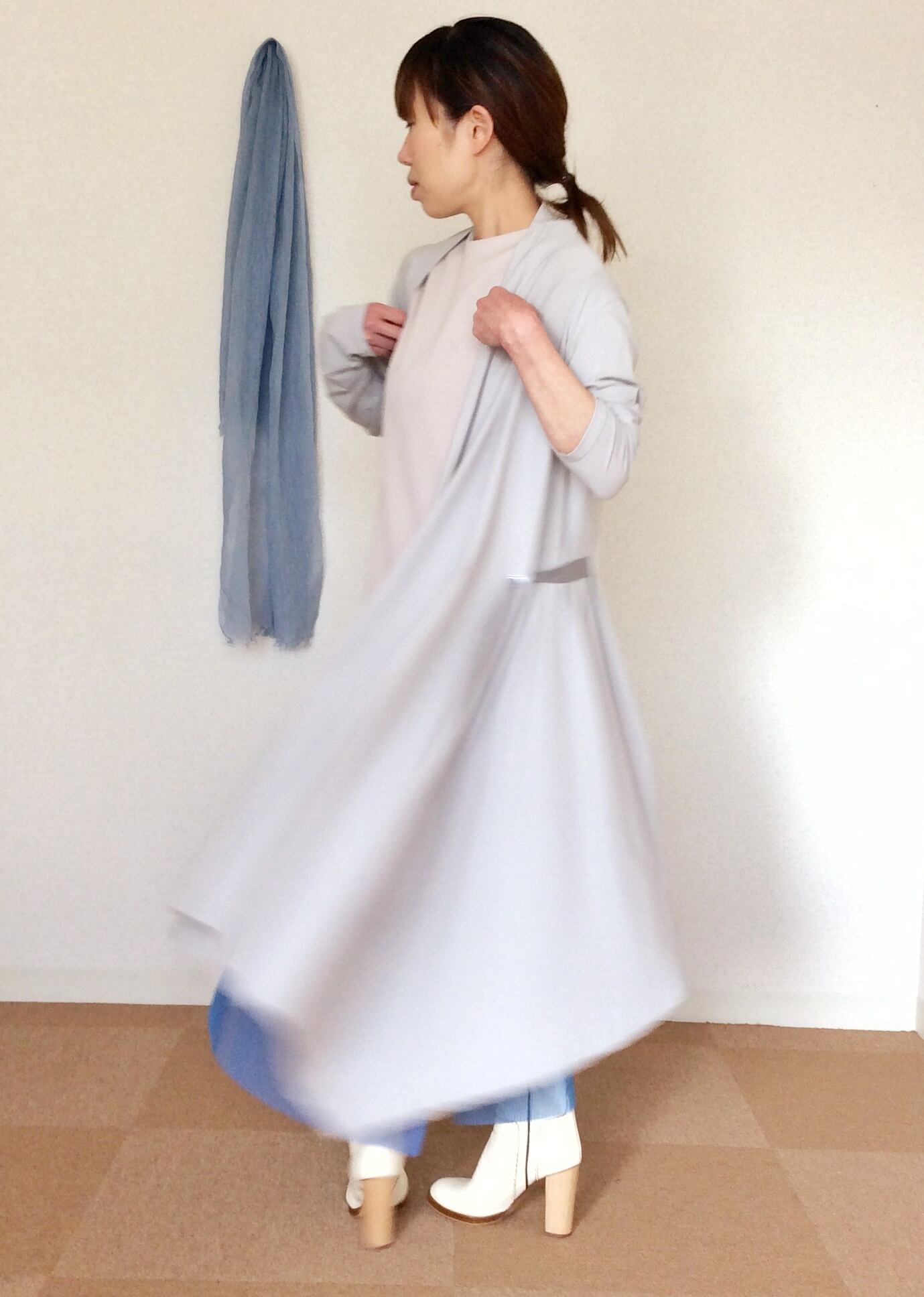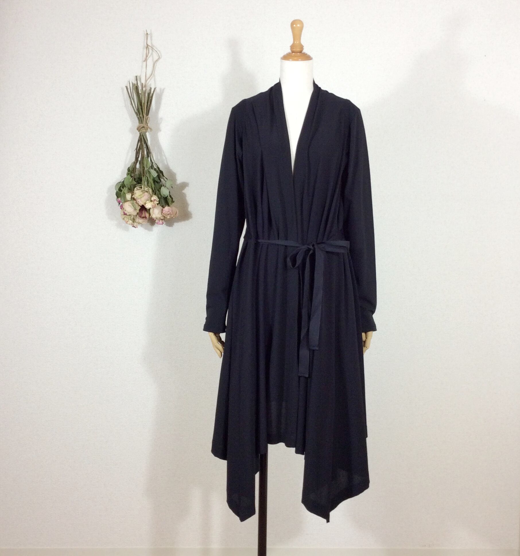 <Coordinate tips>そのままバサッとし着るだけでも素敵ですが、サテンテープぐっと縛ってカシュクールのように重ねてしまっても、生地が巻き付いてるたいで素敵です。